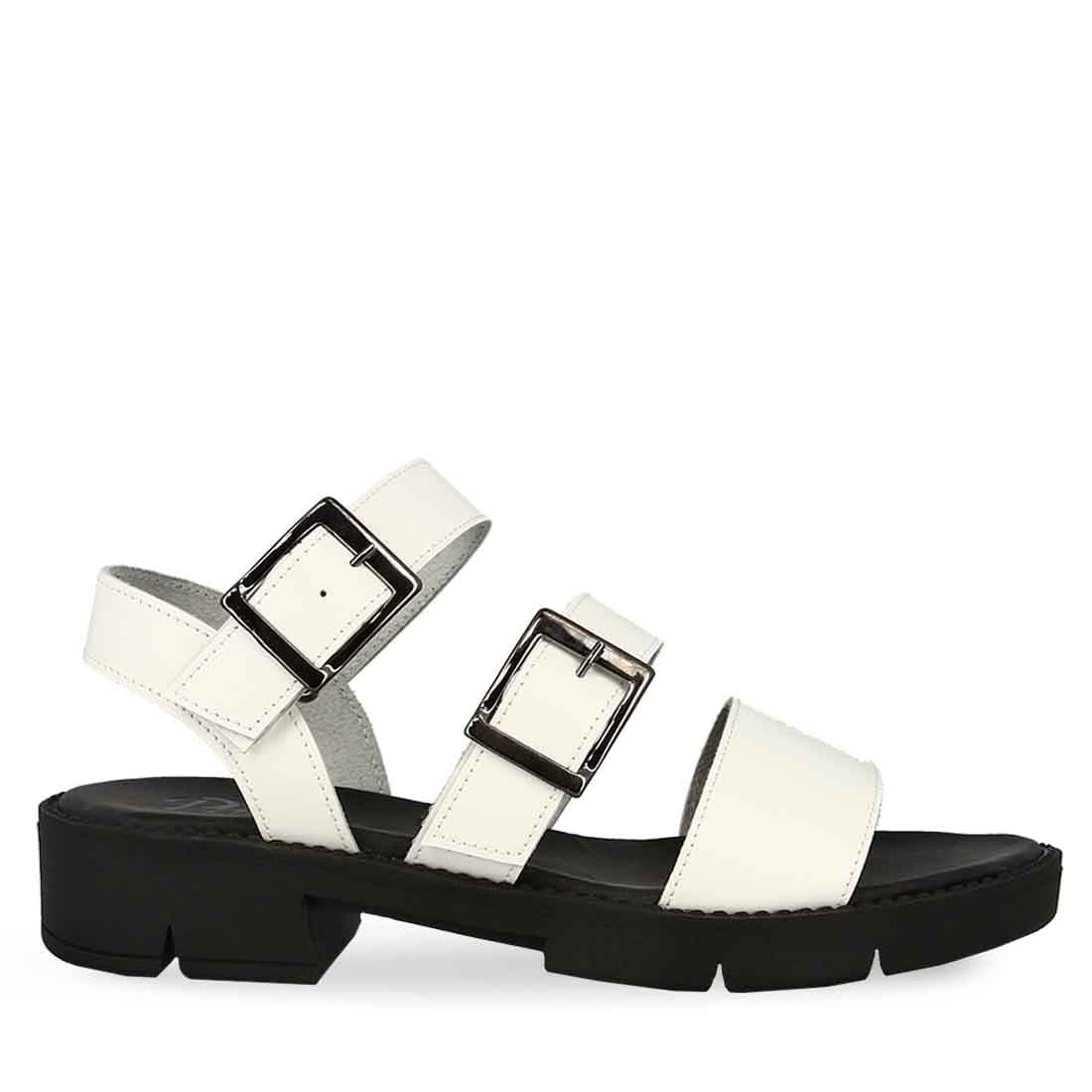 Parex stylish sandals in black and white color. Greek design with buckle straps.