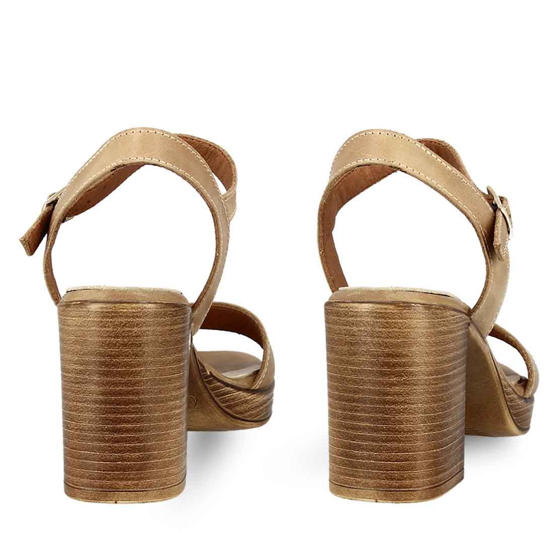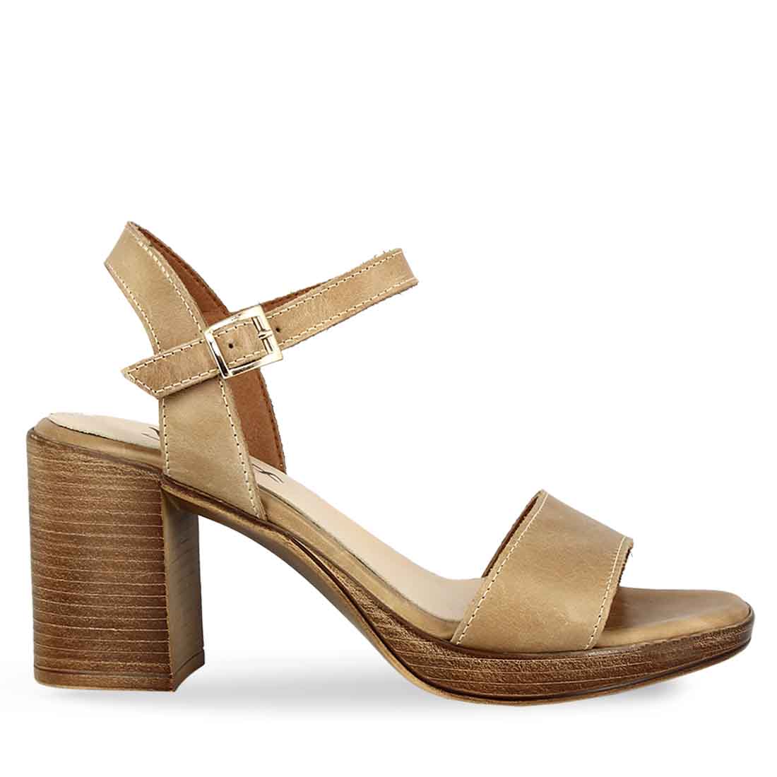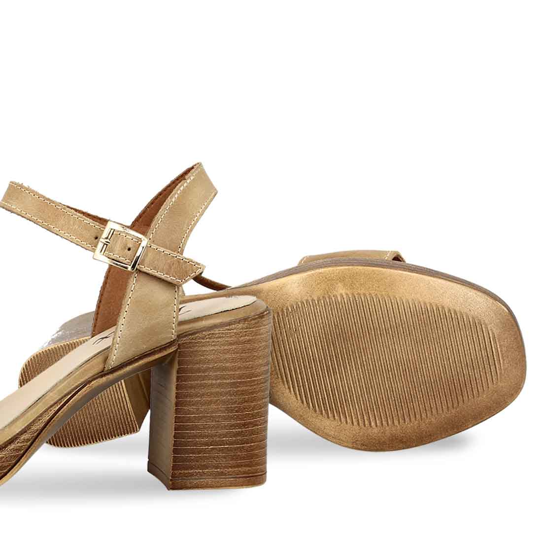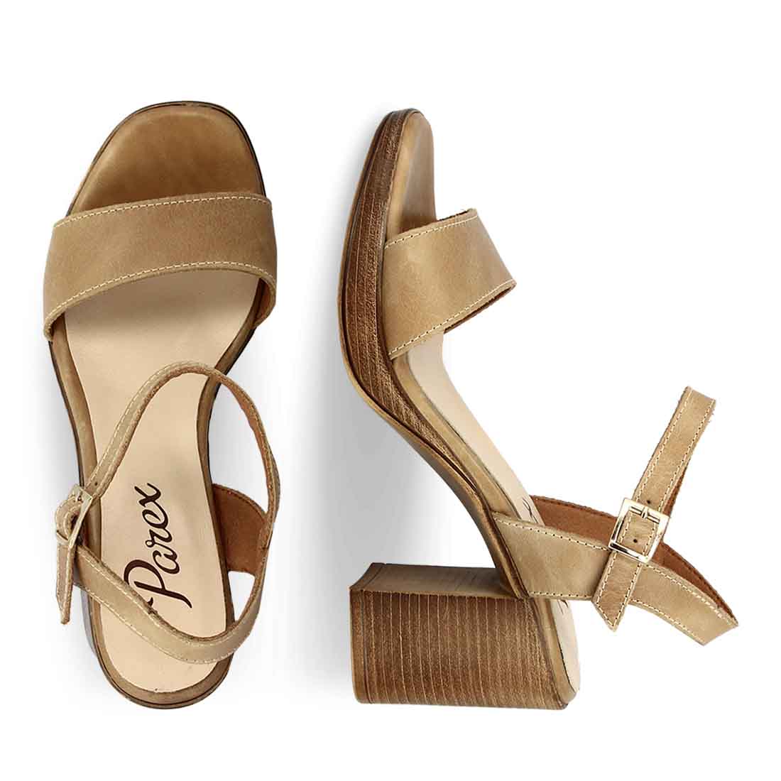 Leather heeled sandals by Parex made in Greece. Toe strap. Buckle strap fastening. Block high heel.