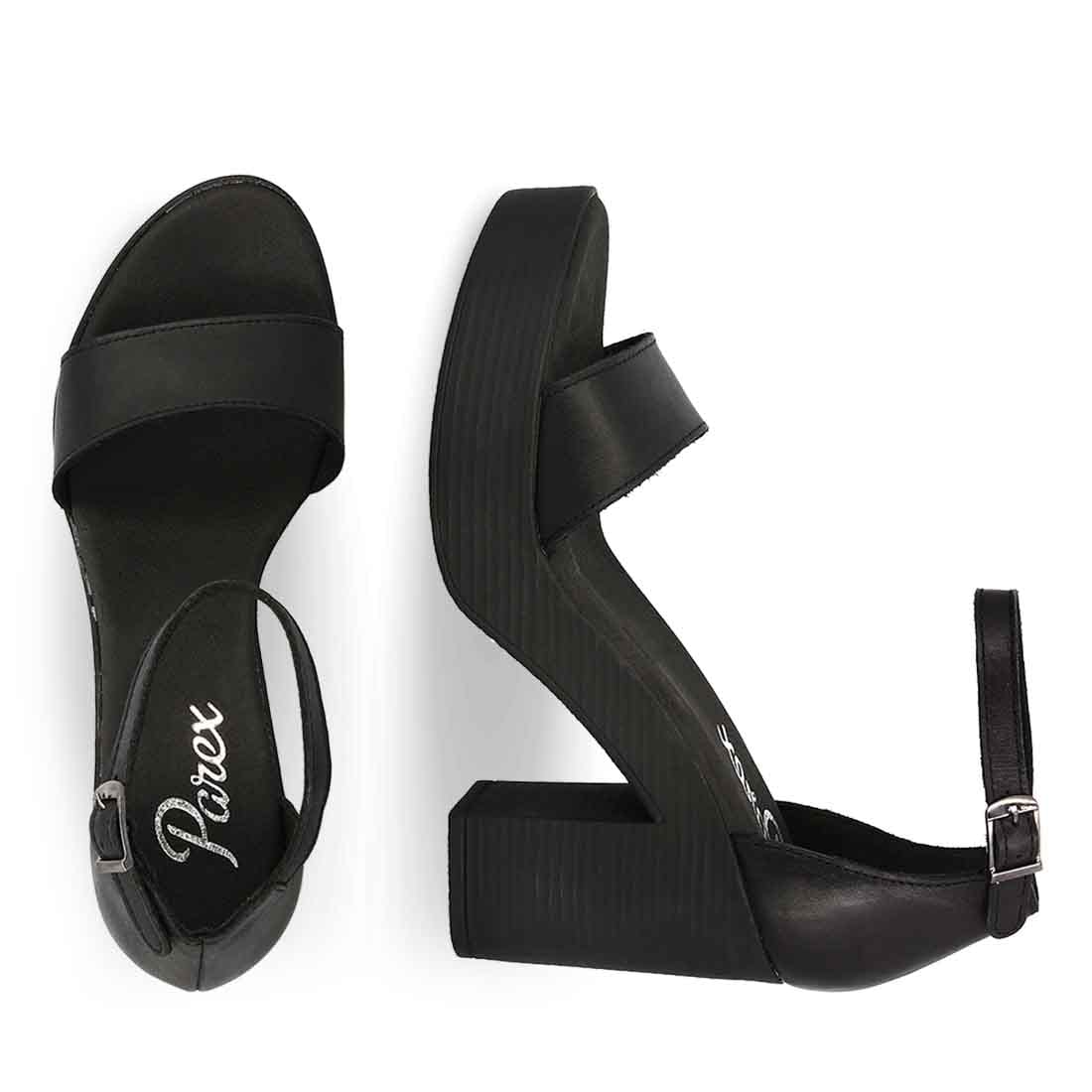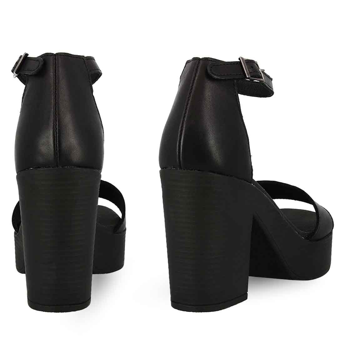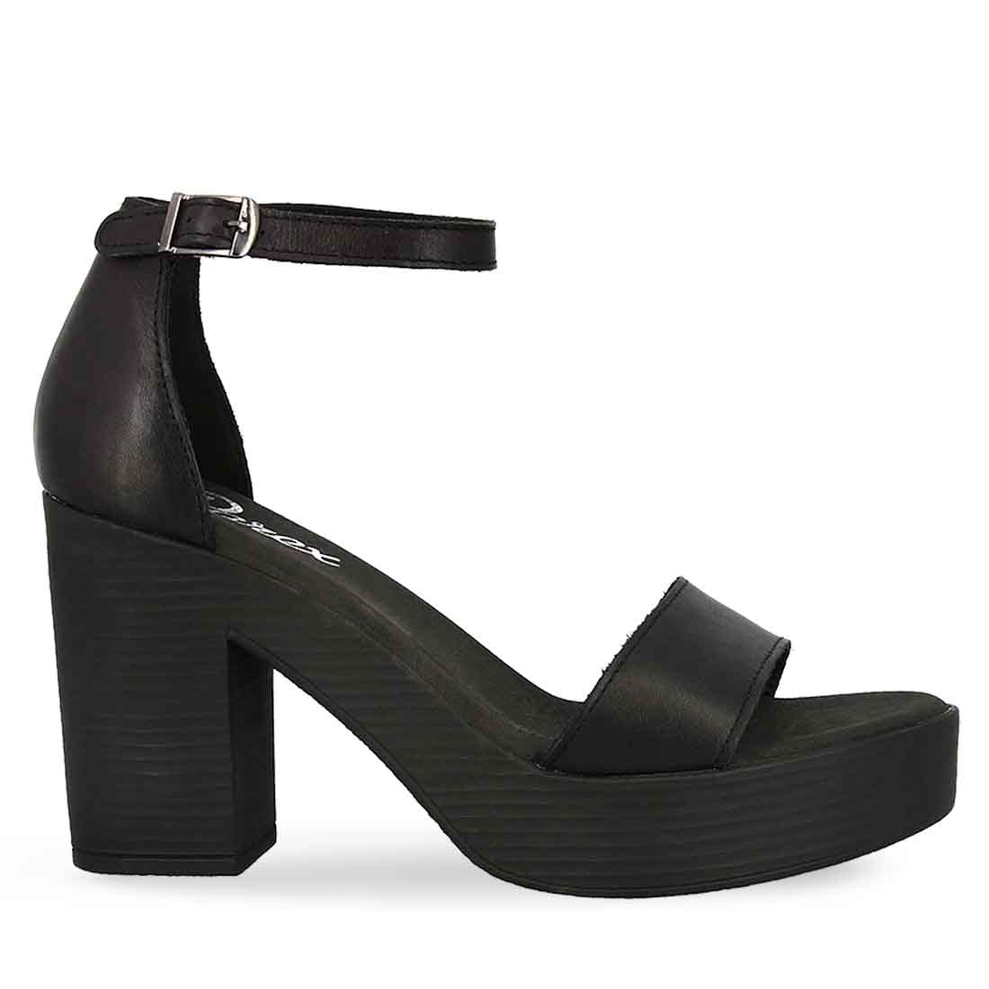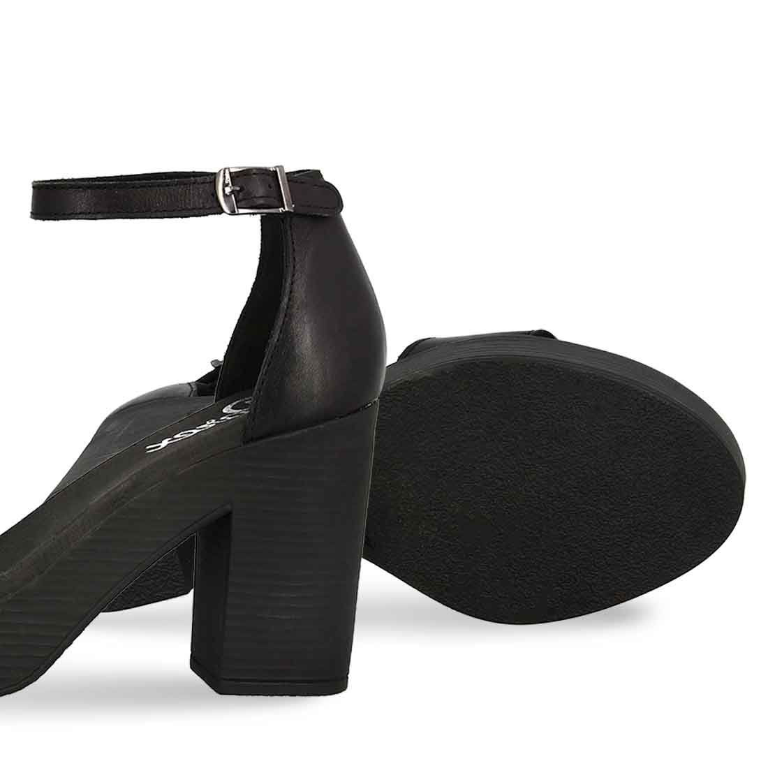 Women''s leather heeled sandals. This pair has been crafted in Greece and is set on a block heel. Ankle strap fastening. Wide tow strap.