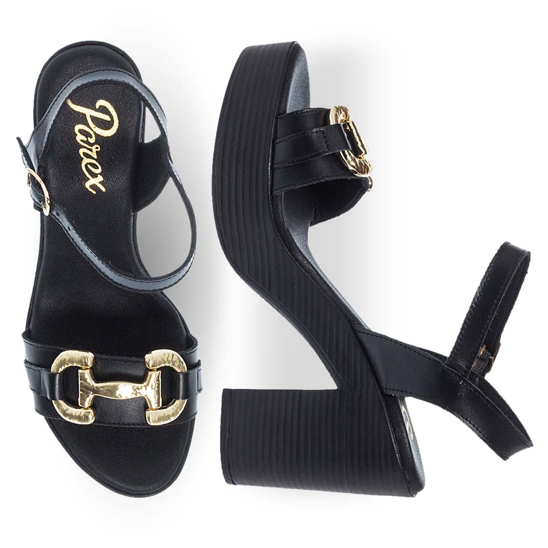 Renew your style by morning to night with these leather sandals by Parex. They stand out for the metallic detail on the upper that will upgrade your look. They have a high block stable heel for steady steps and a soft leather insole. Perfect to wear all day. Made in Greece, excellent combination of materials and colors.