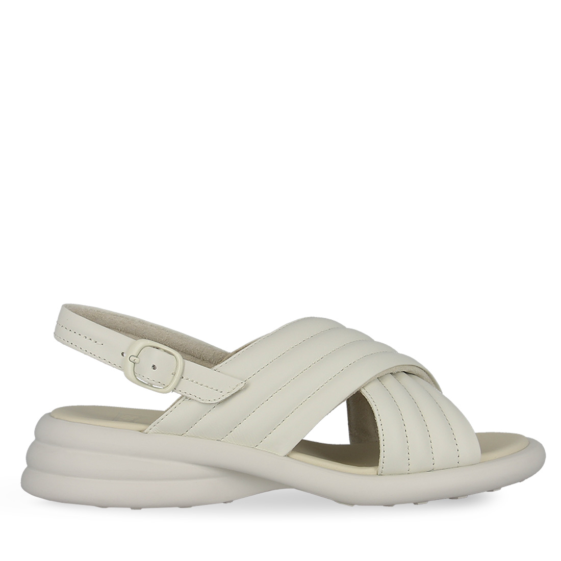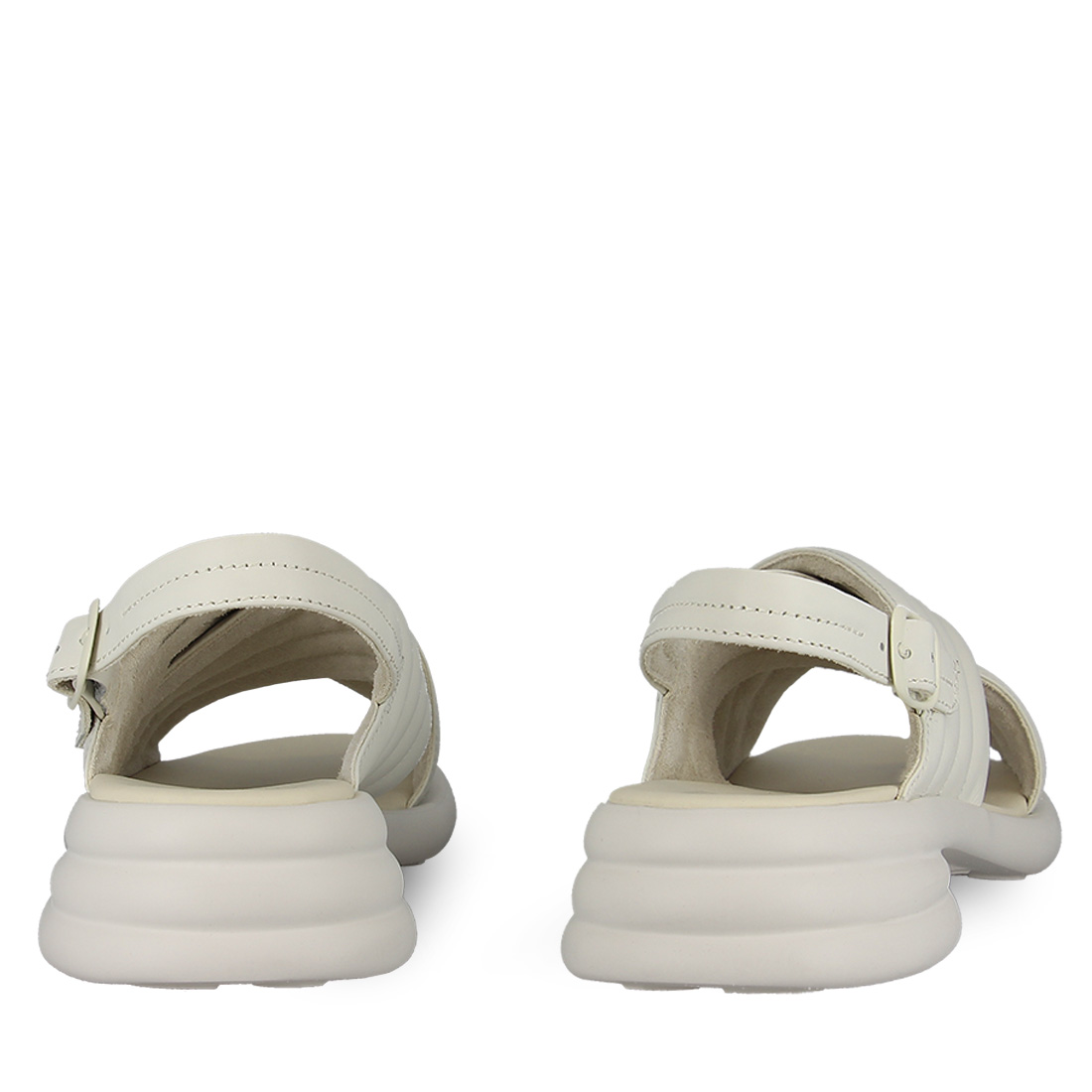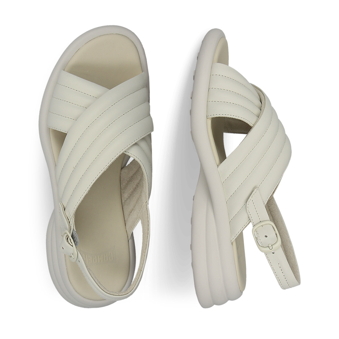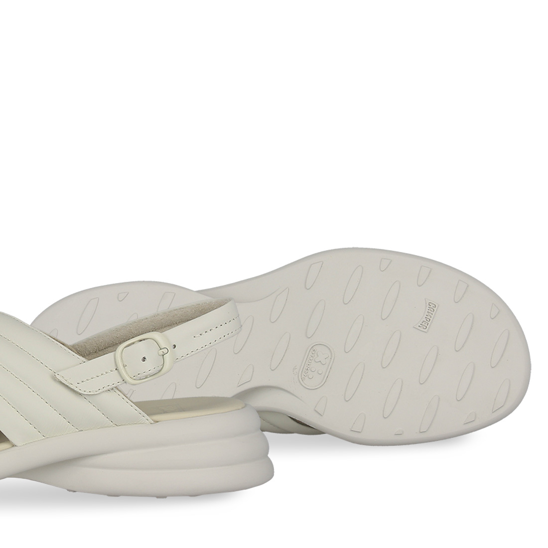 Women''s leather sandals Camper. Stand out in your everyday style with these impressive women''s leather sandals Spiro by Camper''s new collection. Available in white color with criss-cross straps on the upper part and buckle strap fastening on the back of the leg for easy application. They have a comfortable footbed with OrthoLite technology. Stable Eva XL Extralight non-slip sole that absorbs shocks and stable heel. Add this comfortable pair of women''s leather sandals Spiro by Camper to your collection now.