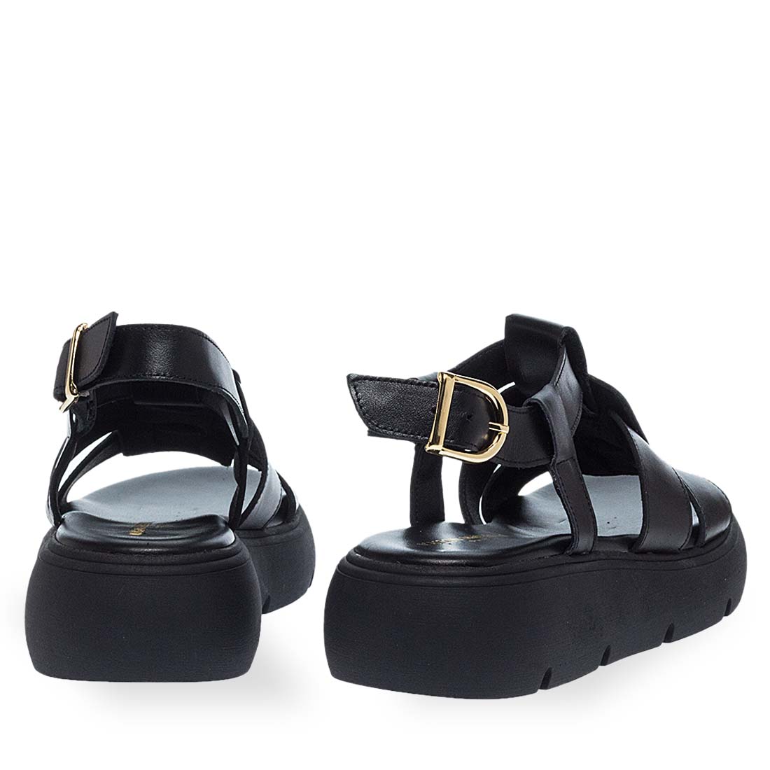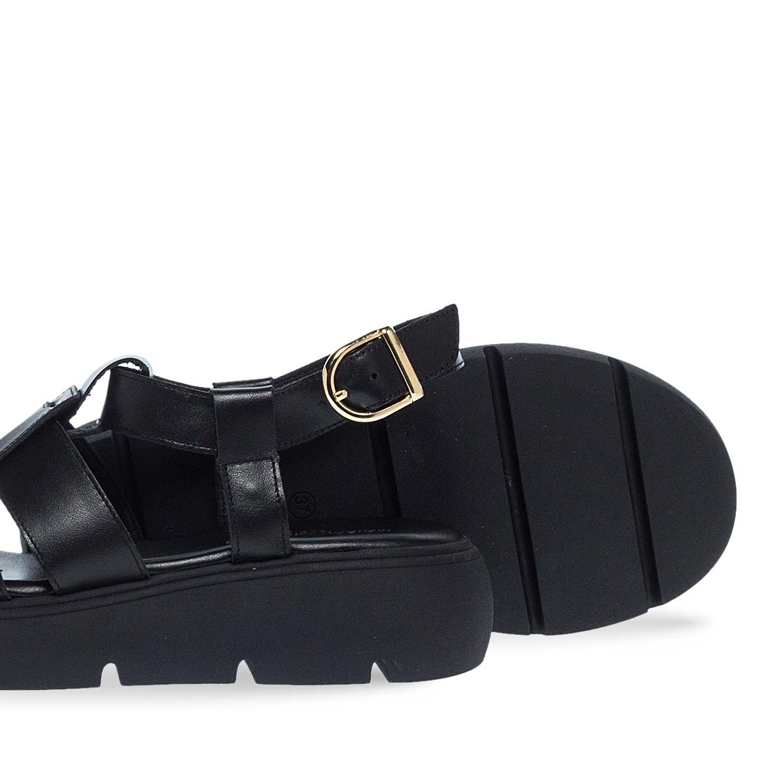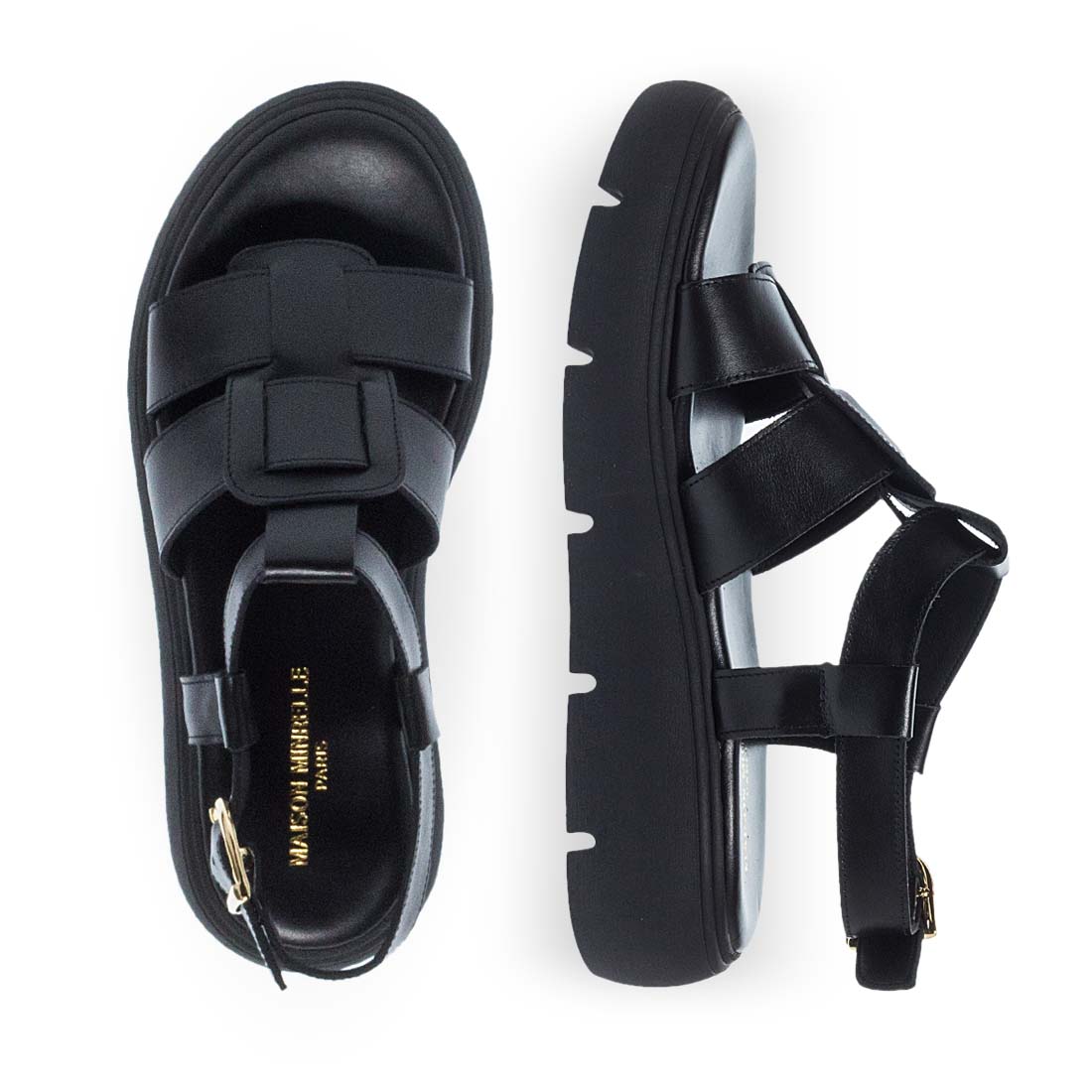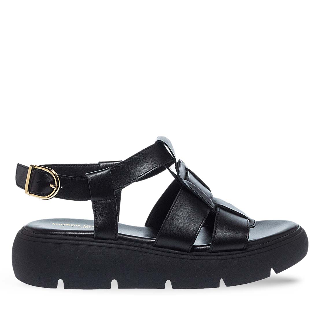 Leather sandals by brand Maison Minrelle. Buckle strap fastening. Timeless design. They have a soft leather footbed and a firm platform sole for comfortable and stable steps. Designed with high level of quality and comfort