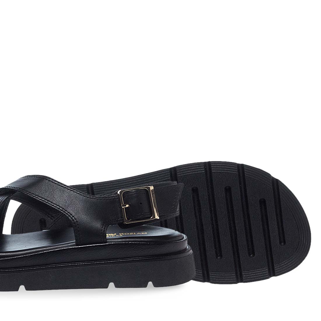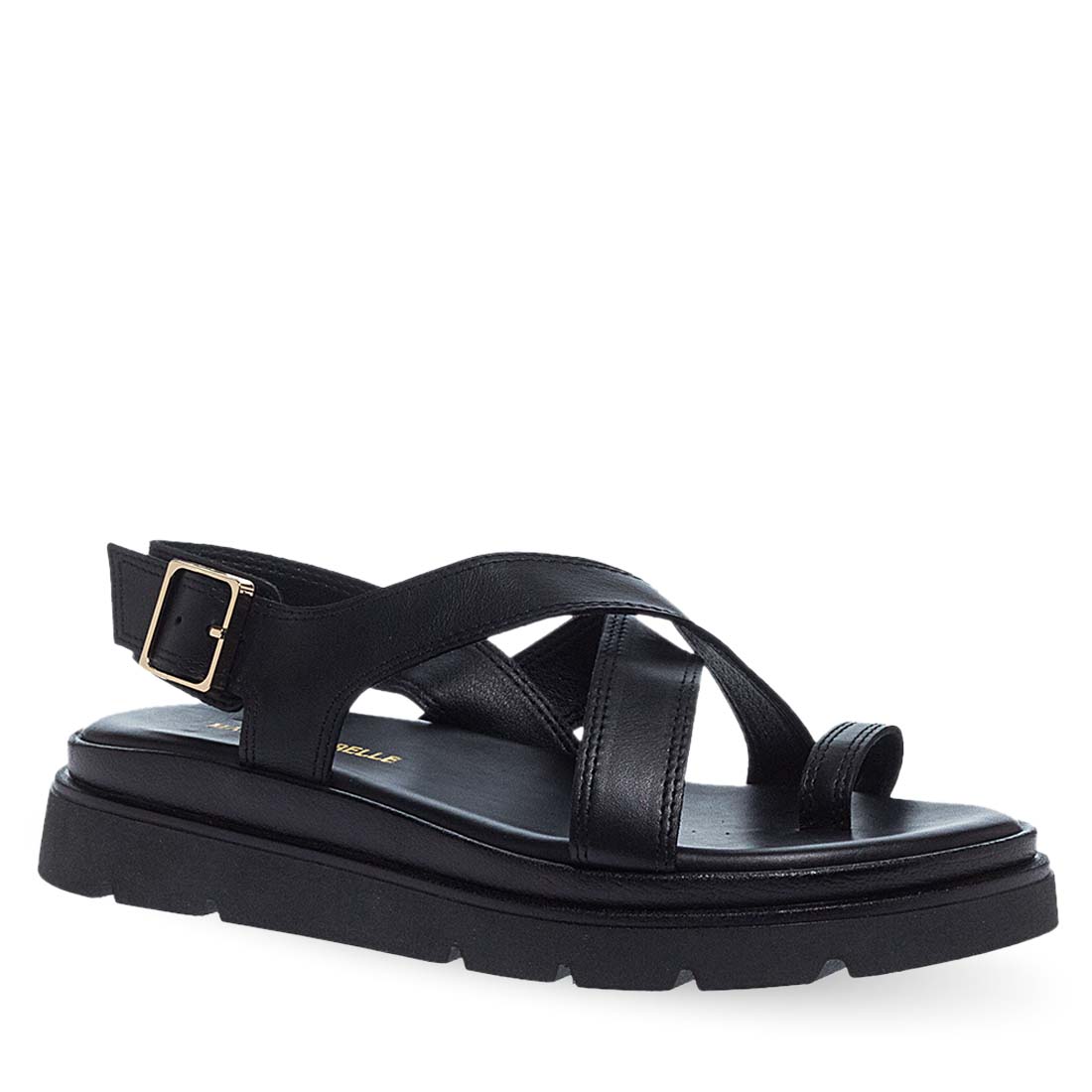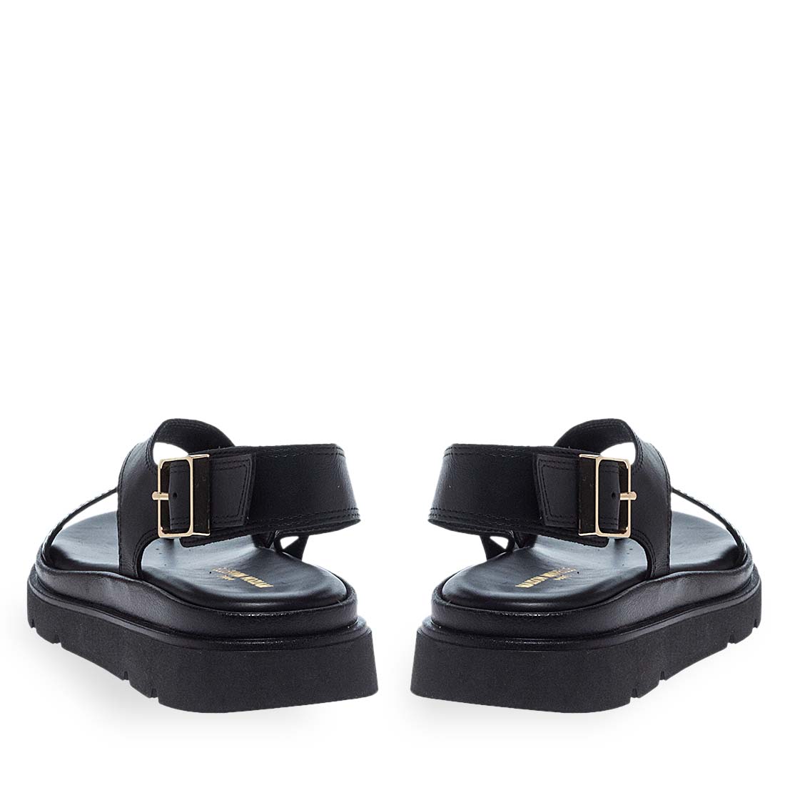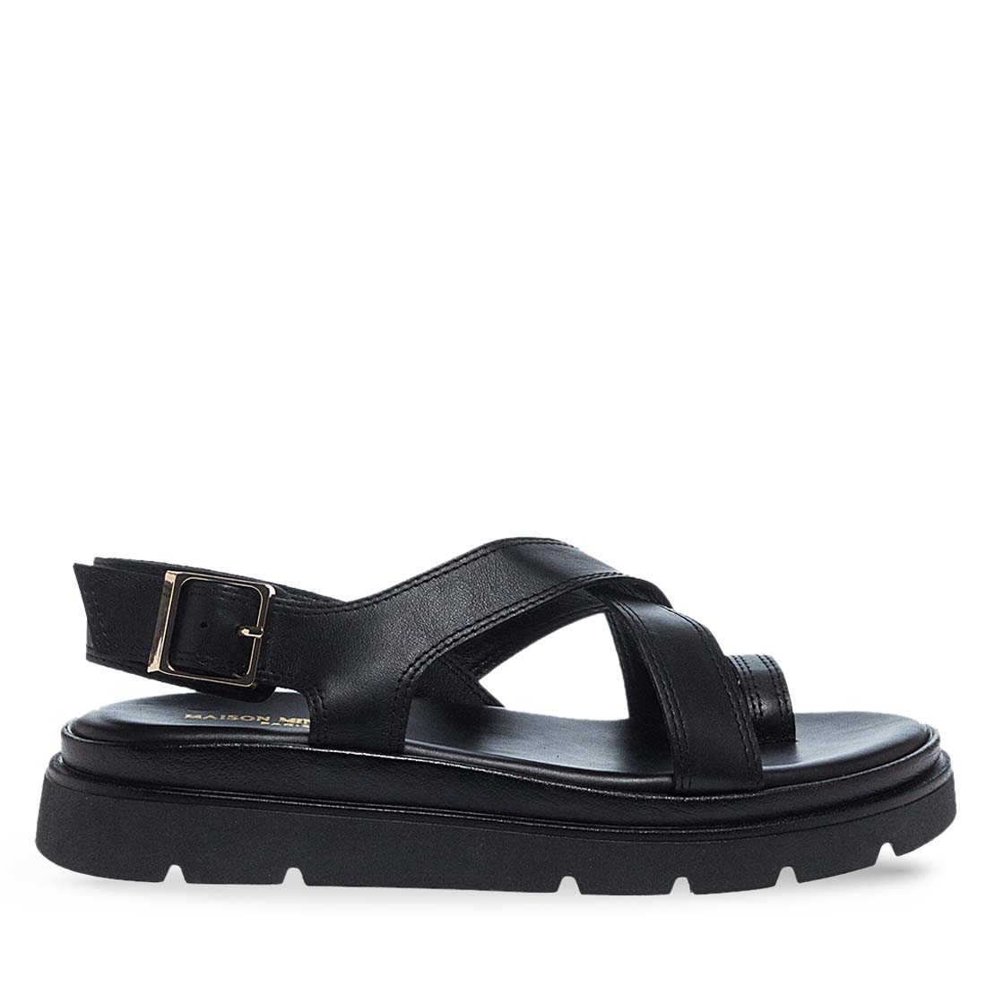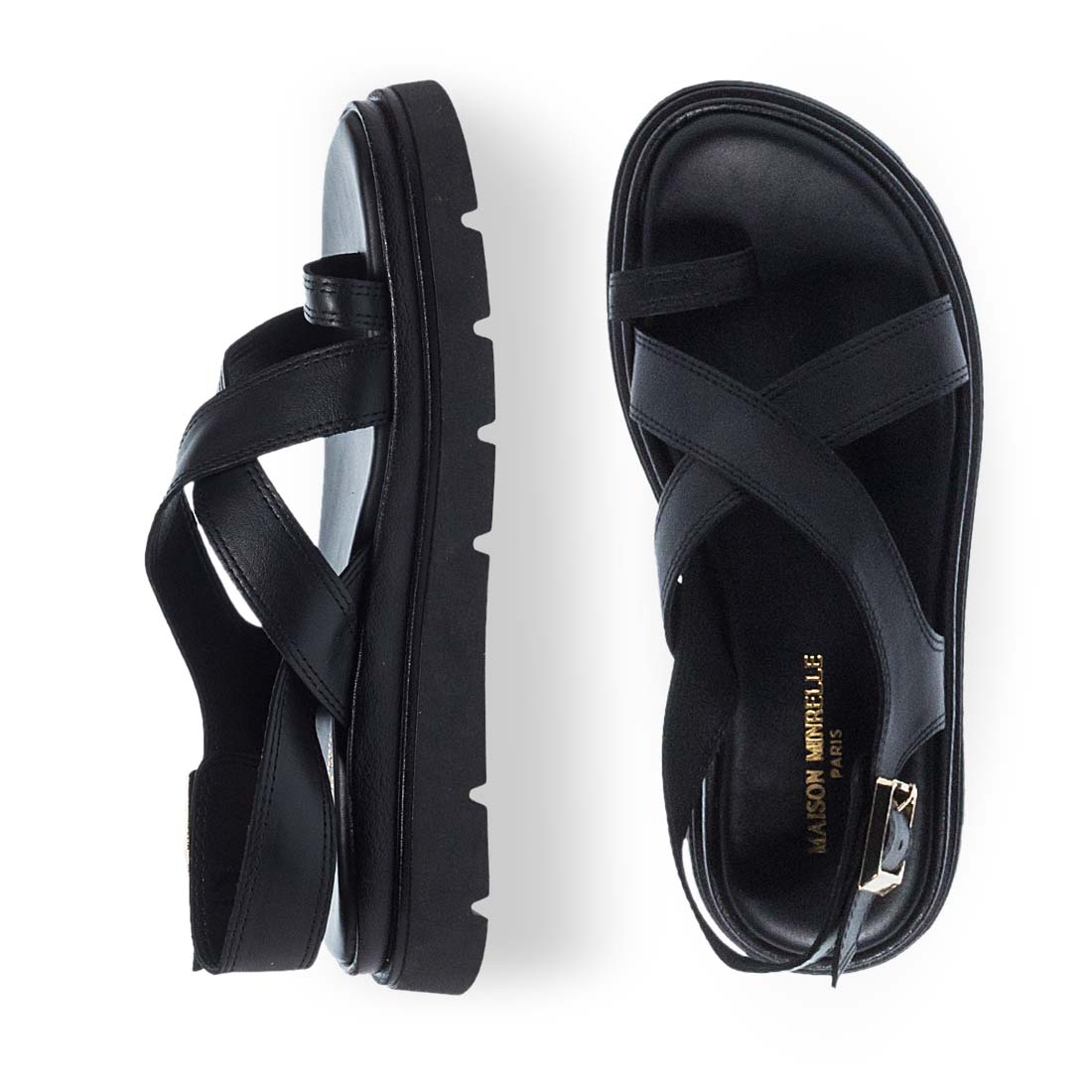Women''s Leather Sandals Maison Minrelle. Black and tabac sandals with chunky sole and leather straps – support and style combined.