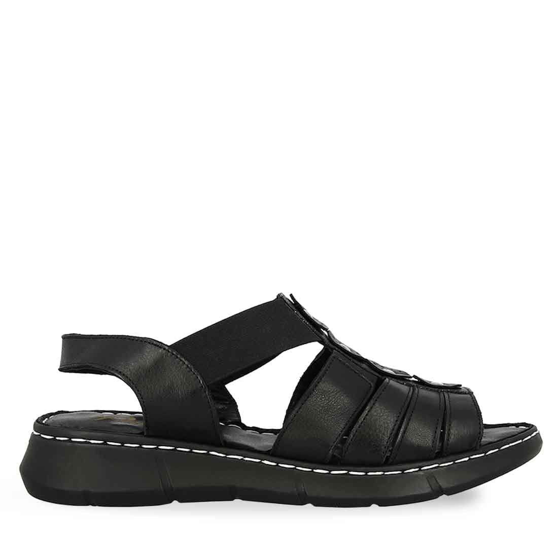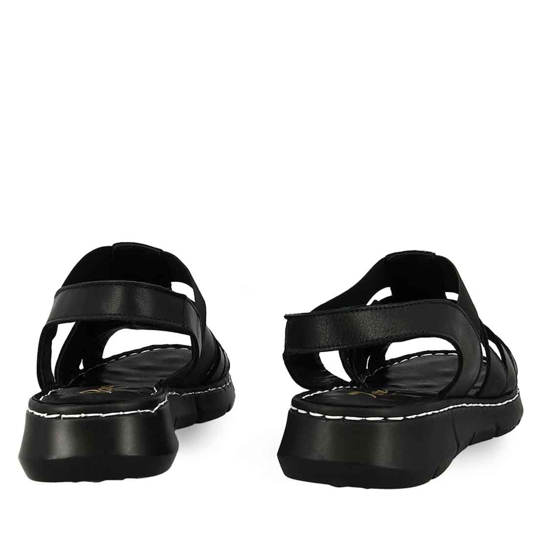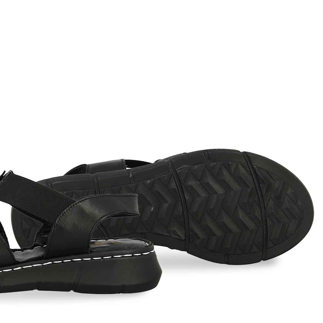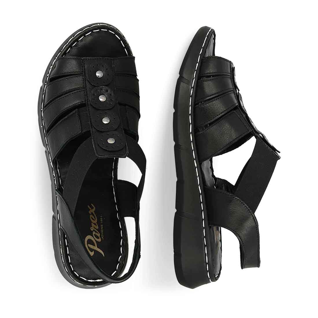Comfortable leather sandals by Prex with chunky , slip-free sole and visible seams. Elasticated straps.