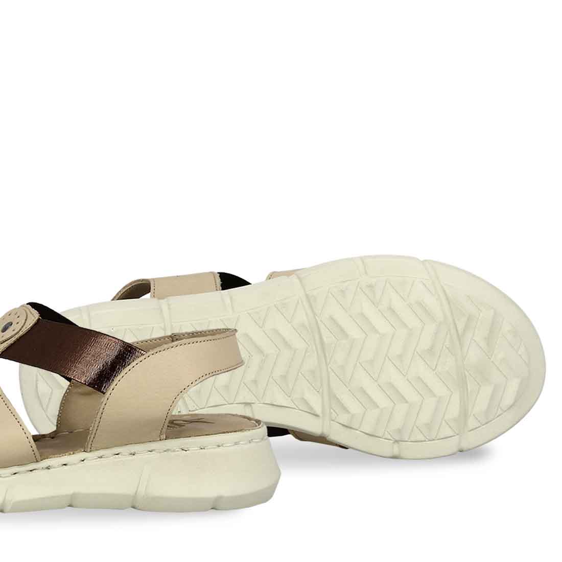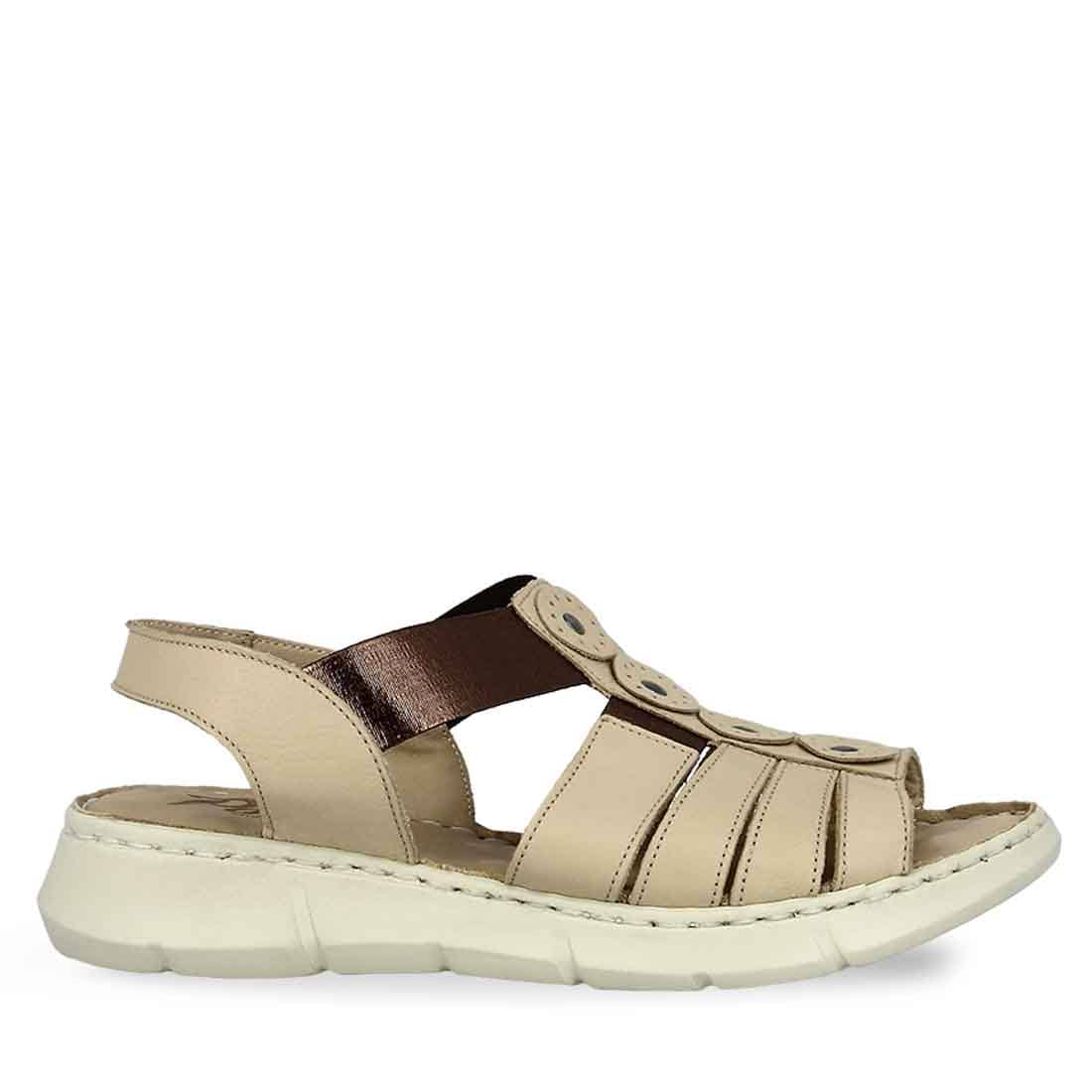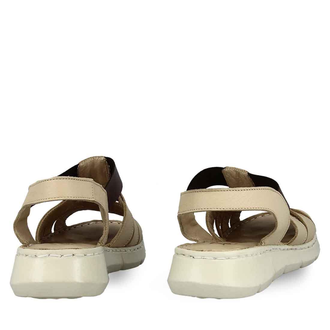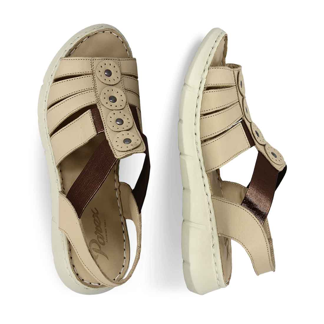 Comfortable leather sandals by Prex with chunky , slip-free sole and visible seams. Elasticated straps.