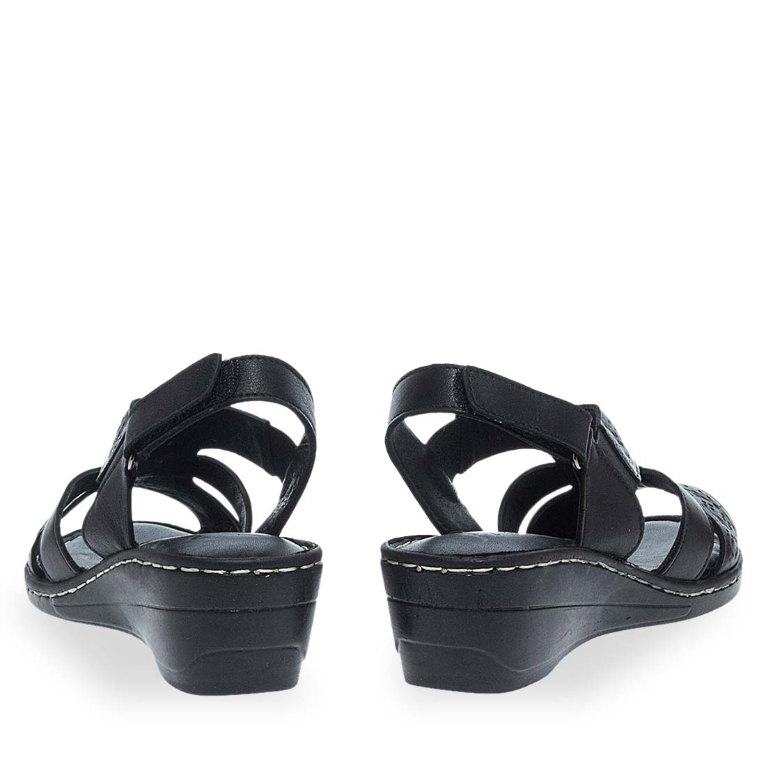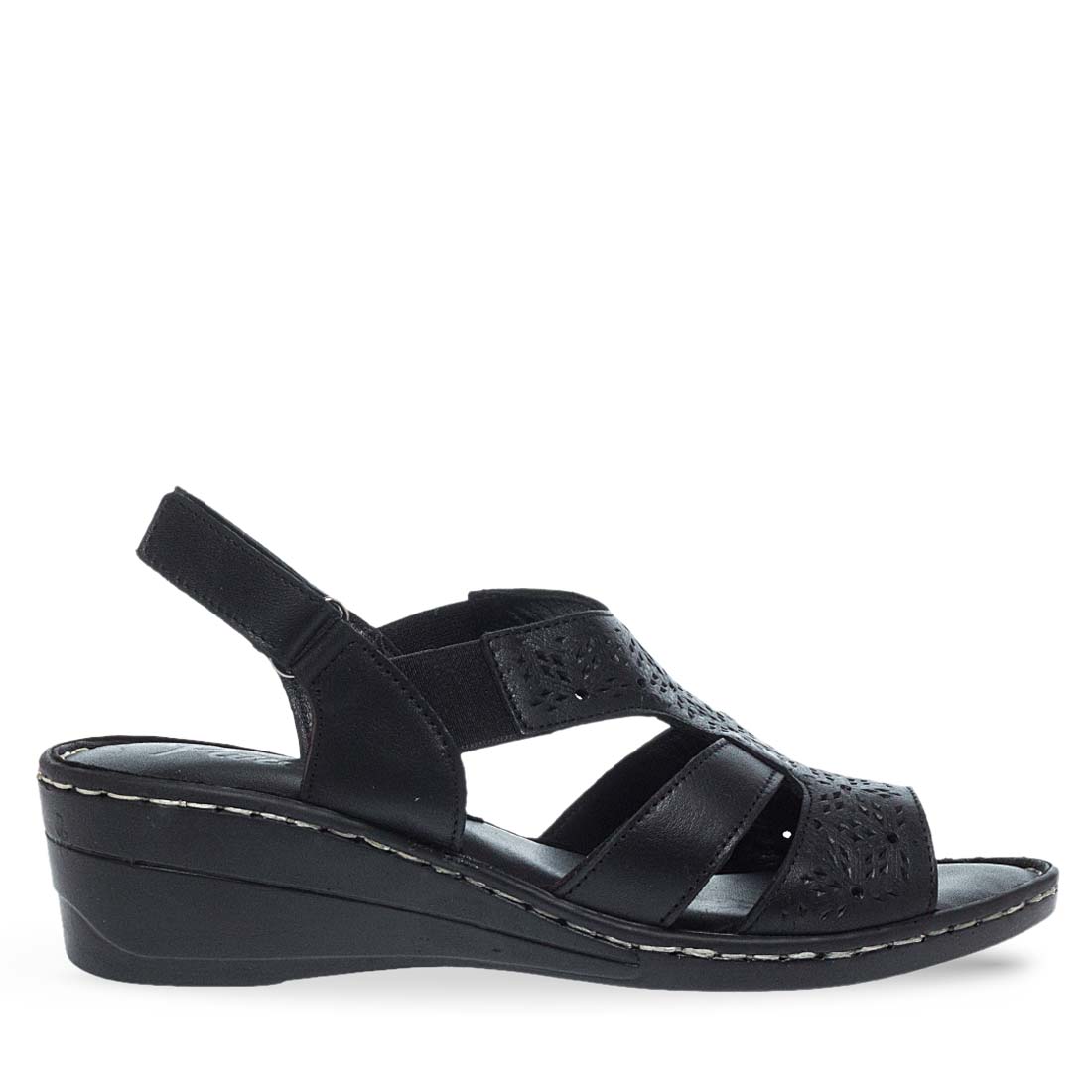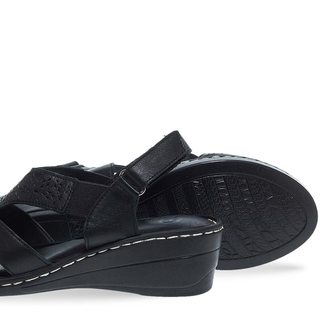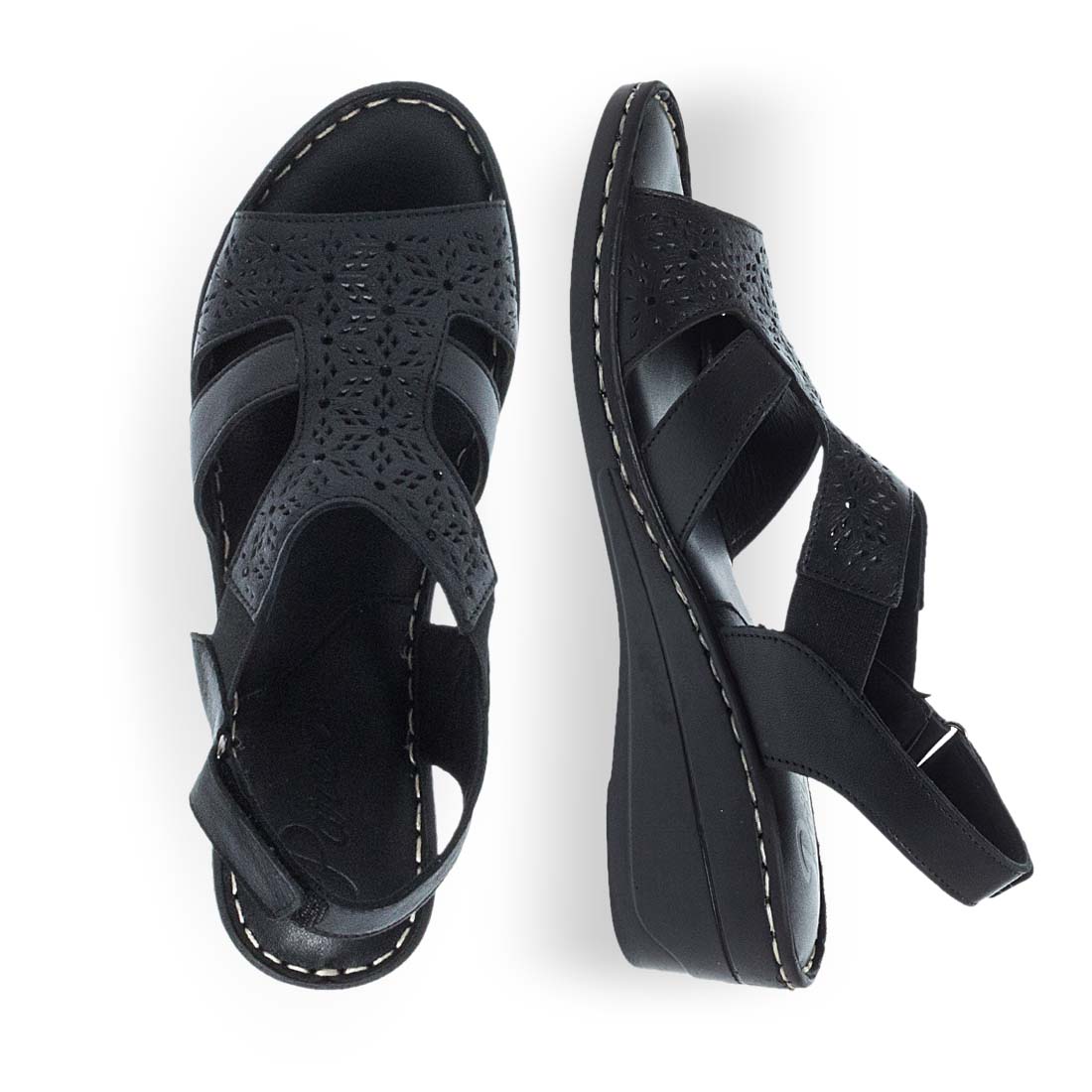Leather sandals by new Parex collection,a timeless design that every woman should have in her wardrobe. Cross elasticated panel on the upper and velcro closure on the side. Modern design and low platform heel. Enjoy comfort and style with these sandals in black color.