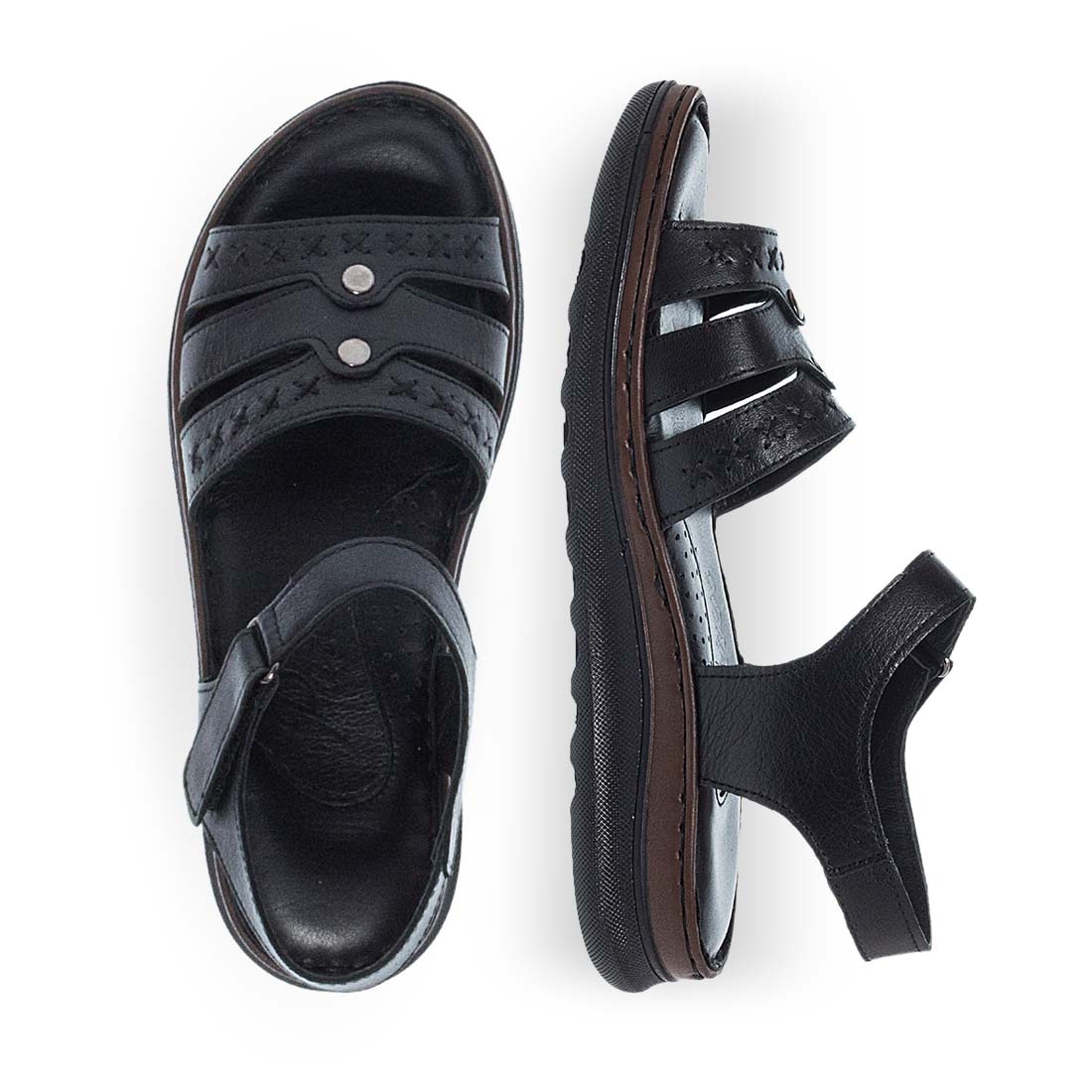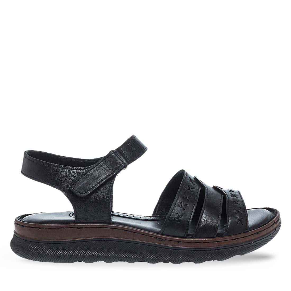 For comfortable steps all the day choose these Parex sandals. Straps on the ankle that hug your foot and a velcro closure on the ankle. Super soft leather insole and firm sole. Feel the summer with these sandals by Parex.