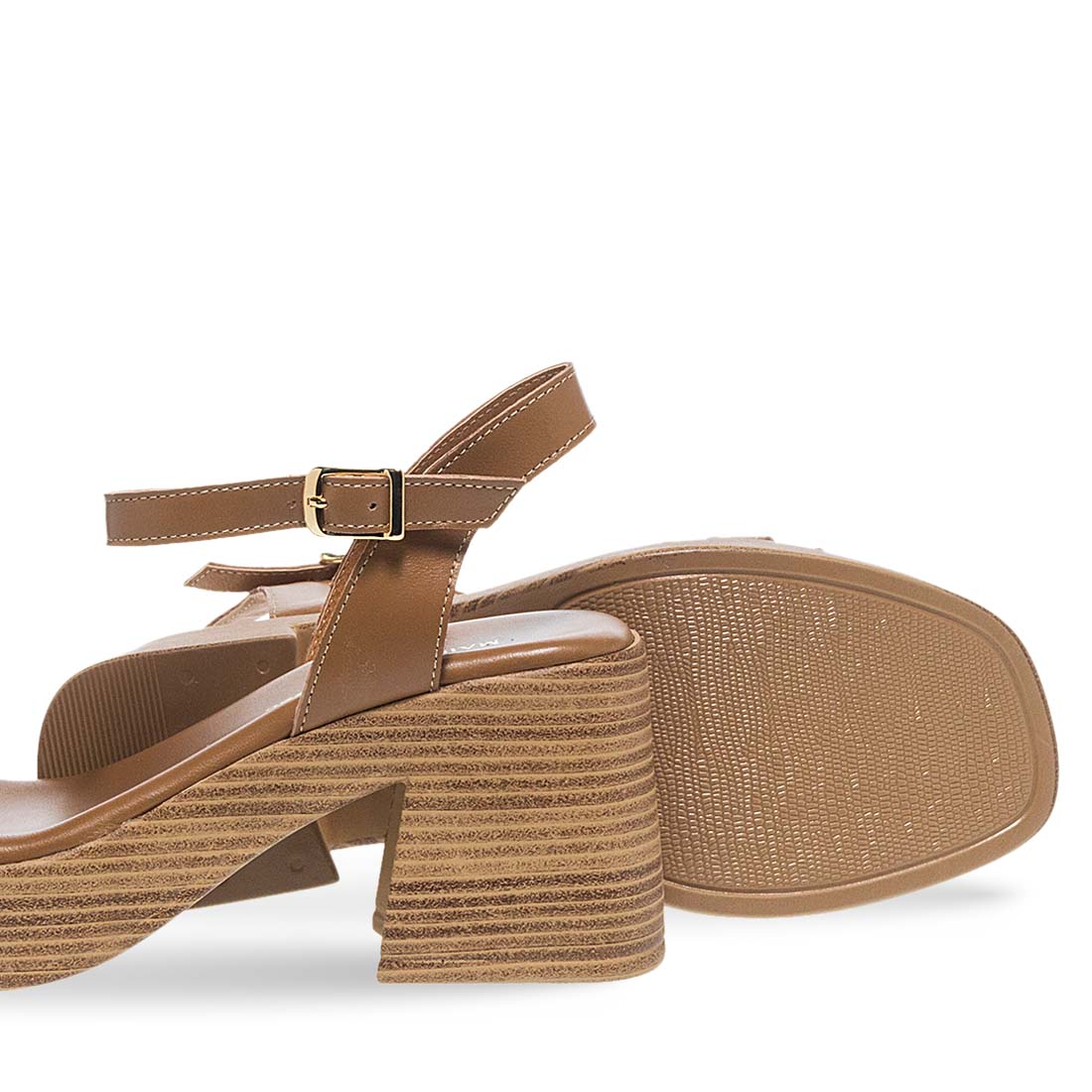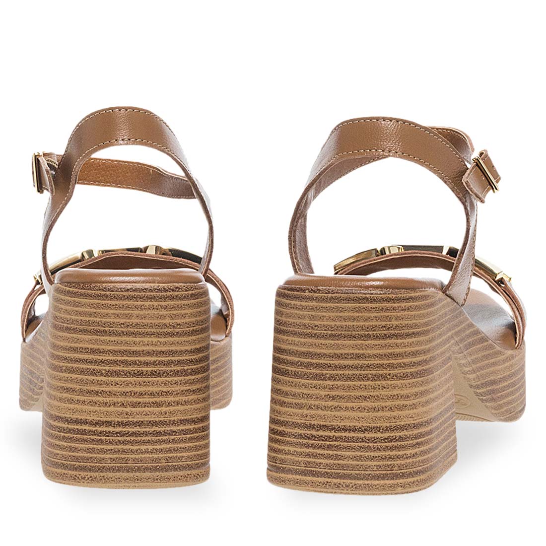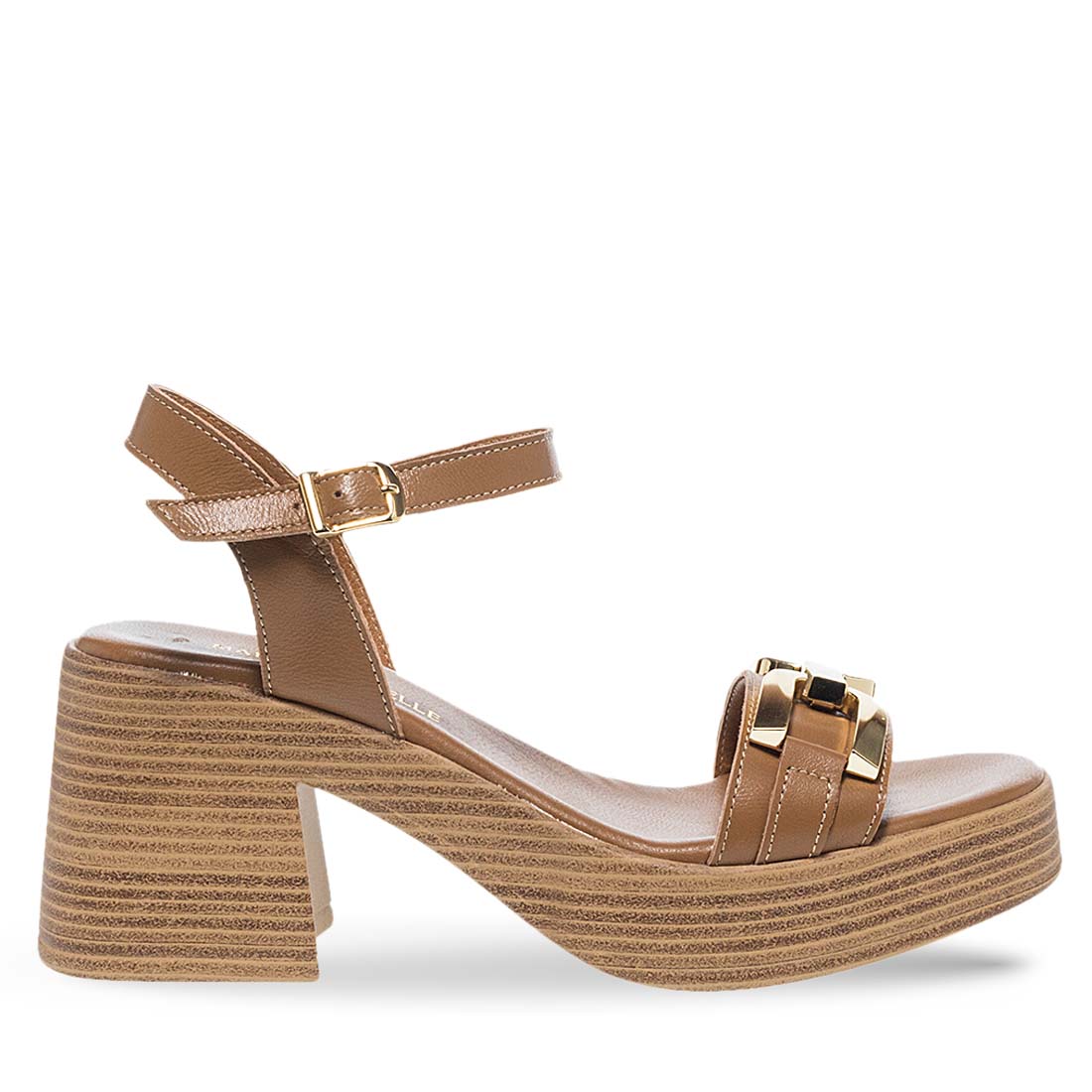 Leather heeled sandals Maison Minrelle. They have block heel for steady steps, a strap that hugs the ankle and a strap on the upper with metal detail. They have a soft leather footbed for comfortable steps and a durable sole. Refresh your style with these modern sandals.