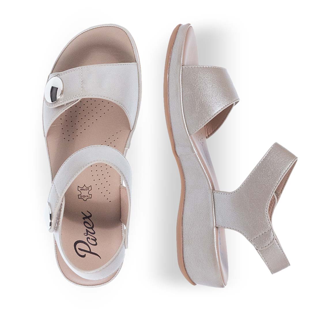 Comfortable sandals Parex from faux leather. Closure with velcro straps for comfortable and easy application. You will not want to take them off. Relaxed fit.