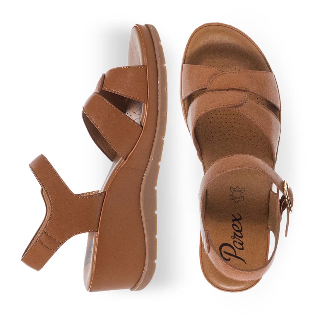 Comfortable sandals by Parex. Slip-free sole. This design comes in black and tabbac color. Leather insole. Suitable to wear day to night.