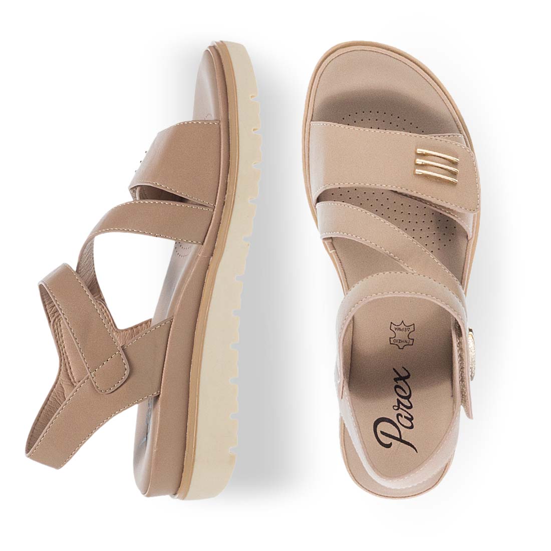 Modern comfort sandals by Parex. This summer feel comfortable and steady steps with these women''s comfort sandals with the guarantee of Parex. Velcro closure. Leather insole. A good mix of comfort and style.