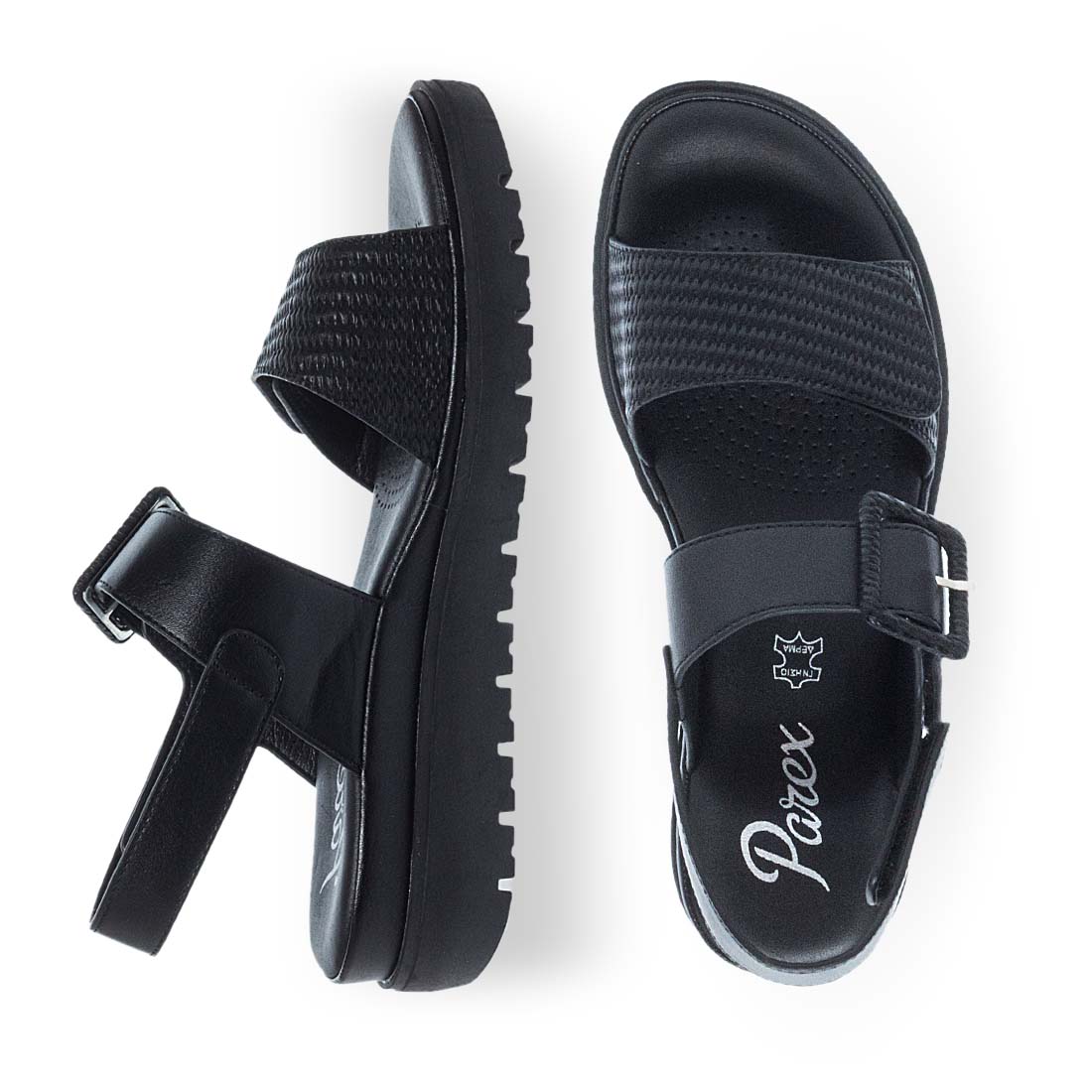 Summer sandals by Parex. Give cool casual vibes with these women''s comfort sandals by Parex. Velcro detail. Suitable to wear day to night. Leather insole.
