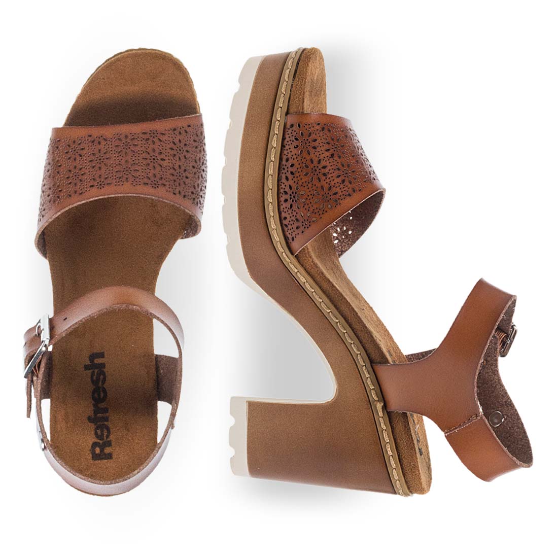 High heel sandals by Refresh. Buckle strap fastening. Comfortable insole. Fashionable and modern design. Ideal to use day to night.