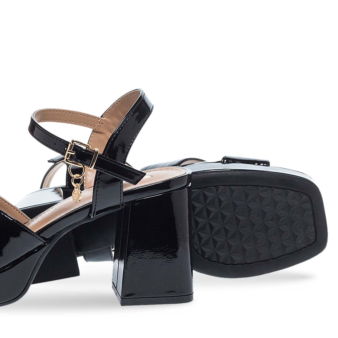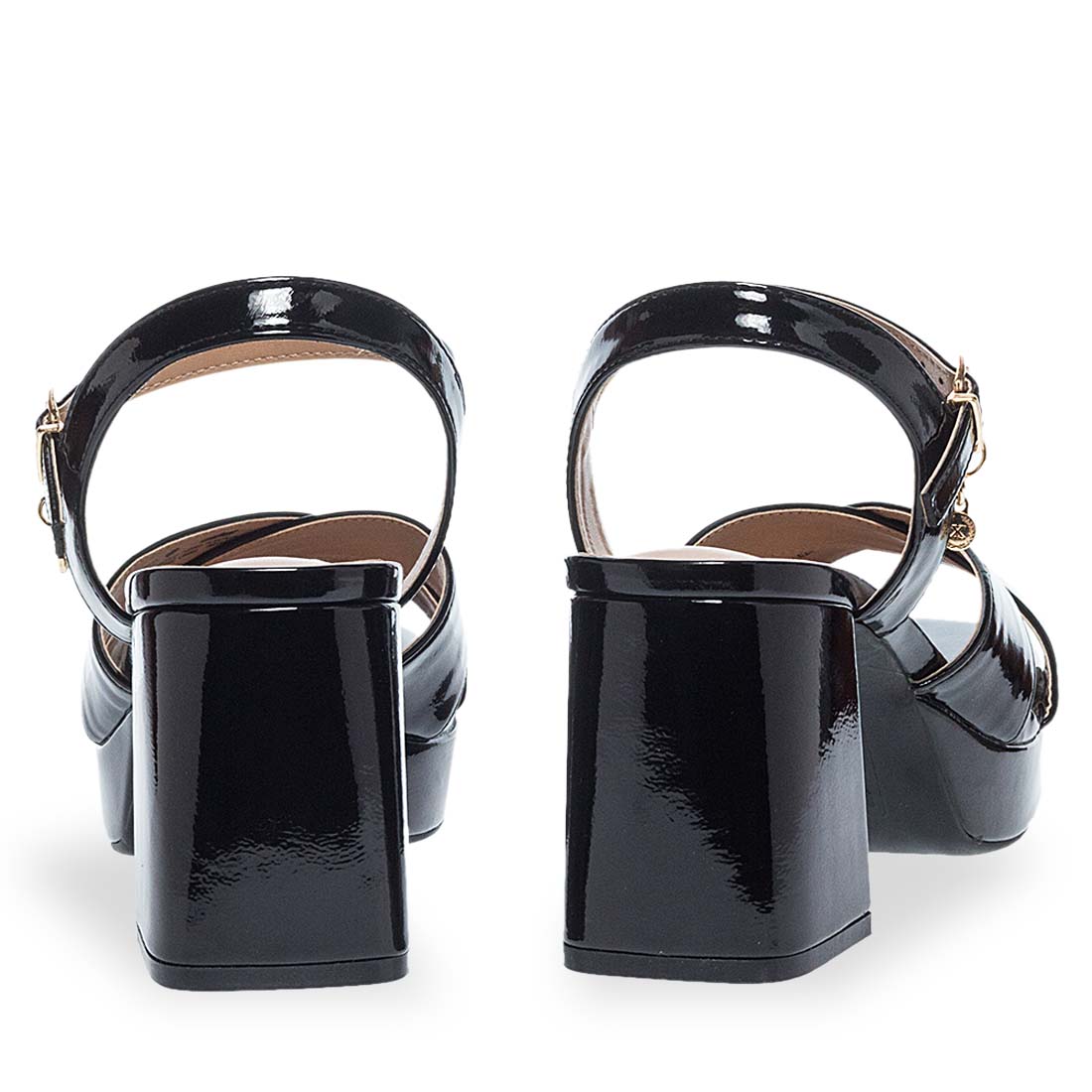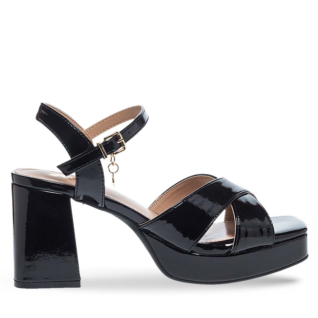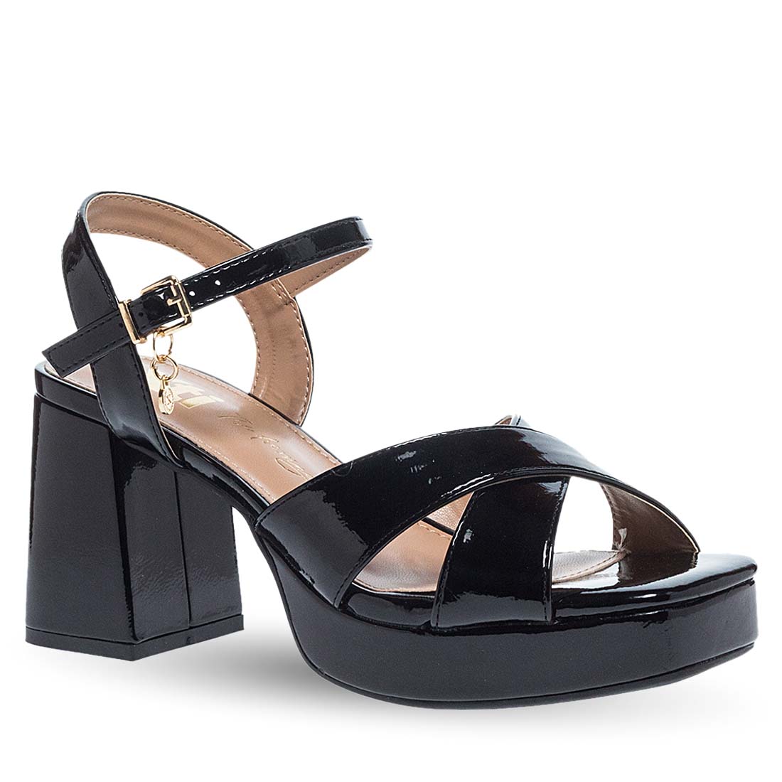 Be stylish day to night with these sandals by Xti. Patent design. Criss cross straps on the upper. They have a high block heel for steady steps and a soft footbed. Modern design.