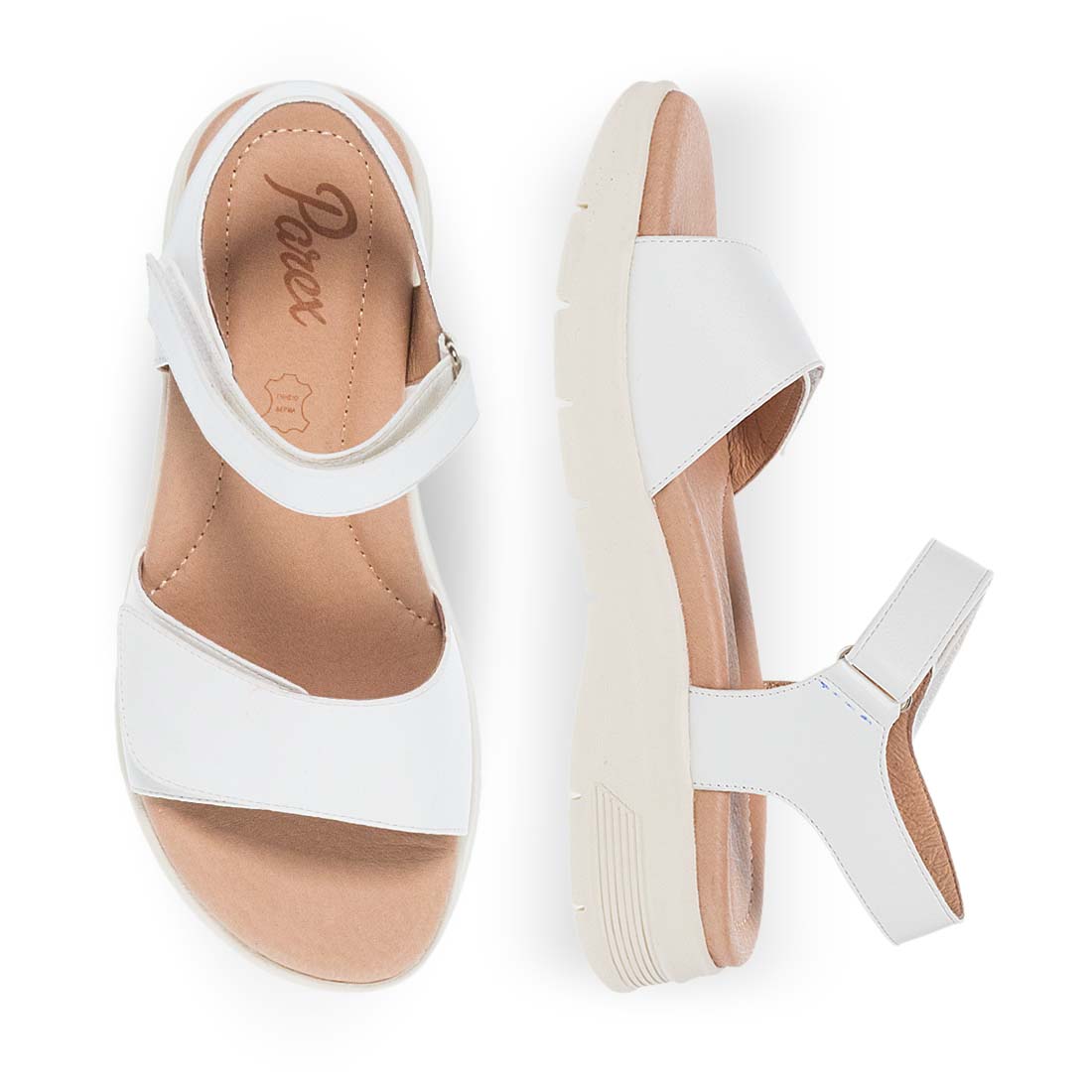 The ultimate choice of the season are these tall and modern sandals for women by Parex. Available in white and black color, excellent fit thanks to the straps with velcro on the upper part and on the ankle. Soft leather footbed for comfortable steps and platform sole.