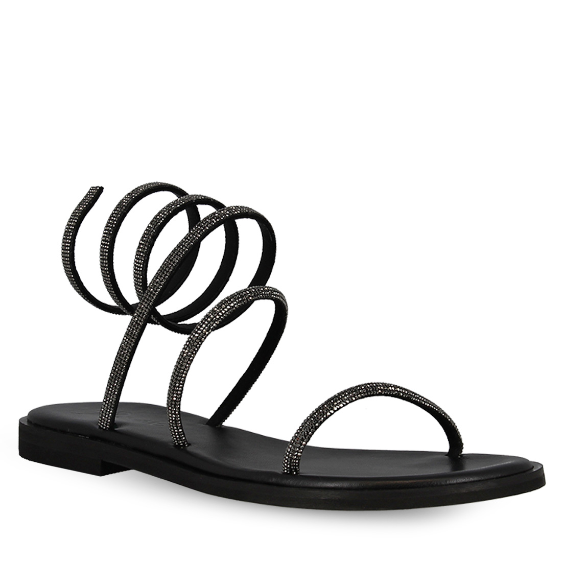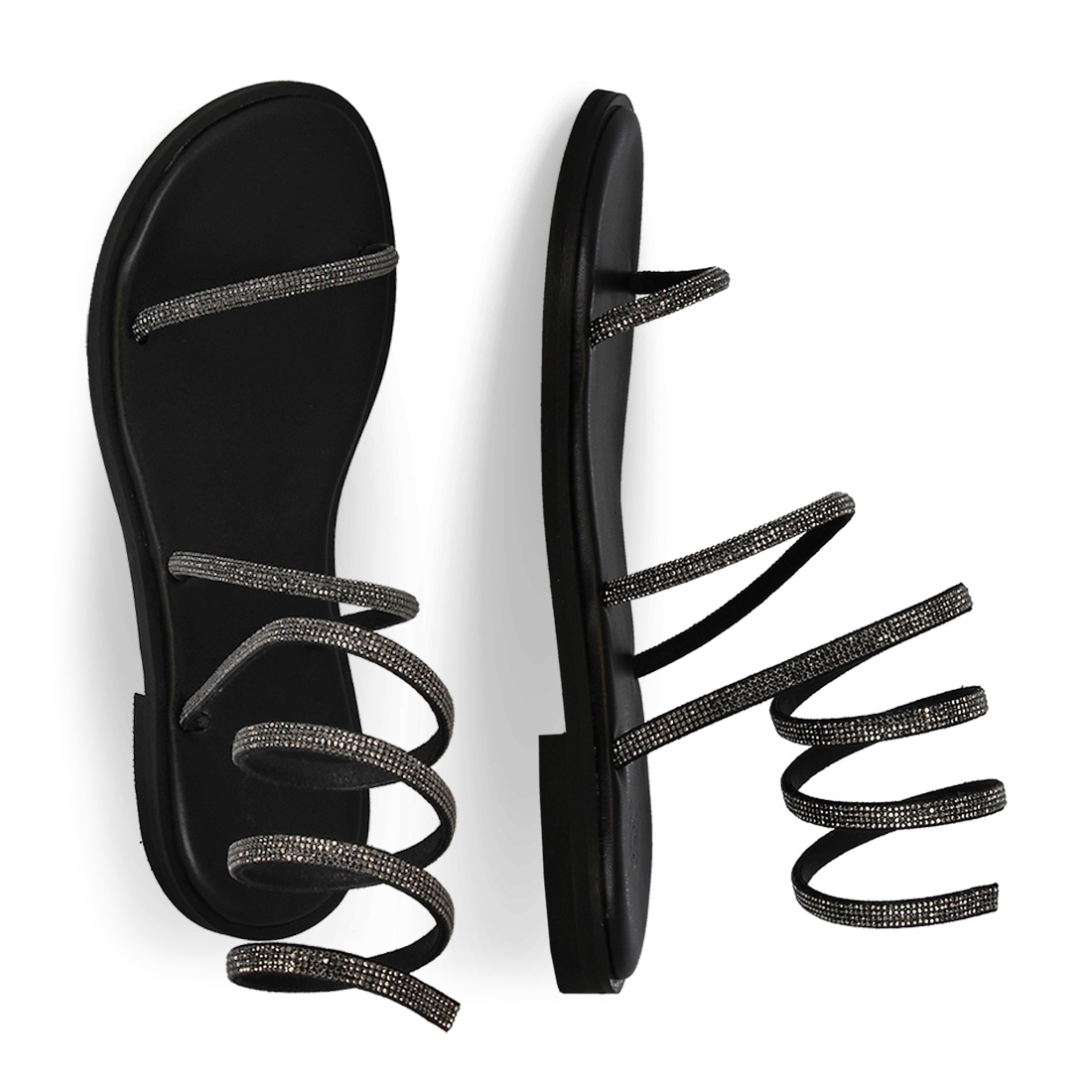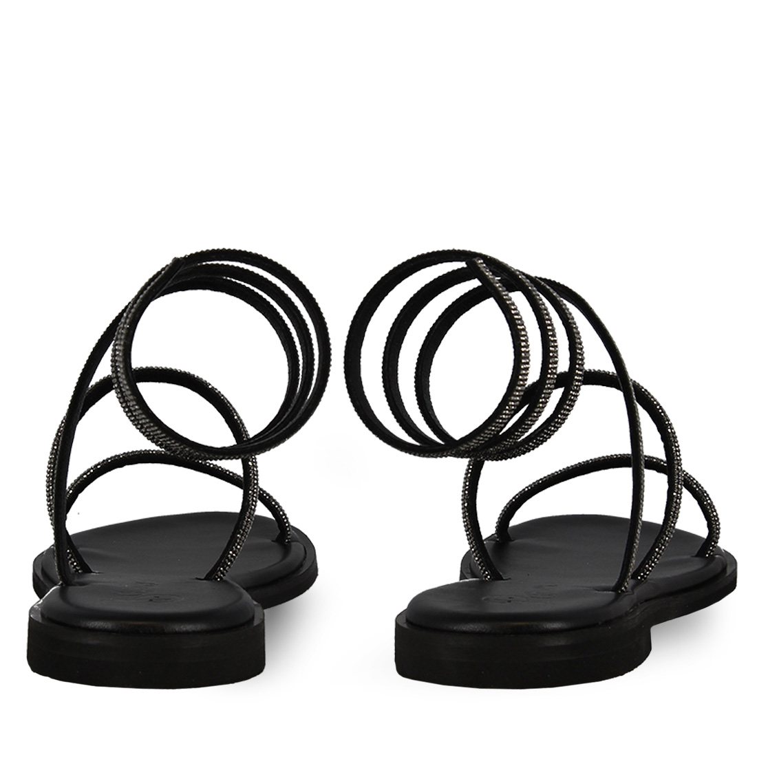 Women''s leather sandals by Parex. Are you invited to a party and can''t stand wearing heels? An ideal choice are these leather sandals by Parex with rhinestone. Thin straps with rhinestones that keep the foot stable in the front and a long strap with rhinestones around your ankle. Available in black, white, blue, lilac, steel and copper colors so you can choose which one will update your look. They have a comfortable leather insole and a stable flat sole. Stay one step ahead with these stunning rhinestone leather sandals.
