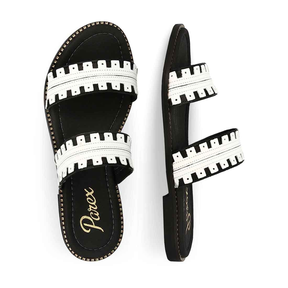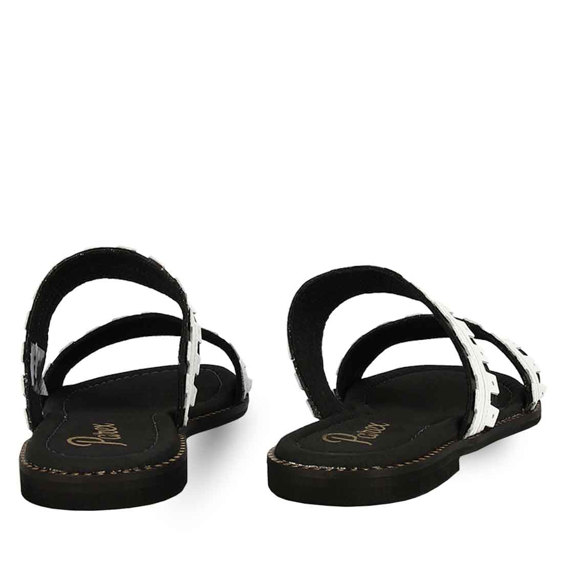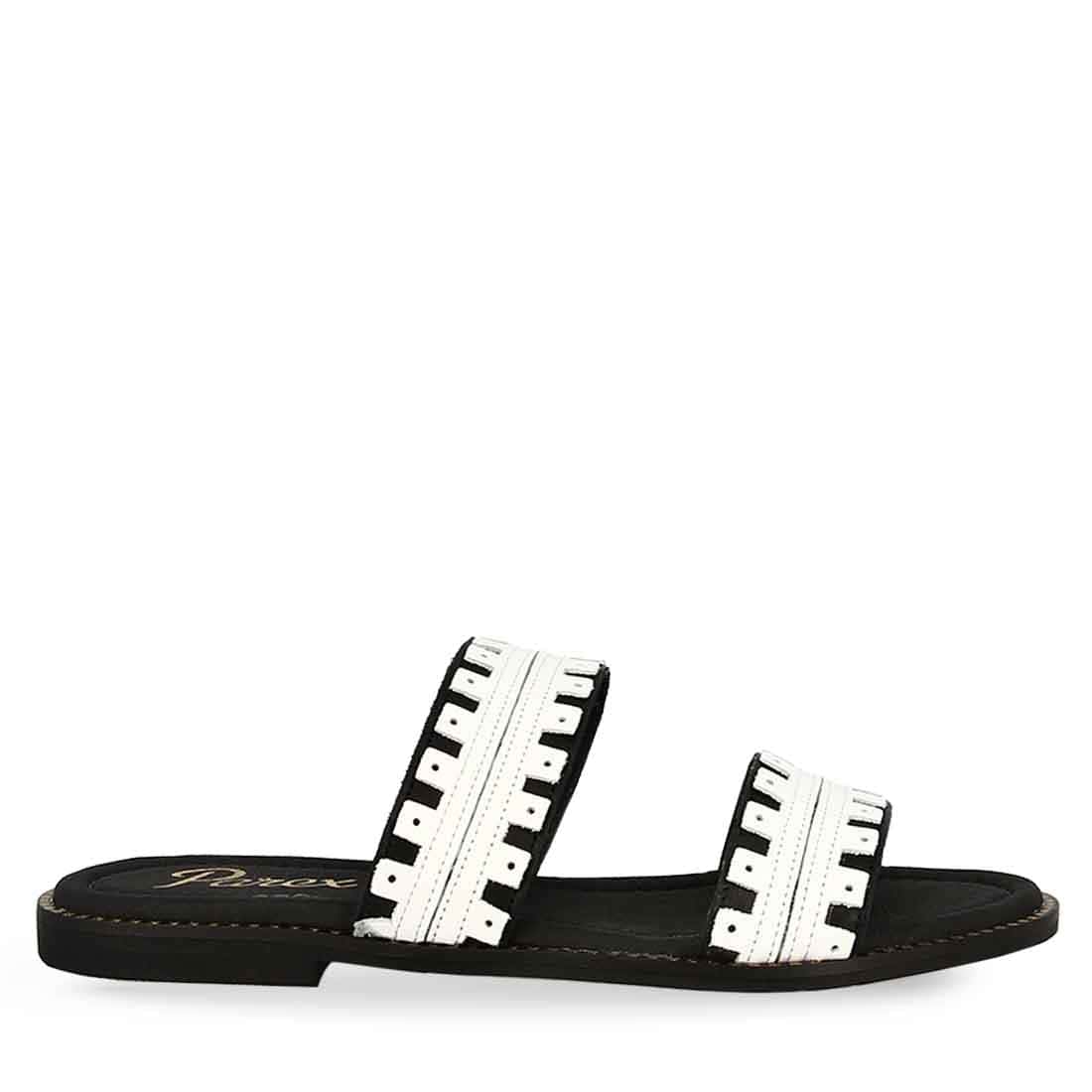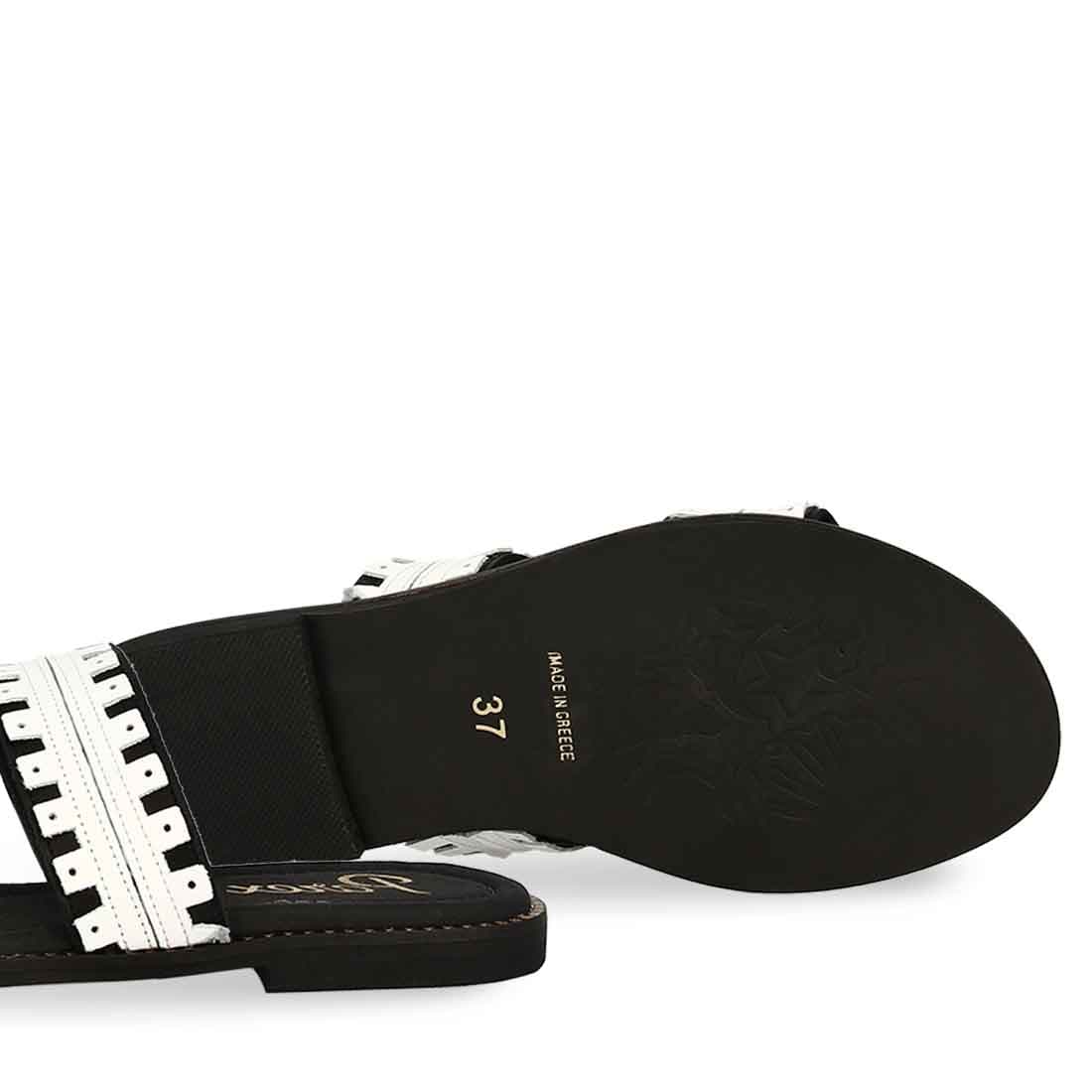 Leather sandals by Parex , made in Greece with non slip sole. Black and white design with double straps.