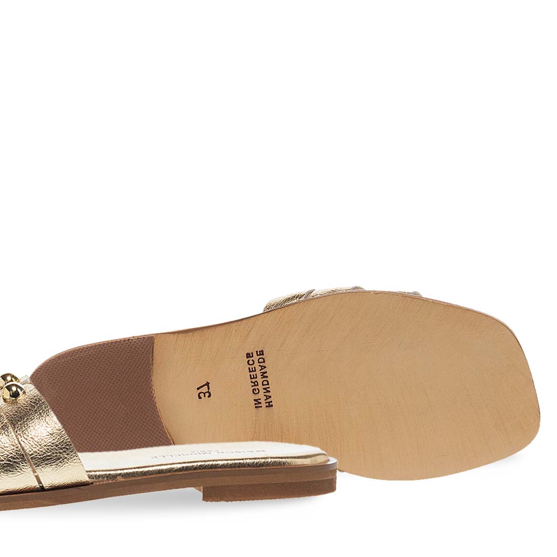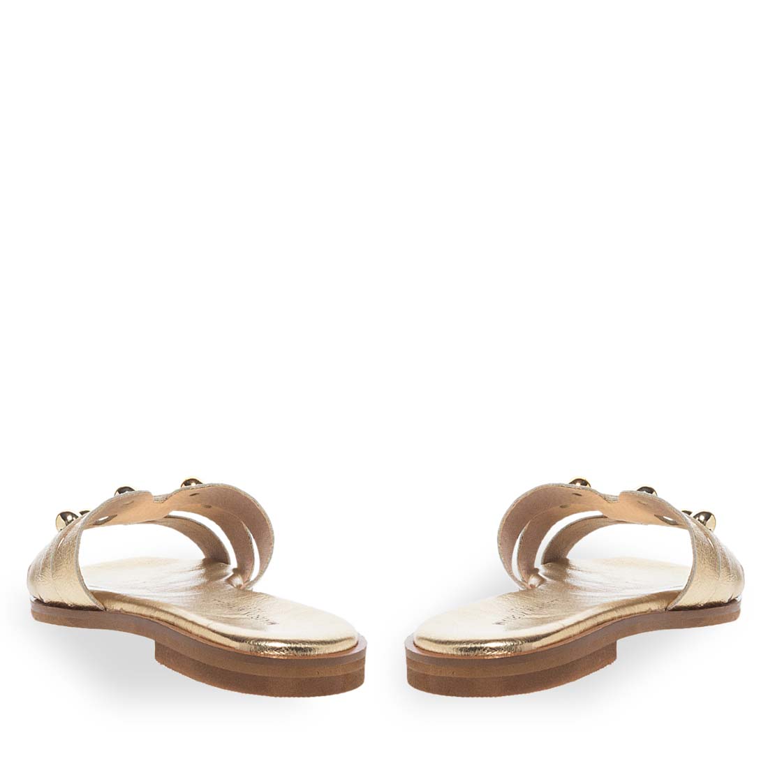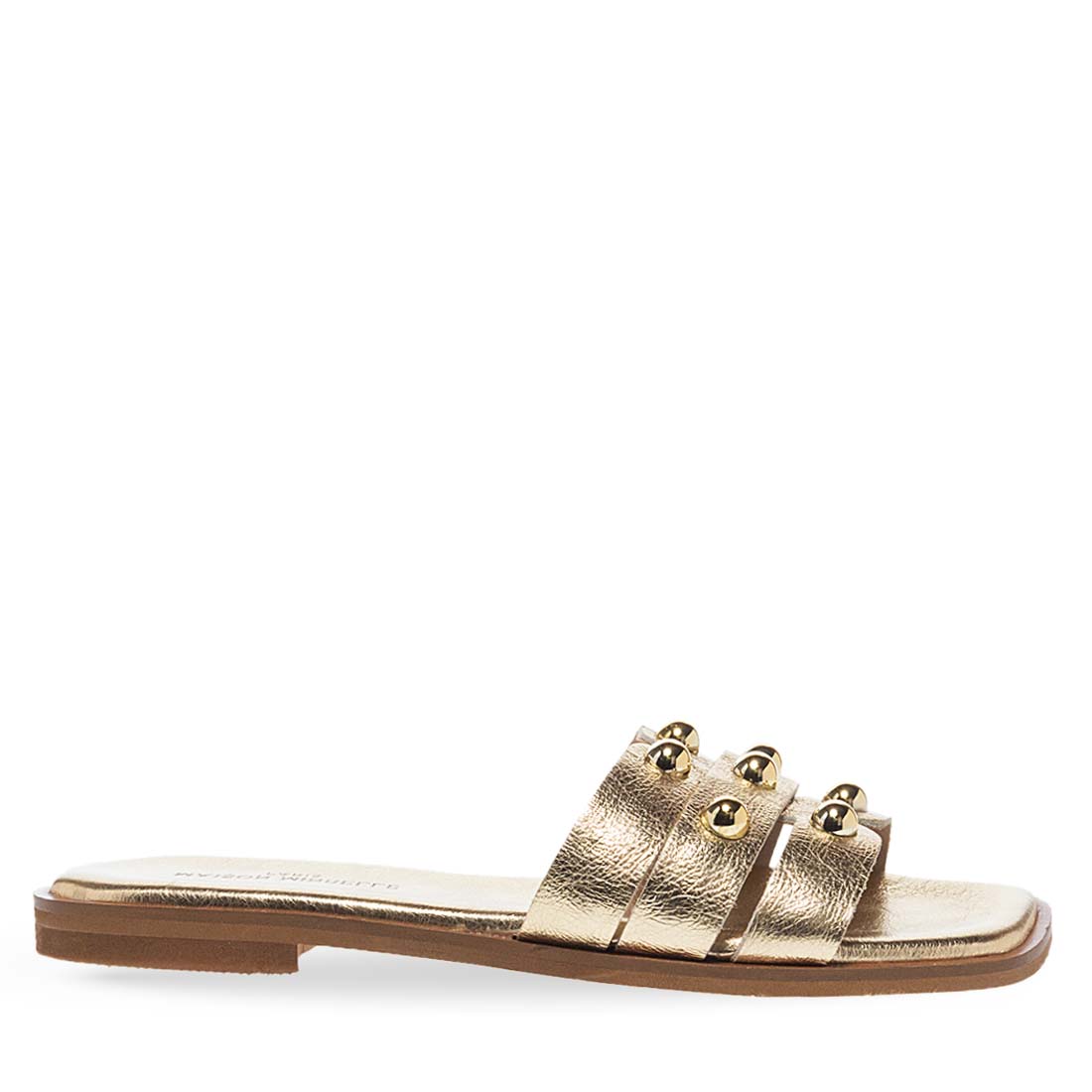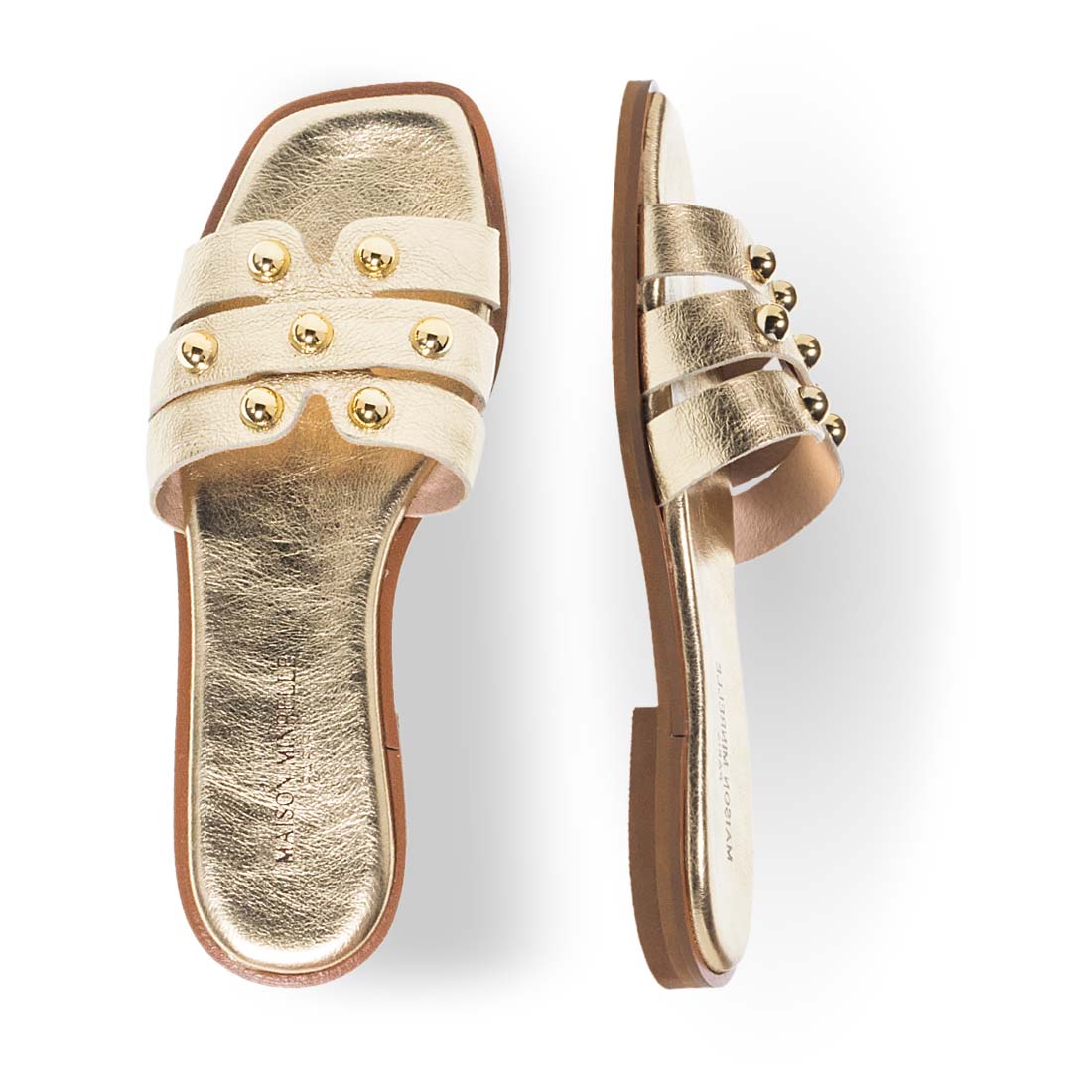 Leather sandals by Maison Minrelle. This design is set on a soft leather insole and a flat sole. Update now your summer style. Studs detail. Easy to fit.