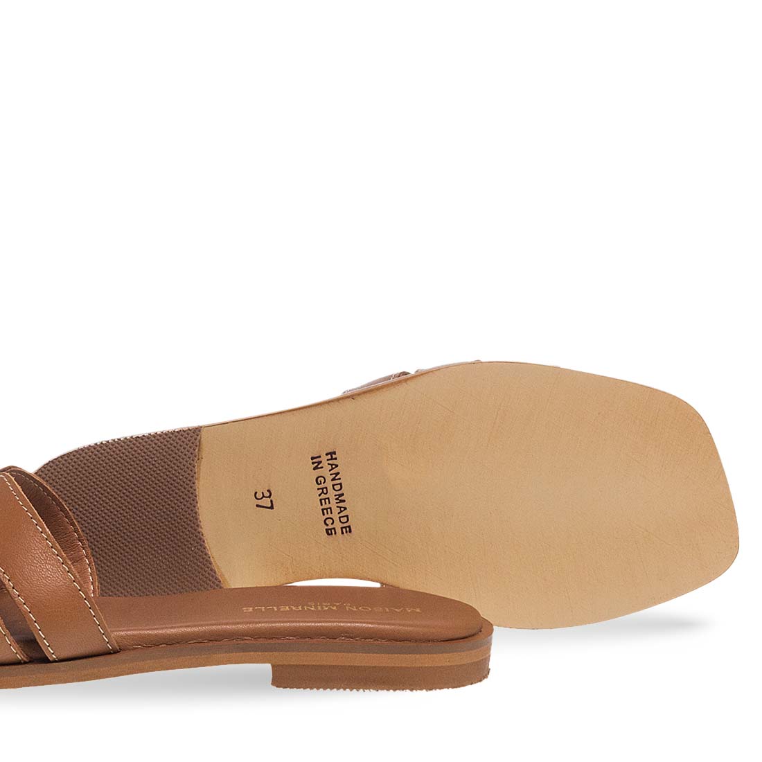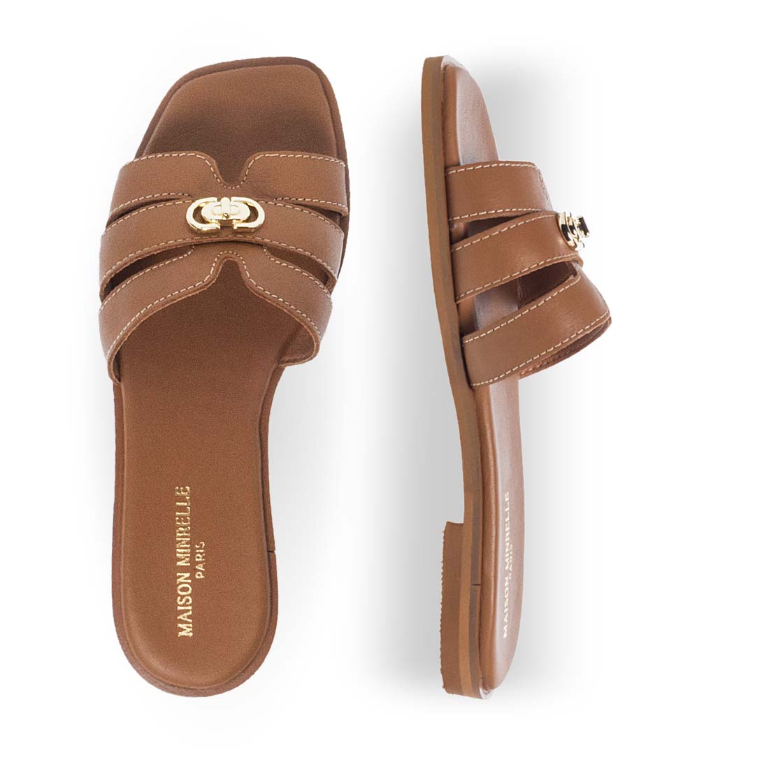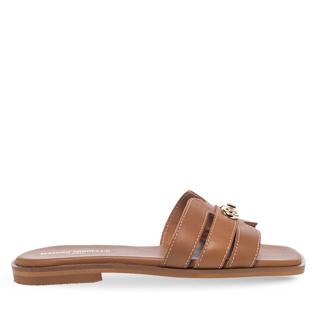 Black leather sandals by Maison Minrelle. Metal detail on the upper. Super soft insole. Easy to wear.