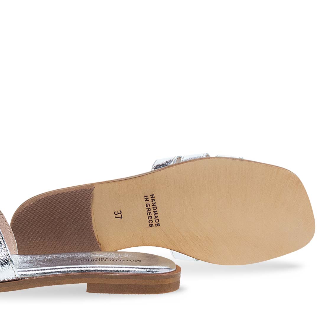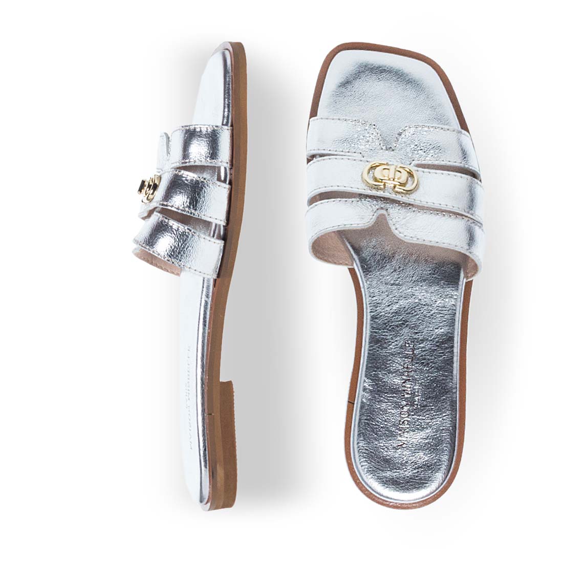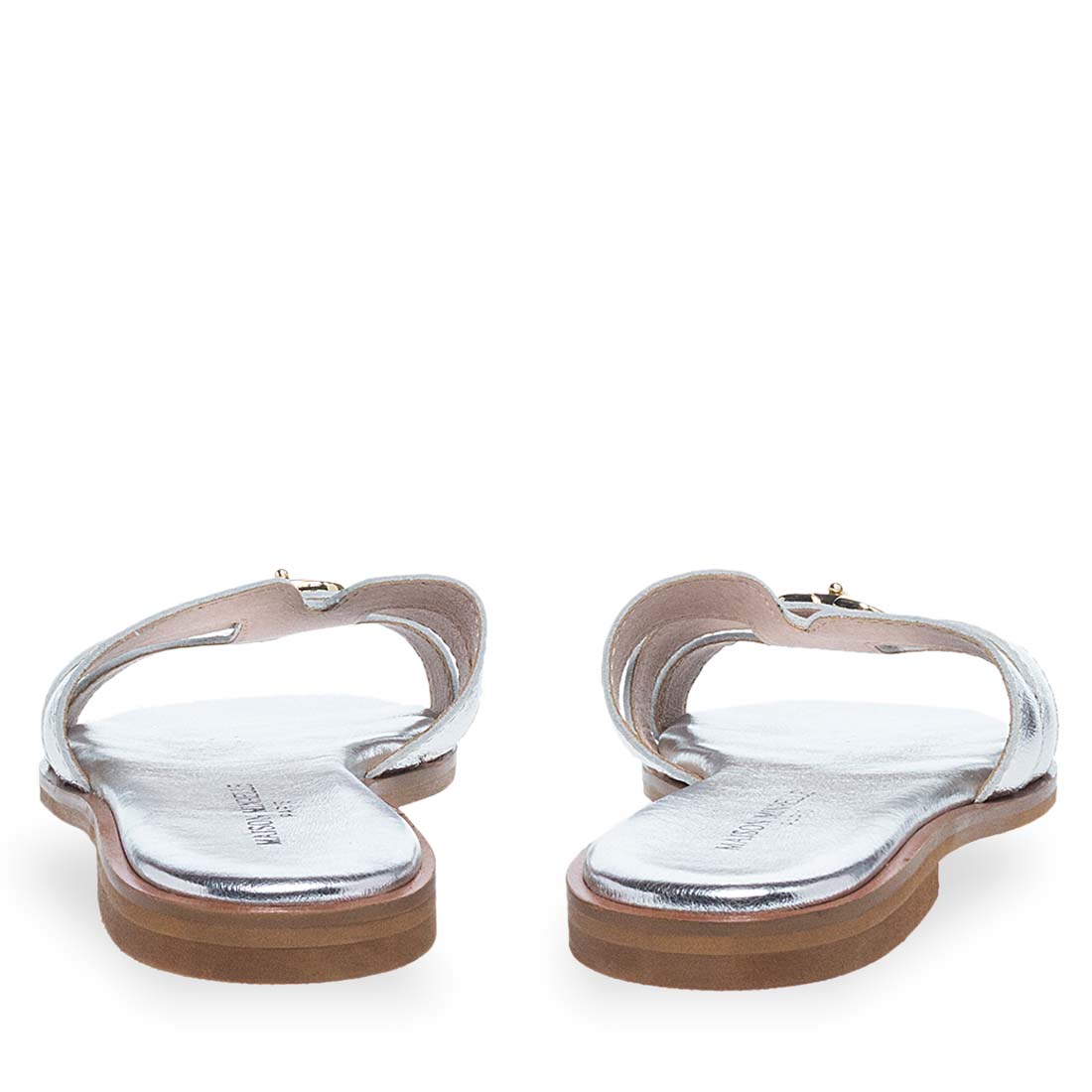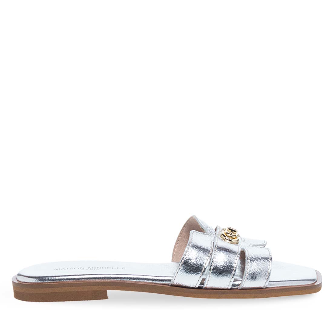 Black leather sandals by Maison Minrelle. Metal detail on the upper. Super soft insole. Easy to wear.