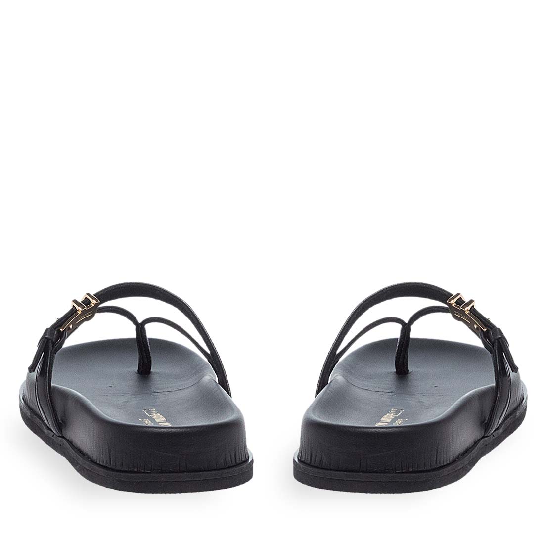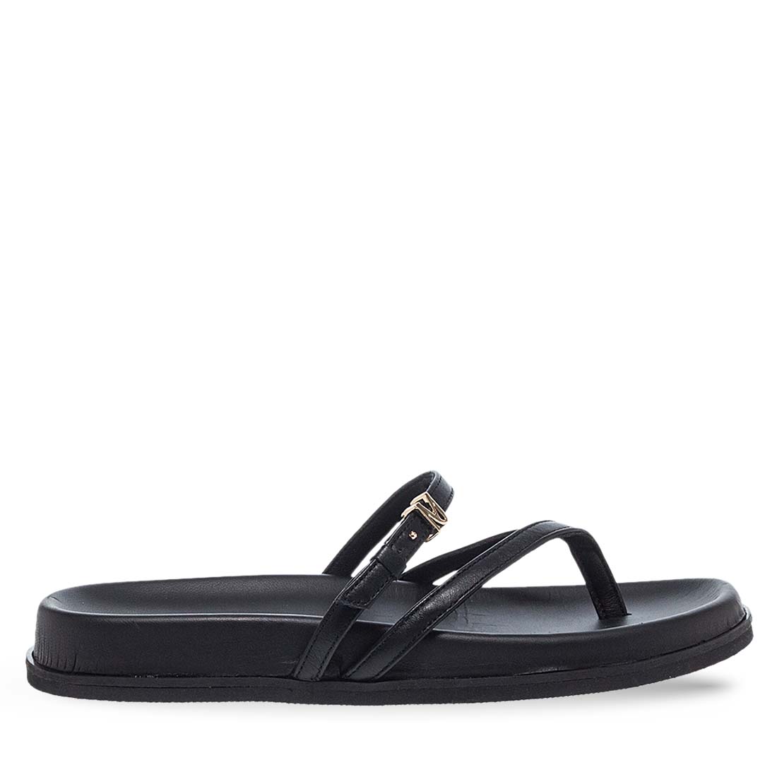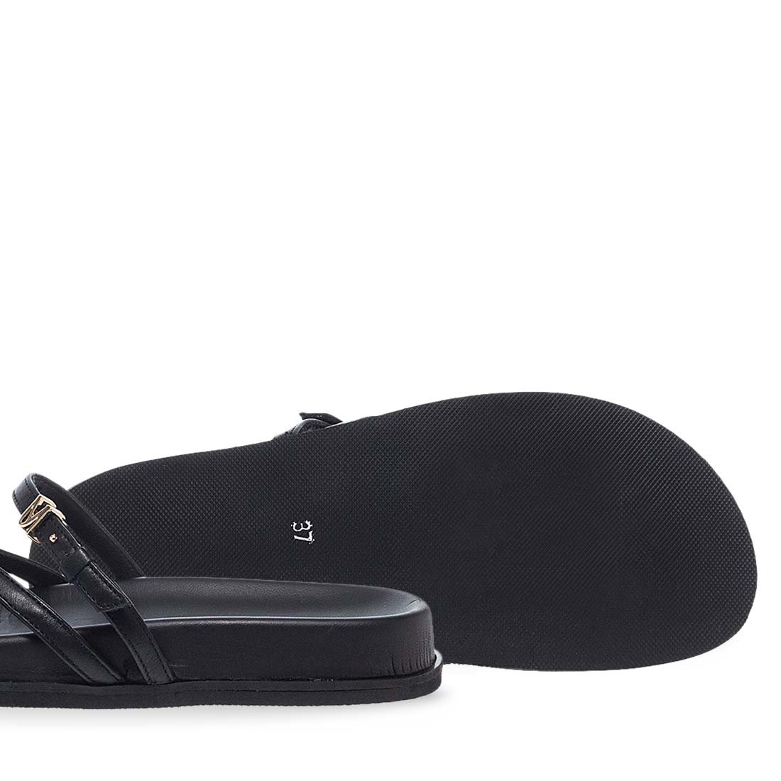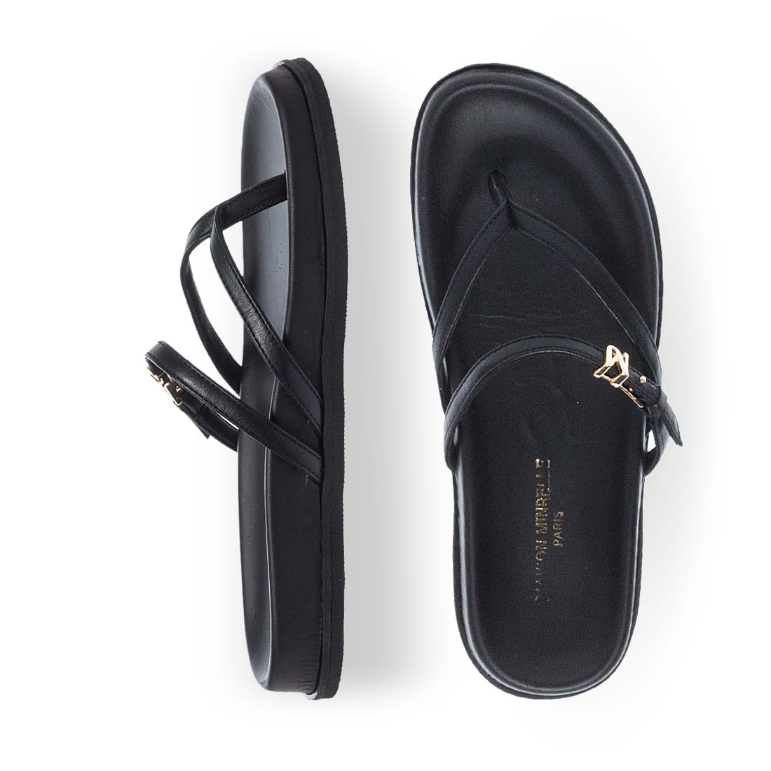 Black leather sandals by Maison Minrelle. Leather insole. Durable outsole. A good mix of comfort and style. Easy to fit.