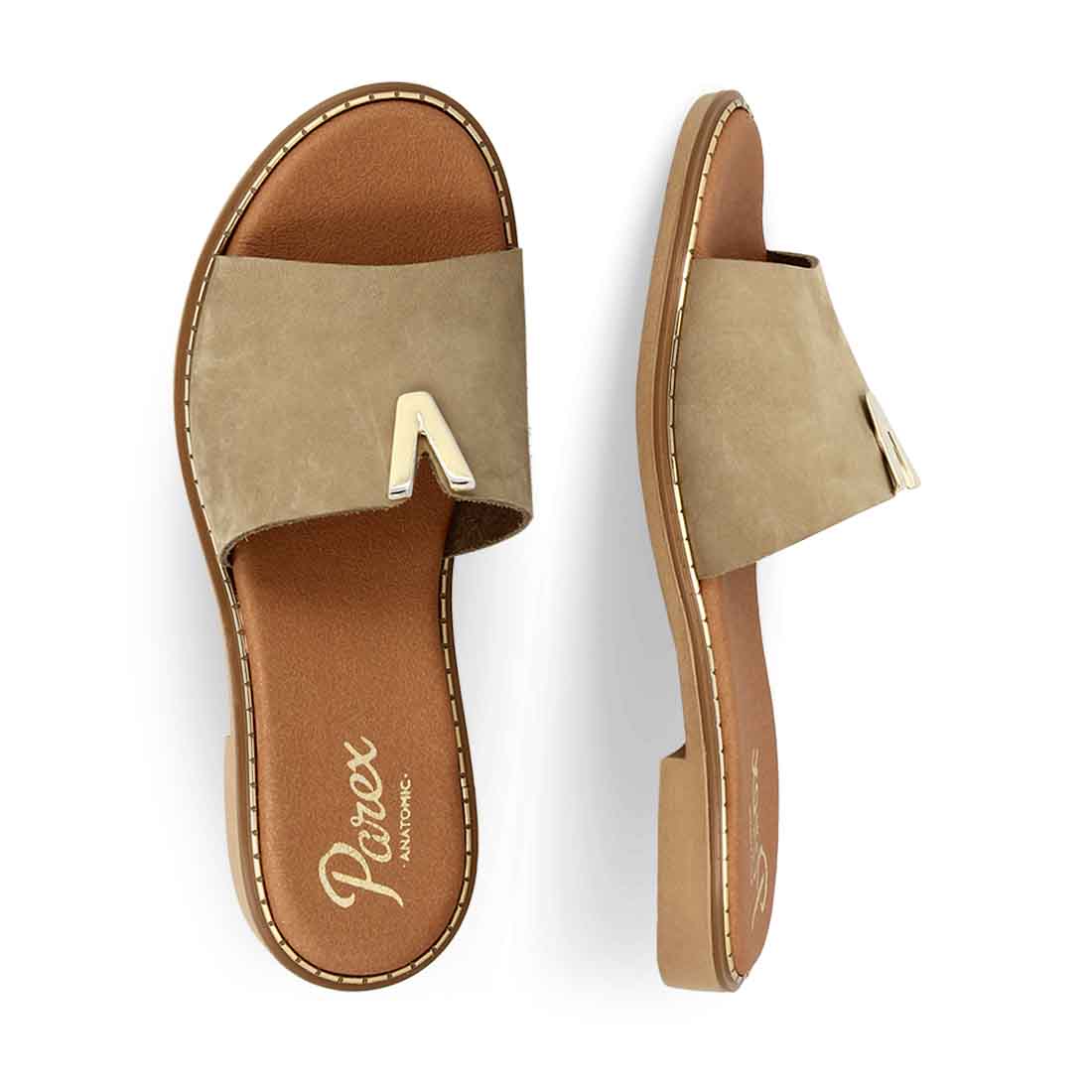 Comfortable sandals by Parex. Wide strap. Made of leather. Slip on design to feel comfortable this summer. Flat outsole.