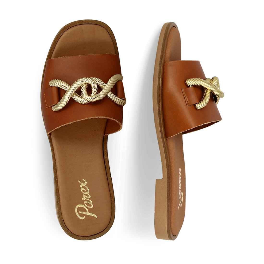 Give cool casual vibes with these leather flat sandals by Parex. Available in black & tancolor. Metallic detail on the front.