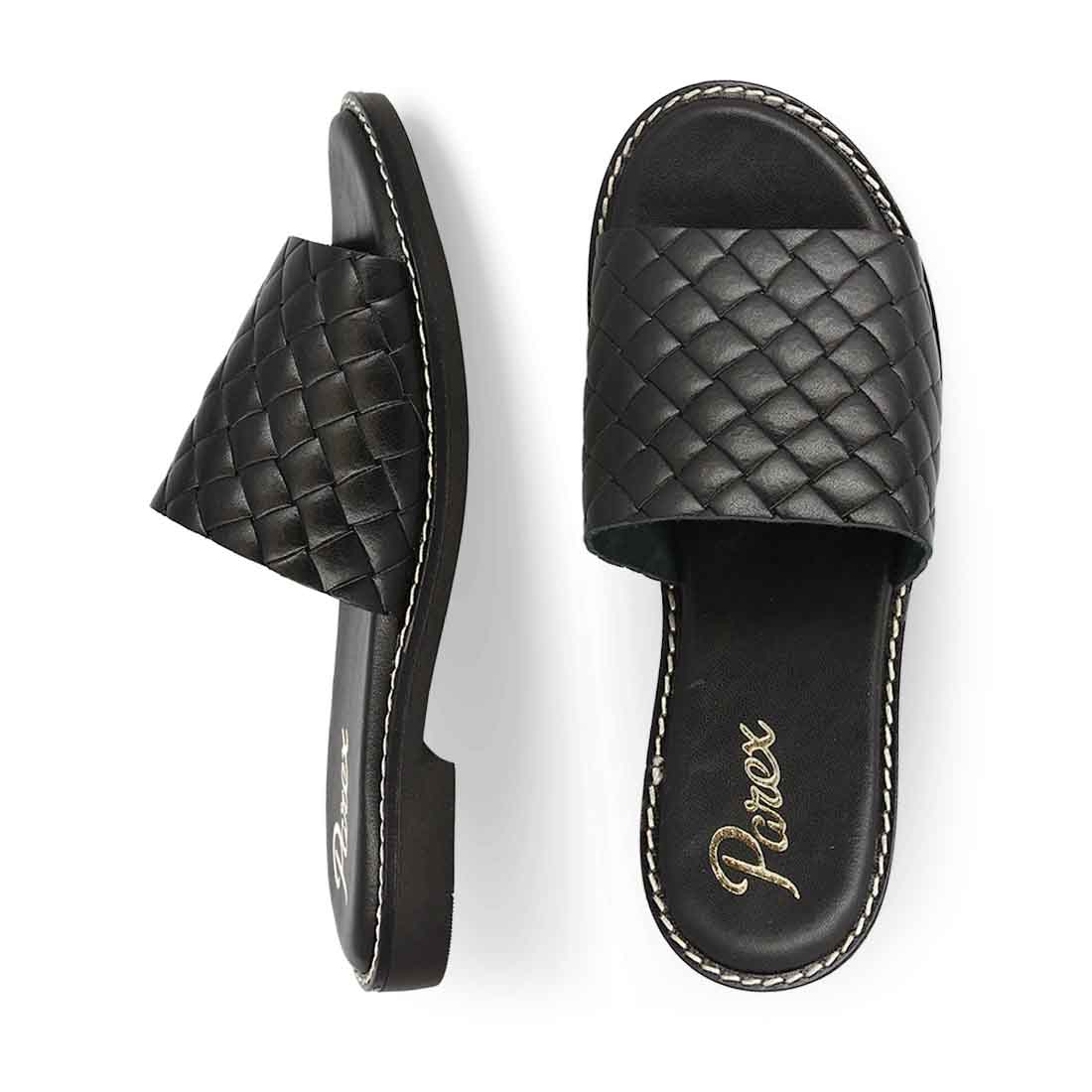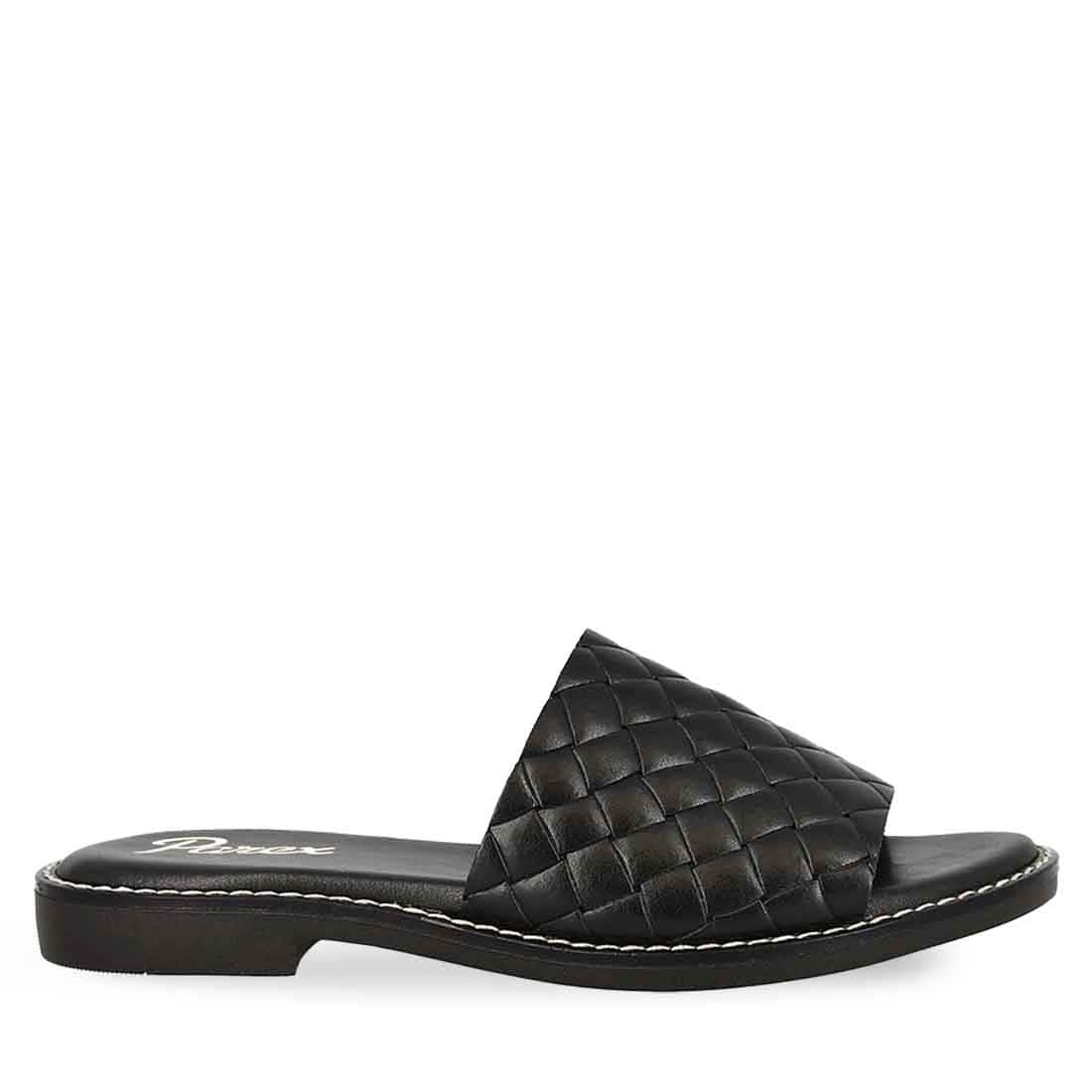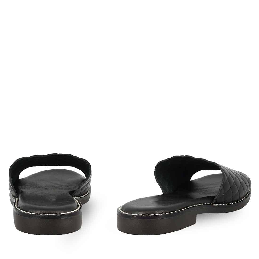 Step up your looks with these flat leather sandals in quilted design with wide band. Made in Greece. Available in more colors.