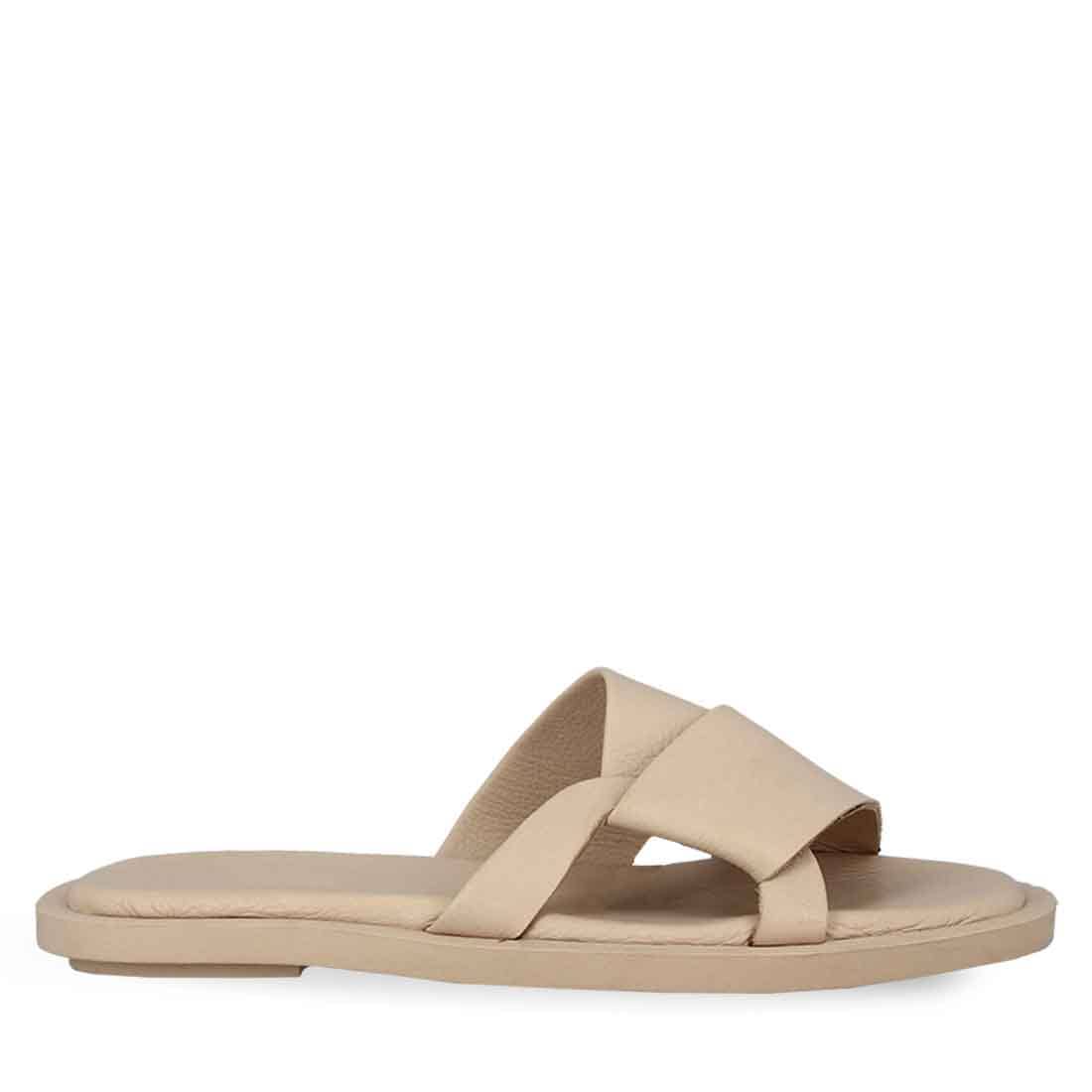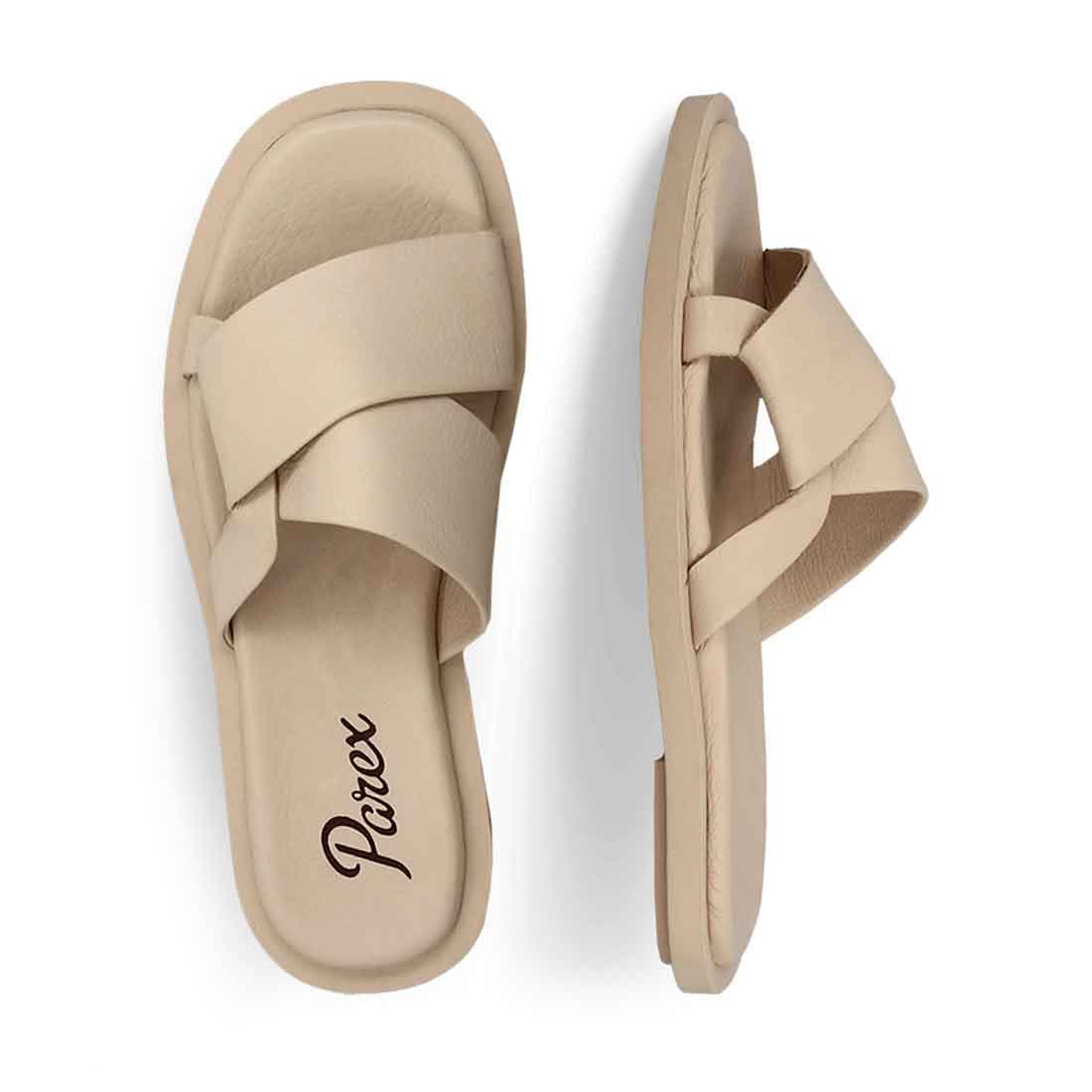 Refresh your style with these women''s leather flat sandals with a cross band. Made in Greece by Parex. Soft footbed and durable outsole.