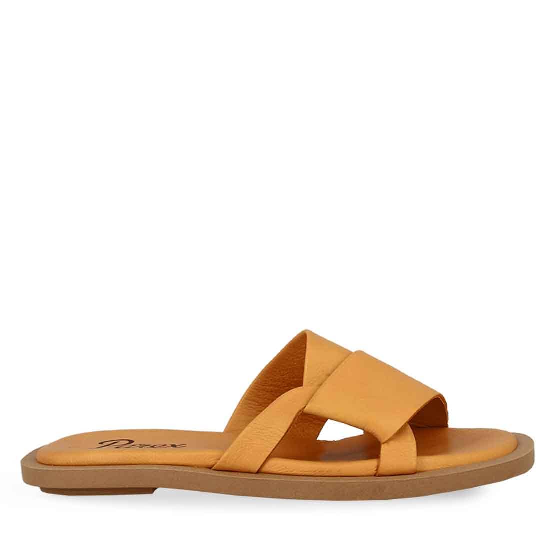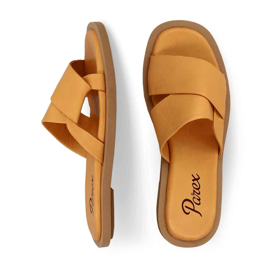 Refresh your style with these women''s leather flat sandals with a cross band. Made in Greece by Parex. Soft footbed and durable outsole.