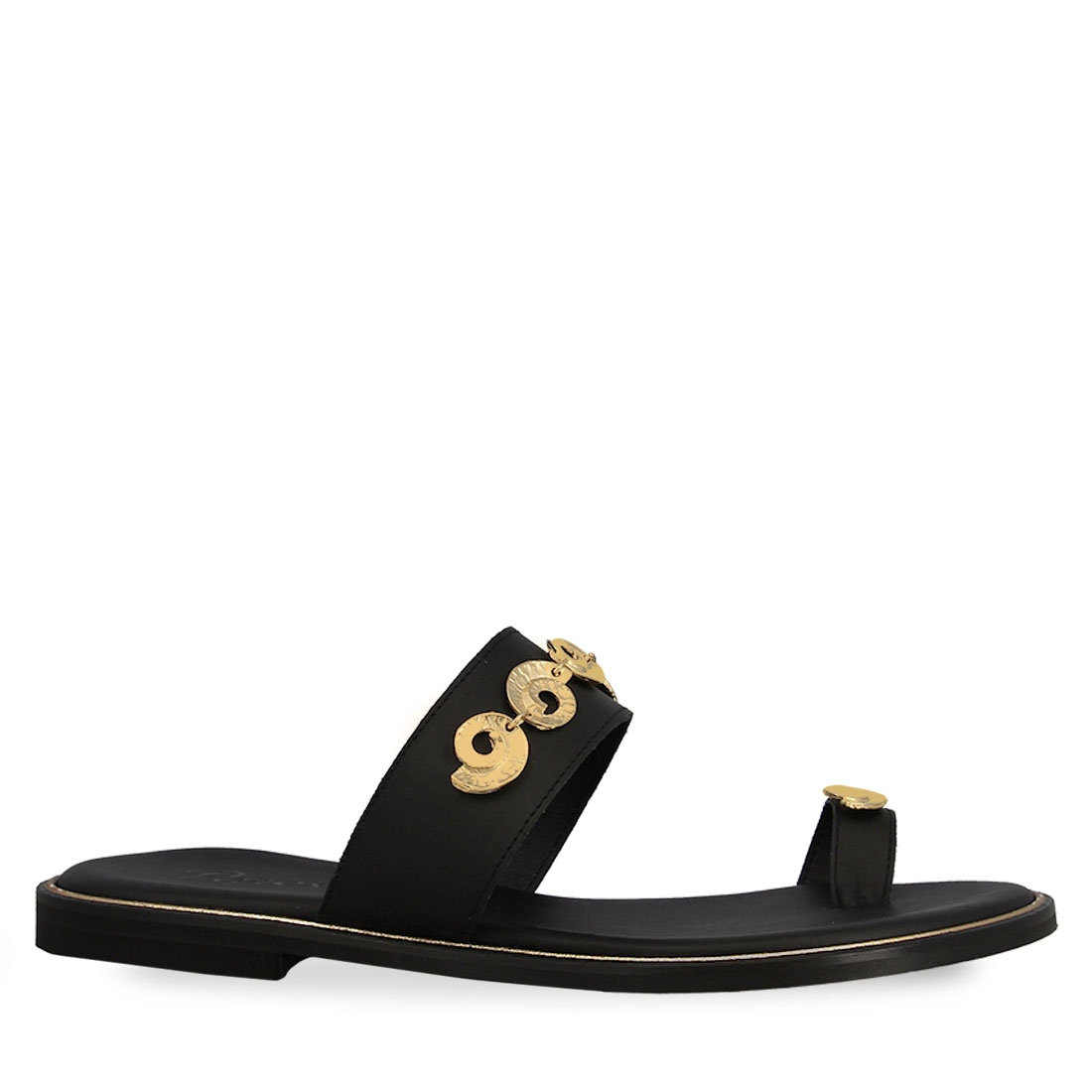 Women''s leather sandals by Parex. Stand out in your everyday style with these Greek-made women''s leather sandals by Parex. Wide strap on the upper with gold details and loop on the big toe. Available in black, brown and tan color. They have a soft leather insole and a flat non-slip sole. You won''t want to take off these leather sandals by Parex.