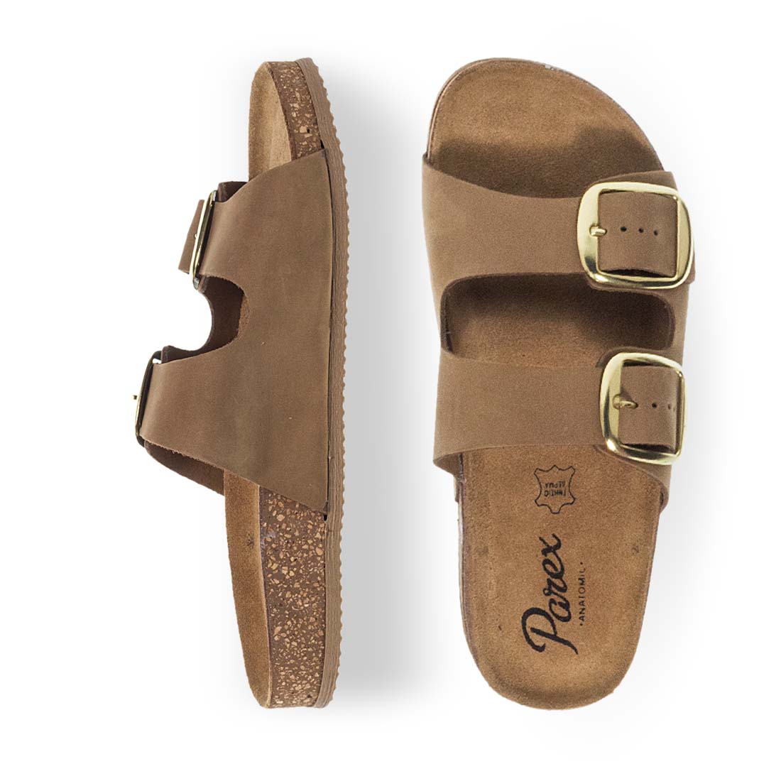 Leather Sandals Parex for women.They close with double buckle strap fastening. Add this timeless design on your footwear essentials and keep balance all the summer. Leather insole. Comfortable design.