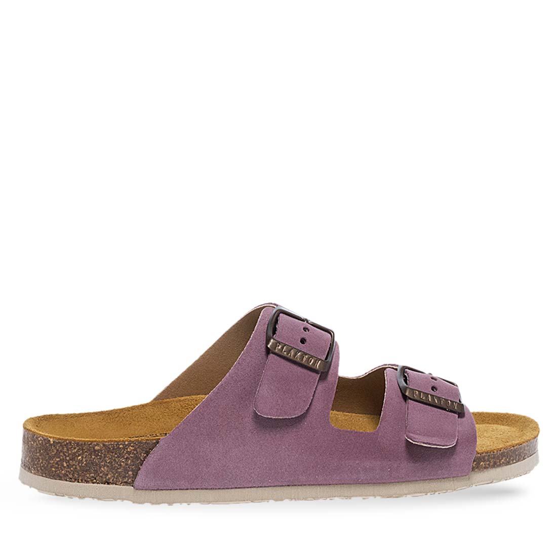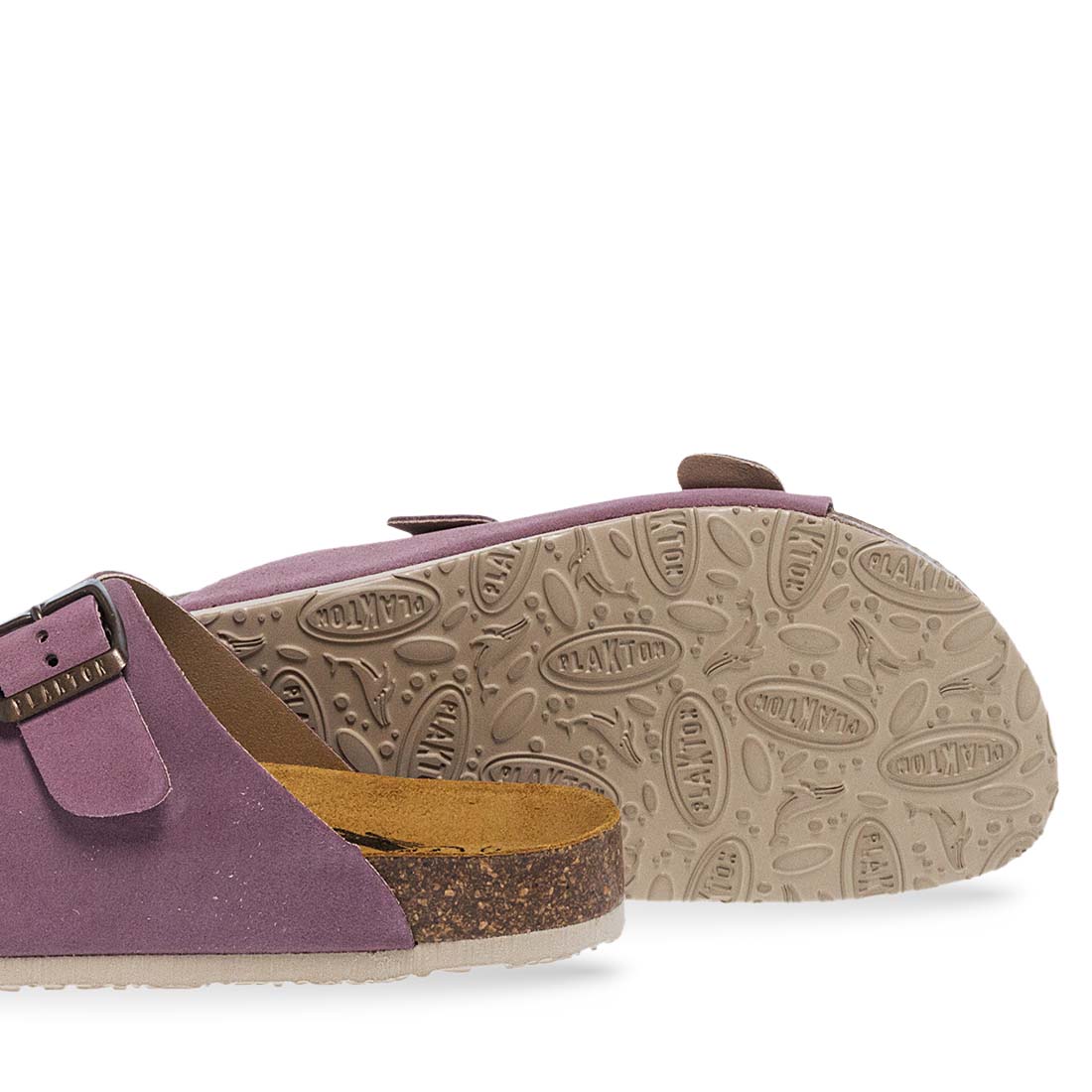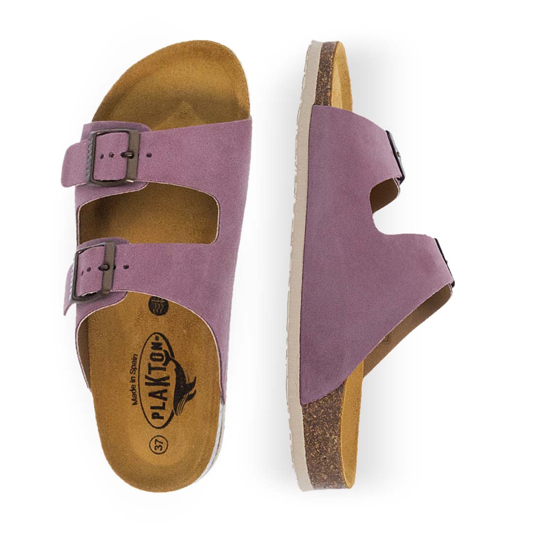 Women''s leather sandals by Plakton. Women''s sandal by PLAKTON in lilac suede with ergonomic insole and buckle, offering elegance and support.