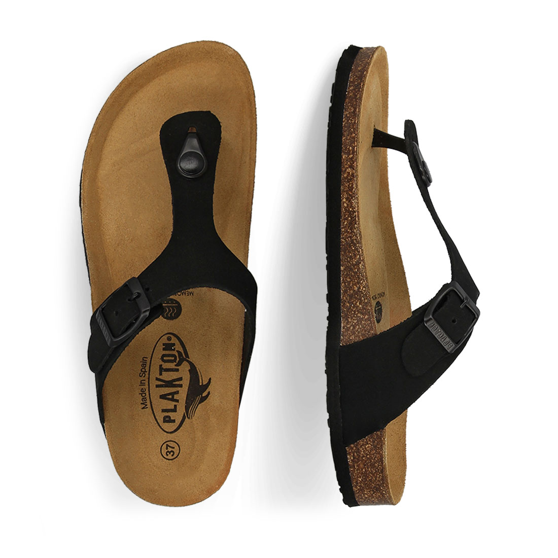 Take stylish and comfortable steps with these leather T-bar sandals by Plakton. Anatomic design. Natural cork. Memory Cushion Sole ®.