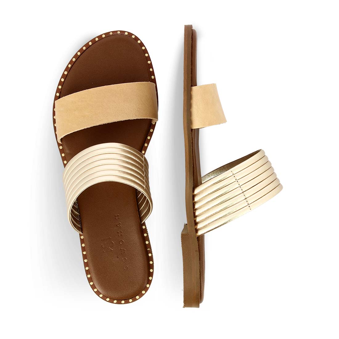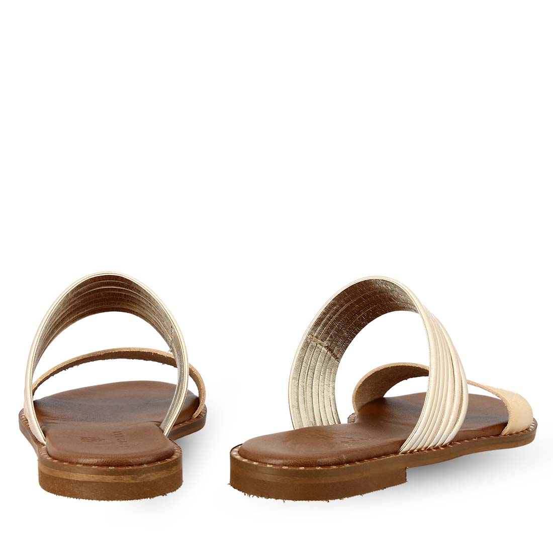 Leather sandals by SOWOMAN, available in two colors. This design is made in Greece. Leather insole., flat sole. Style them with a white long dress or cropped trousers.