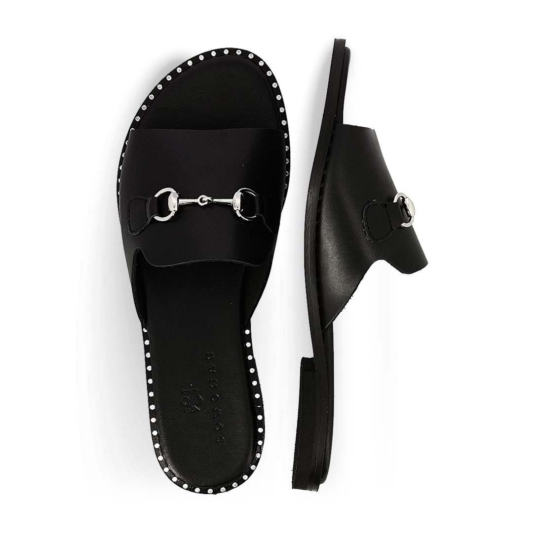 Chic leather sandals by SOWOMAN. Leahter soft insole and flat studded sole.