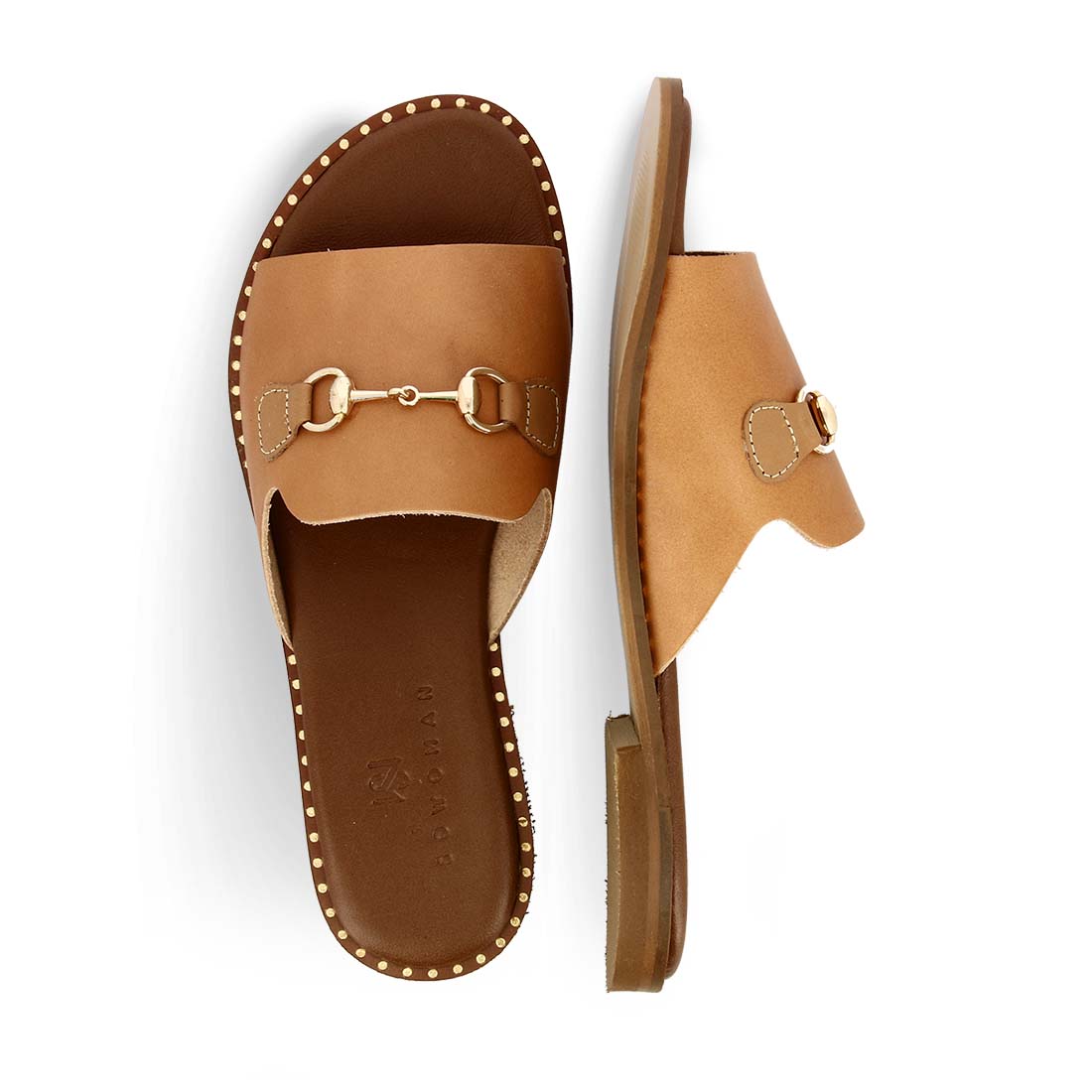 Chic leather sandals by SOWOMAN. Leahter soft insole and flat studded sole.
