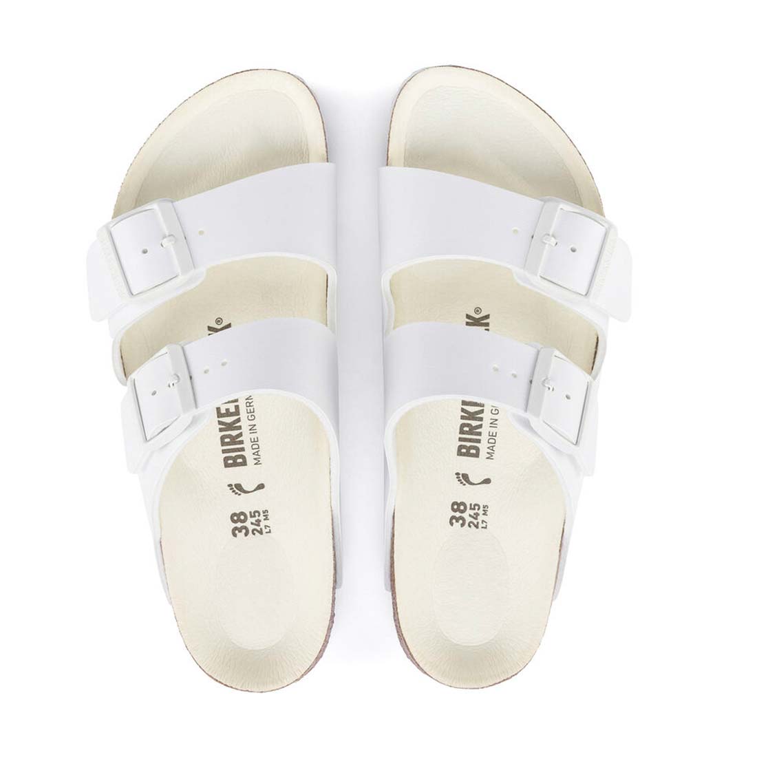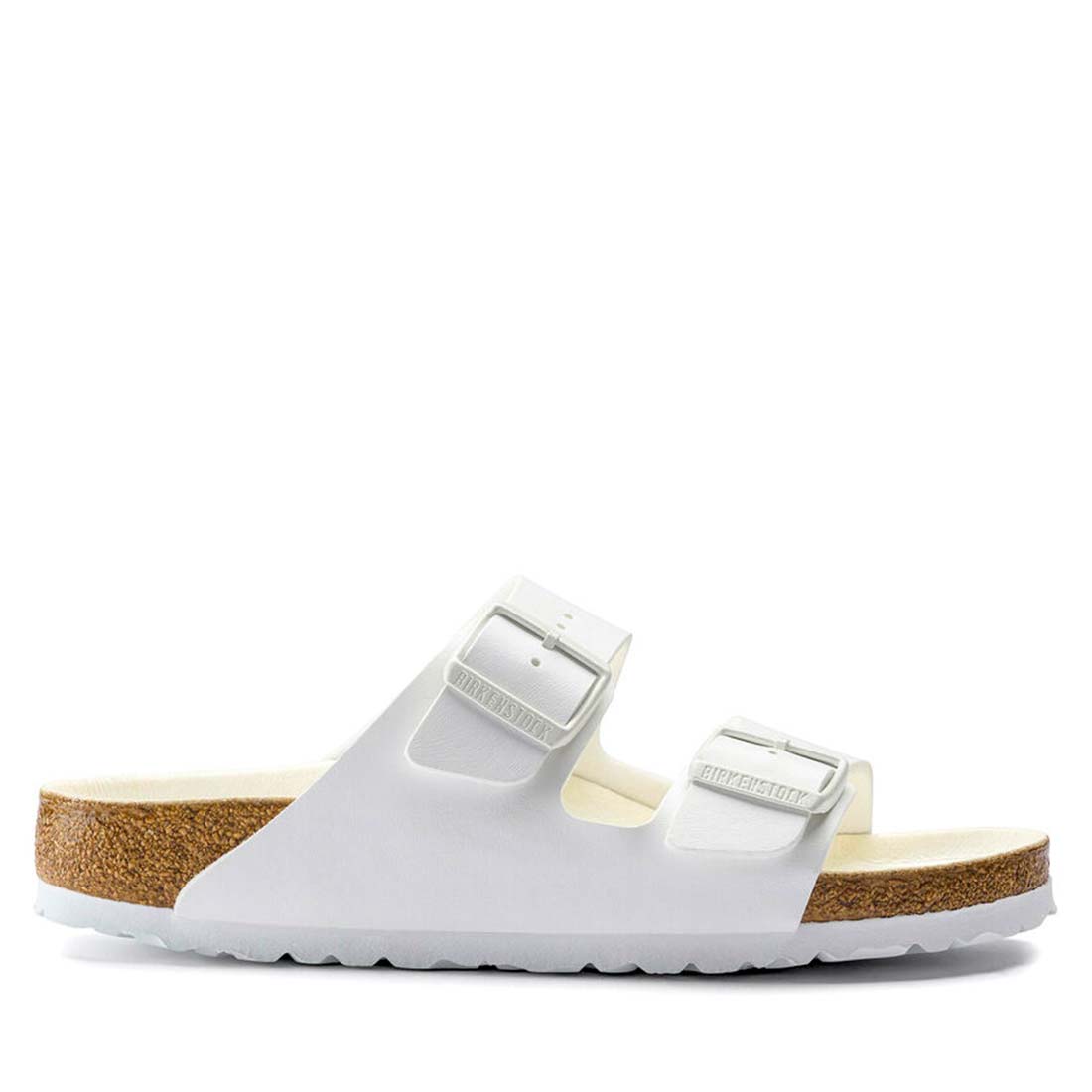The legendary two-strap design from BIRKENSTOCK with Birko-Flor in white color. Birko-Flor® is a skin-friendly, tear-resistant and easy-to-care-for synthetic material which is exclusively used by BIRKENSTOCK.