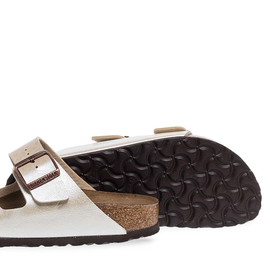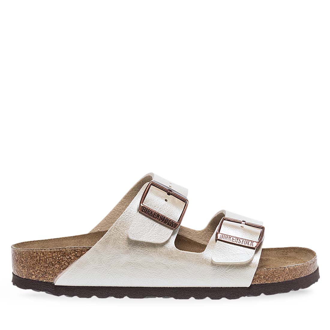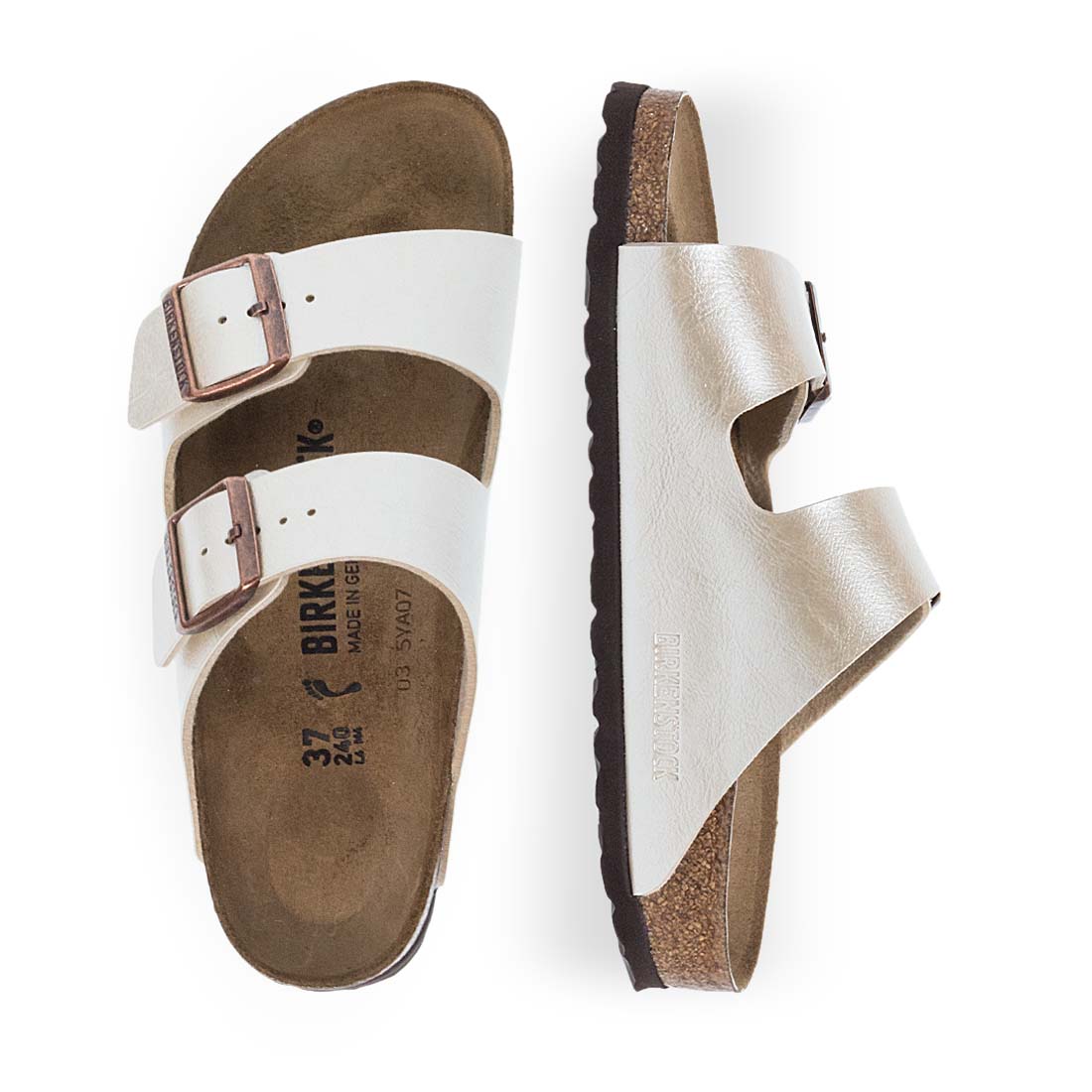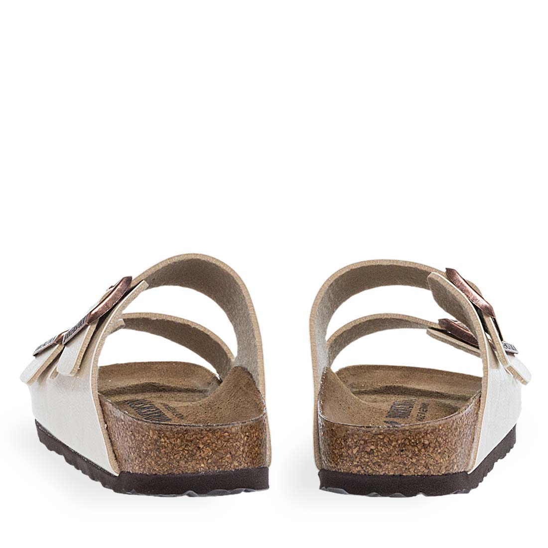 Women''s sandals by Birkenstock. Birkenstock sandal in white leather with double strap and anatomical sole. Narrow fit.