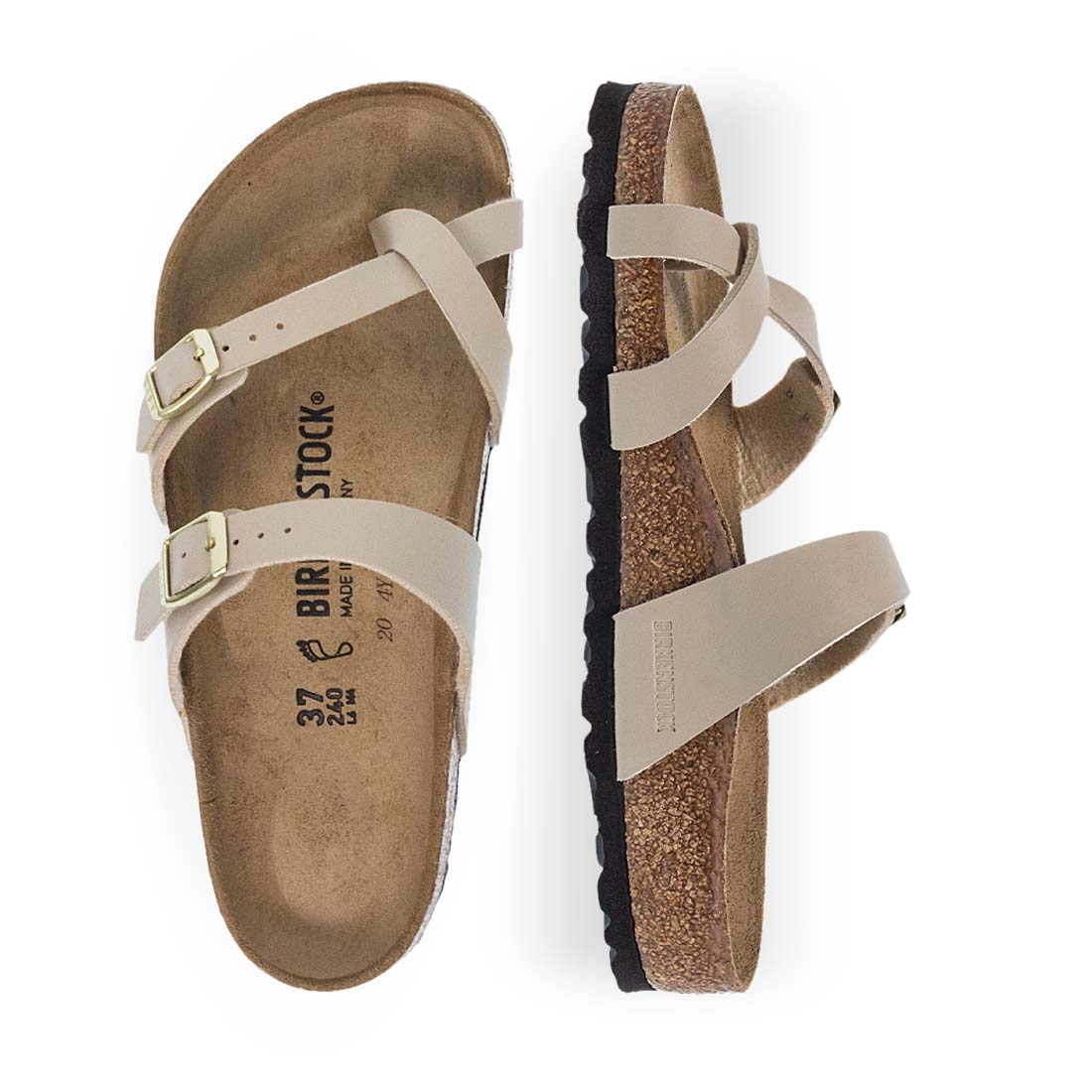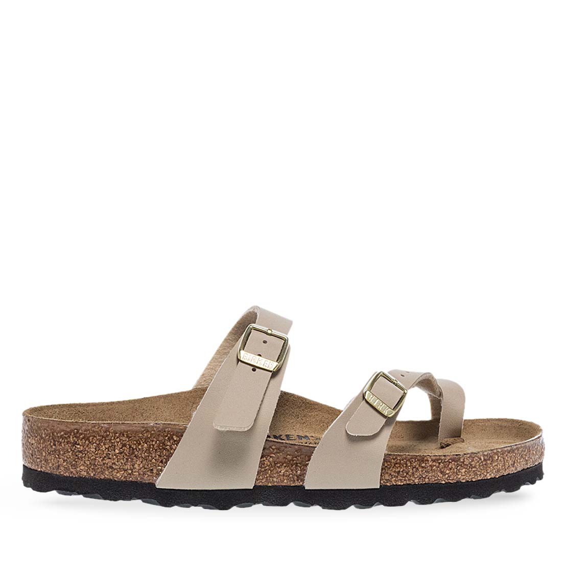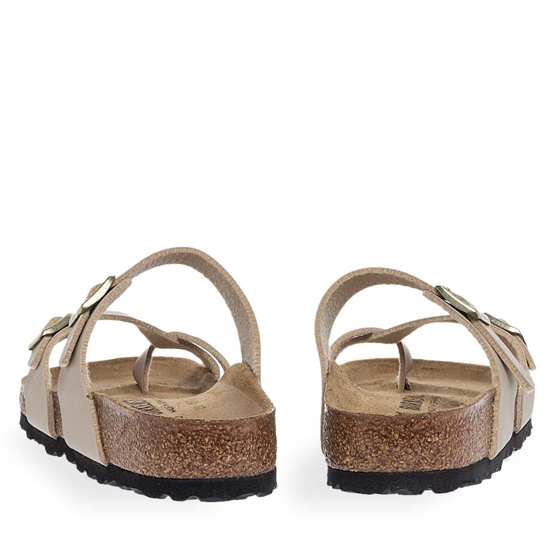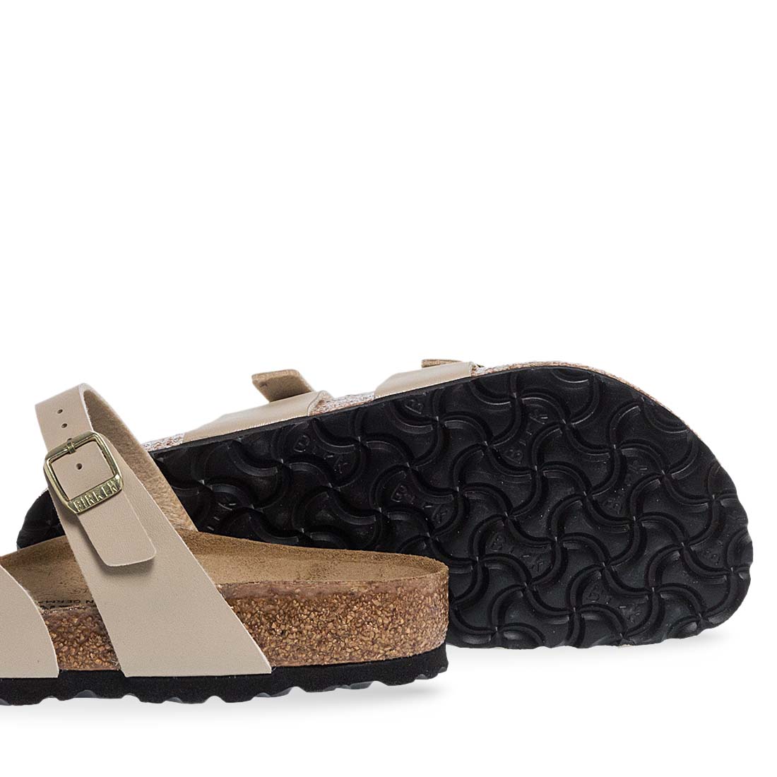 Women''s sandals by Birkenstock. Women''s Birkenstock sandal with thin straps and golden accents. Regular fit.