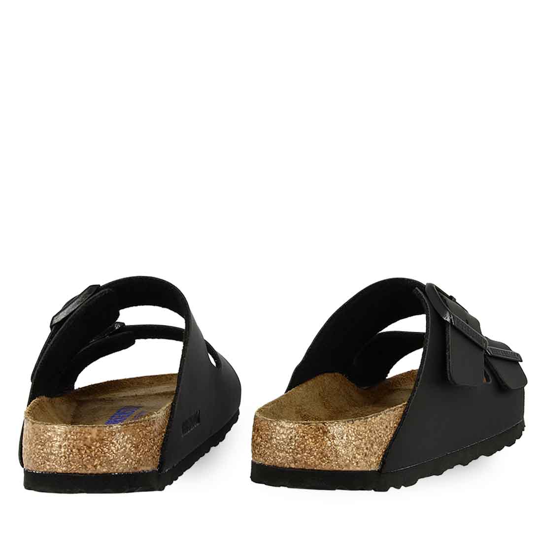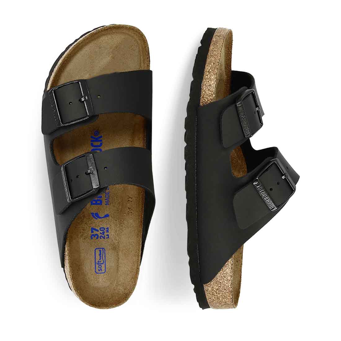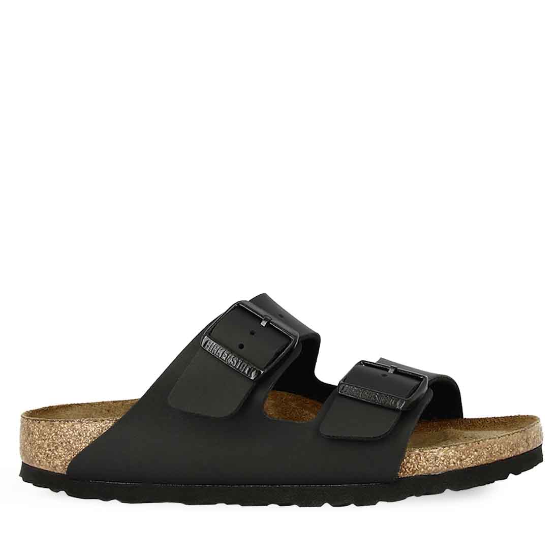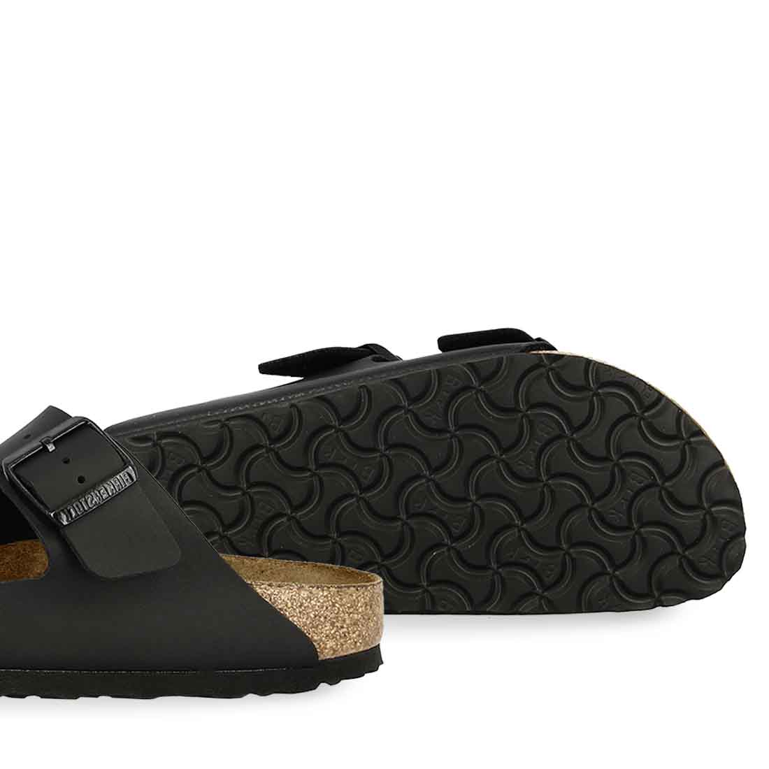 The classic BIRKENSTOCK Arizona sandal with two- straps is available in black color. The upper is made from the skin-friendly synthetic material Birko-Flor®. Anatomically shaped cork-latex footbed and flexible eva sole. This summer model will add style and comfort to warm days.