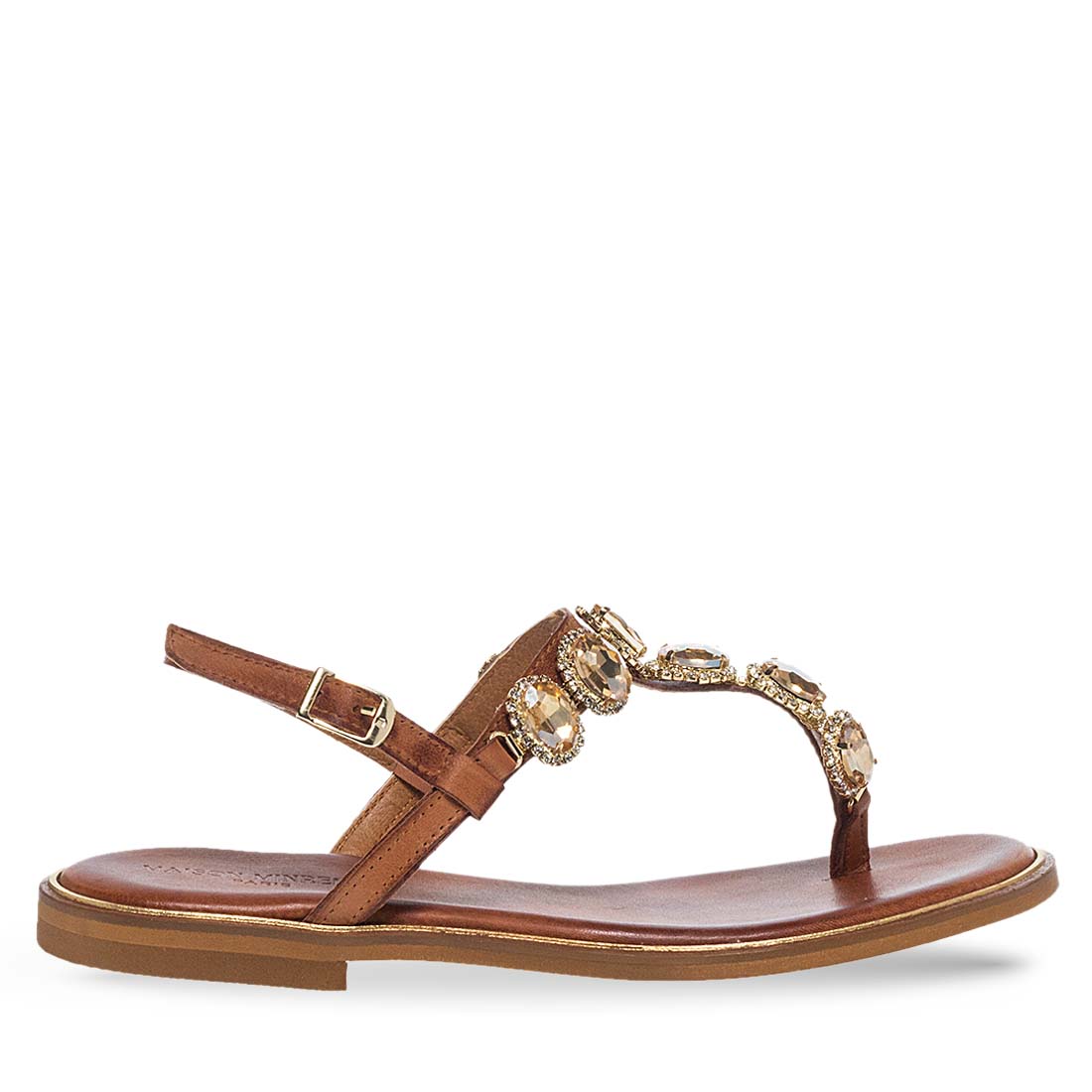 Elegant sandals Maison Minrelle. The upper part is crafted from leather. Buckle strap at the side. Soft insole. Rhine stone detail on the upper. Comfortable and modern design.