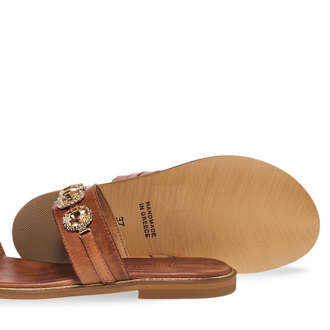 Fashionable flat sandals by brand Maison Minrelle. Stylish sandals with double strap. Soft foodbed and non slip sole. A good mix of comfort and style.