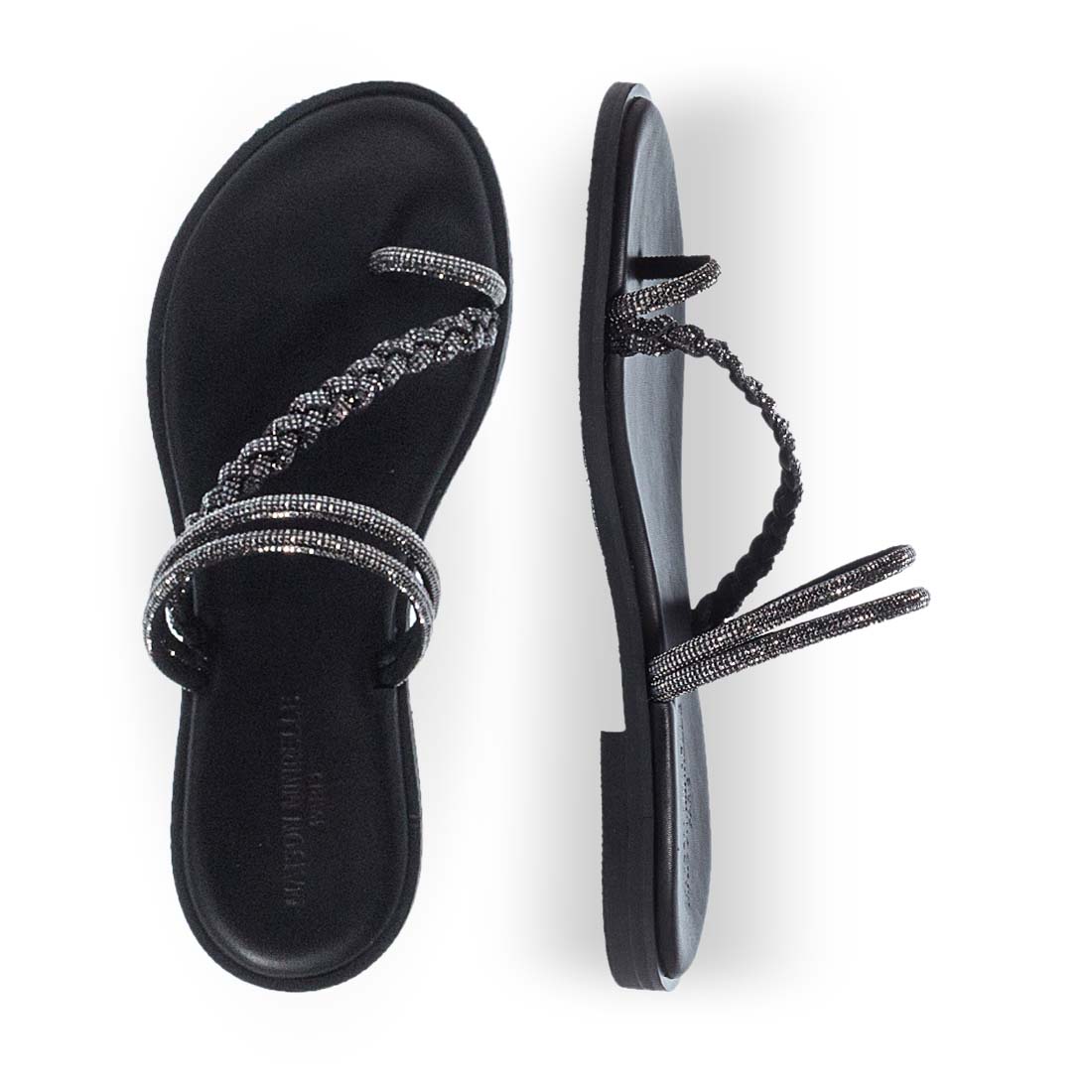 Summer comfortable sandals by brand Maison Minrelle.Μulti strap with strass on the upper. This design is crafted from leather.Wear yours all day without pain. Durable outsole. Easy to wear.
