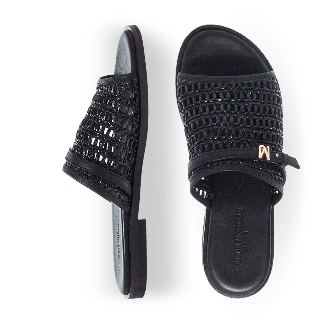Flat sandals Maison Minrelle for women. The upper part is crafted from straw. Logo detail. They can keep your feet more comfortable. Leather insole. Easy application.