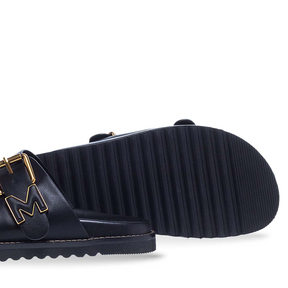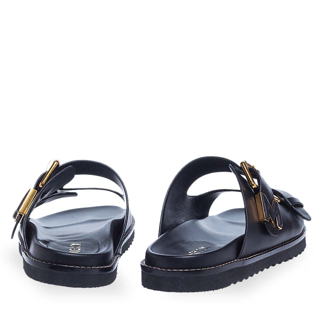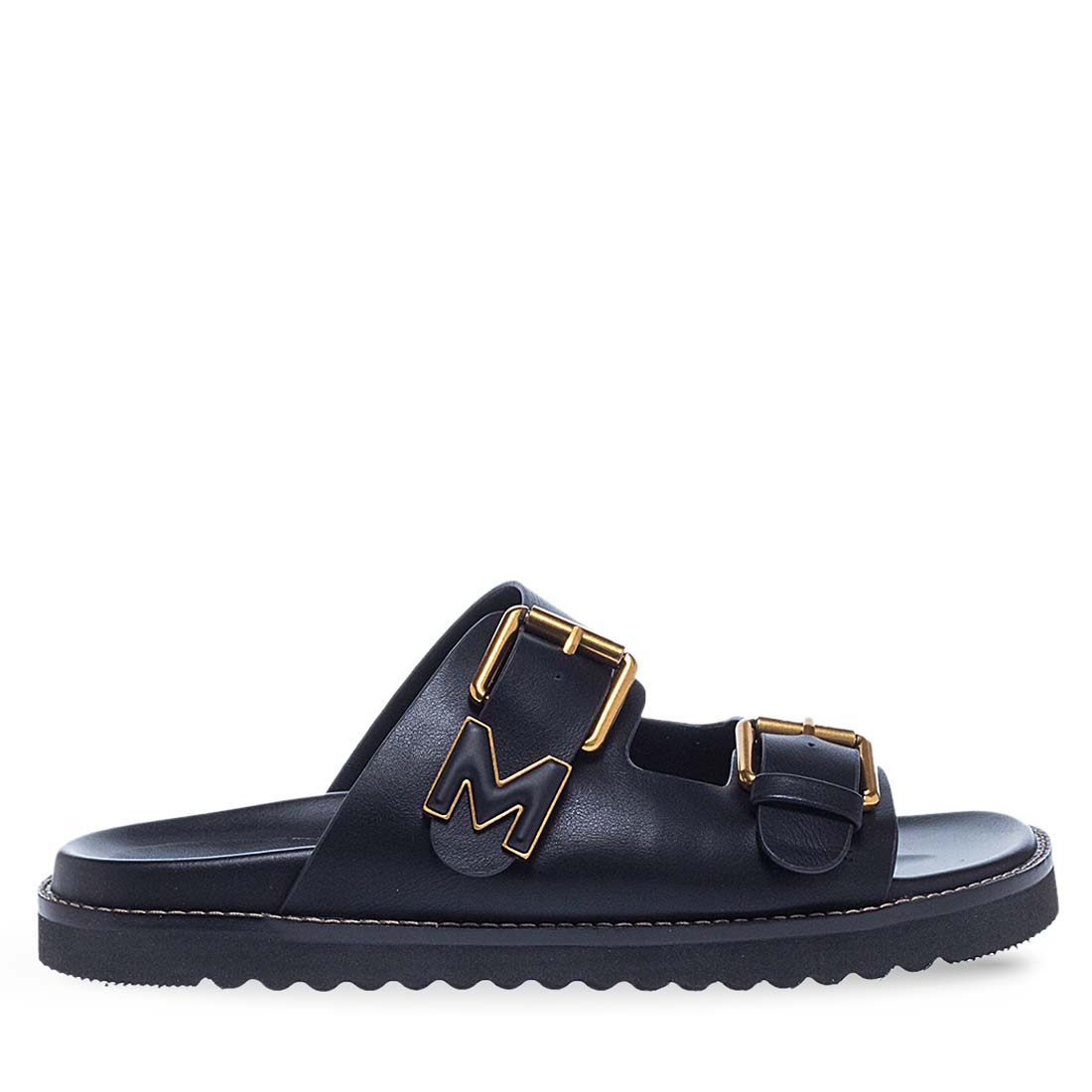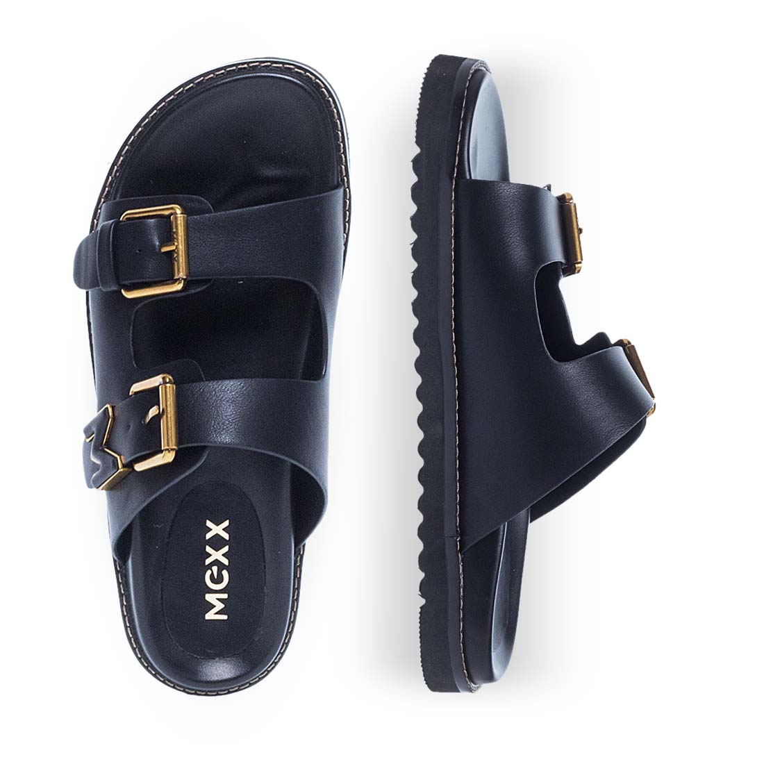 These stylish yet comfortable sandals will update your summer look. Double buckle adjustable strap fastening. Suitable to wear day to night. Available in black color. Easy application.