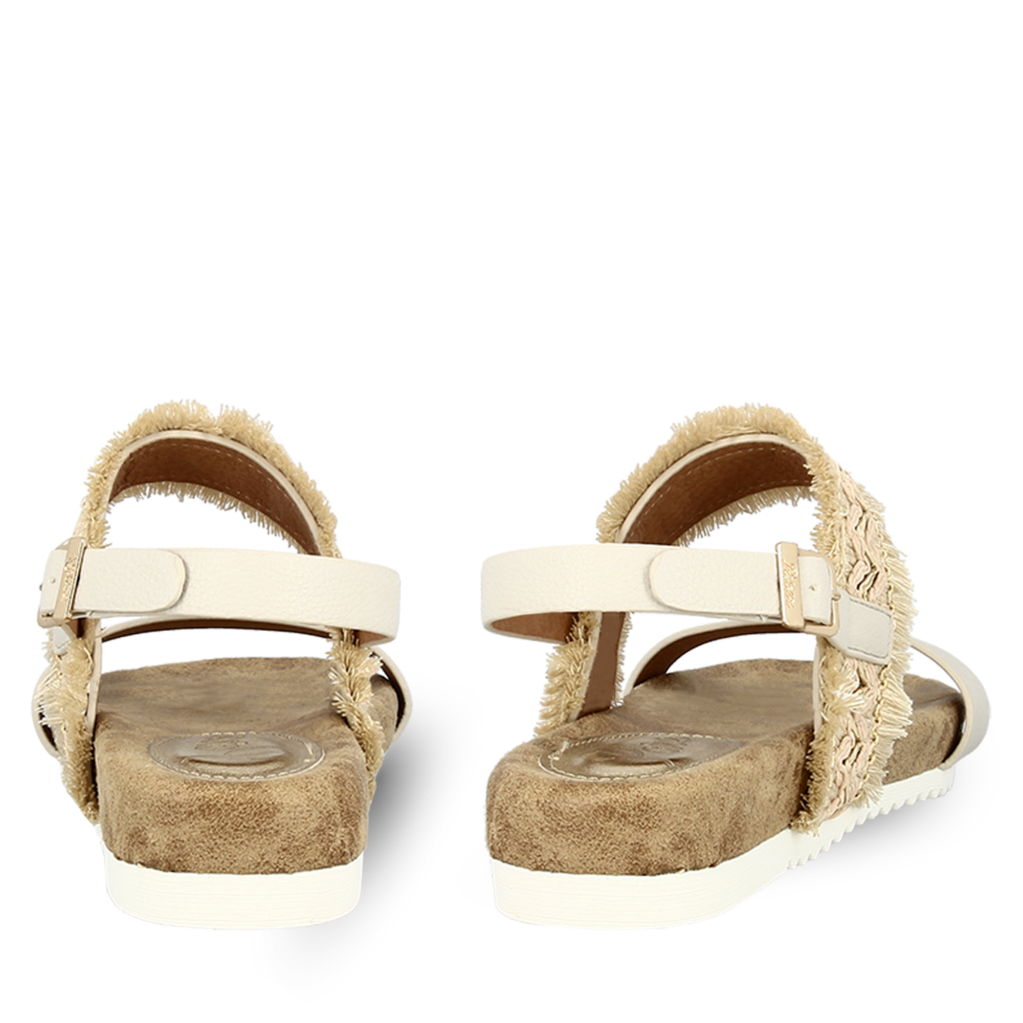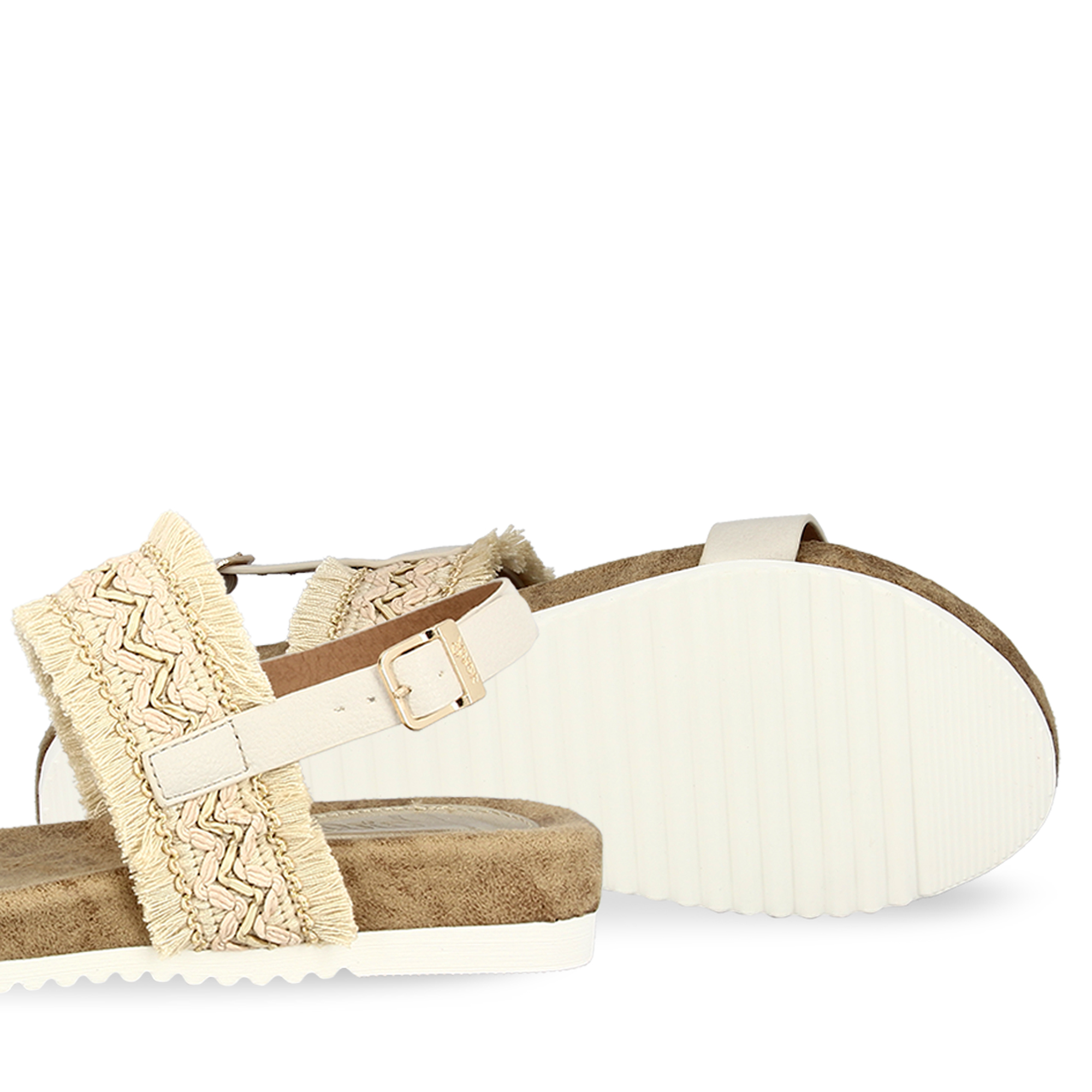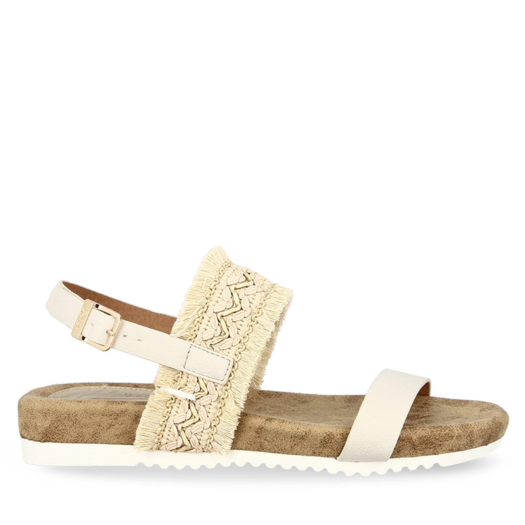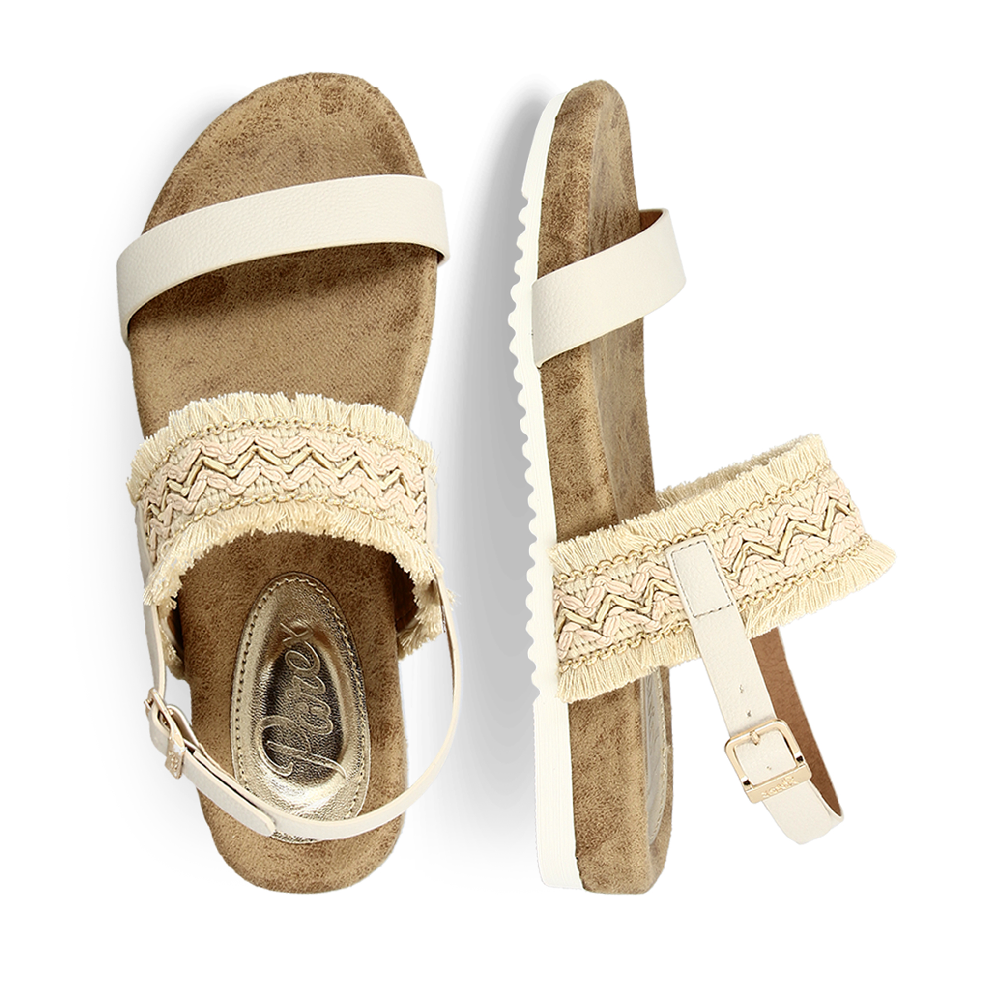 Women''s Comfort Sandals by Parex. Fabric details on the upper. Buckle strap at the back. Modern design. Step up your footwear game with these chunky flat sandals.