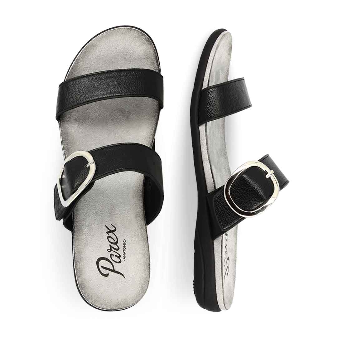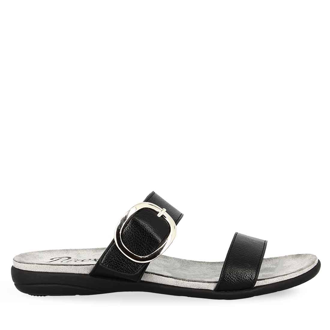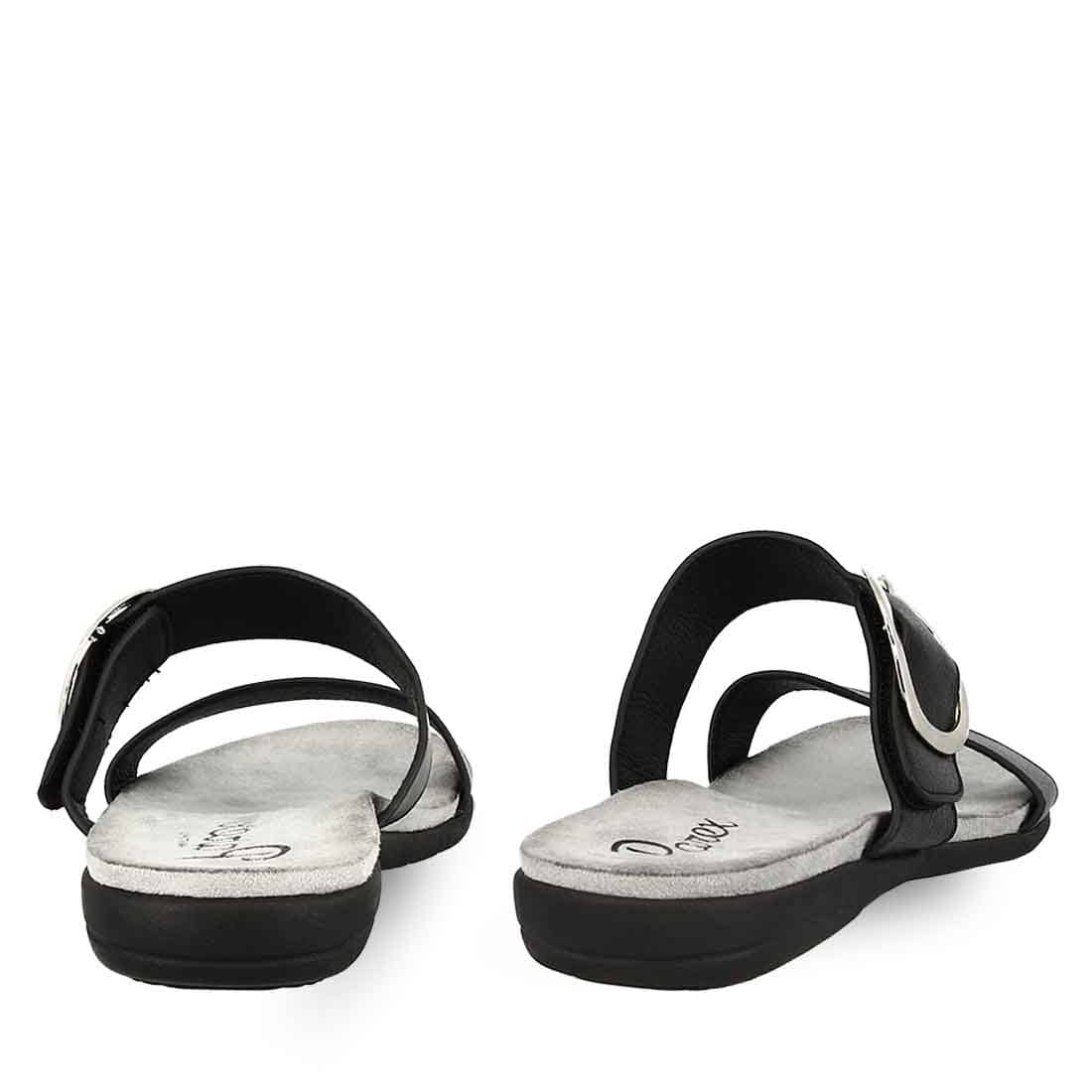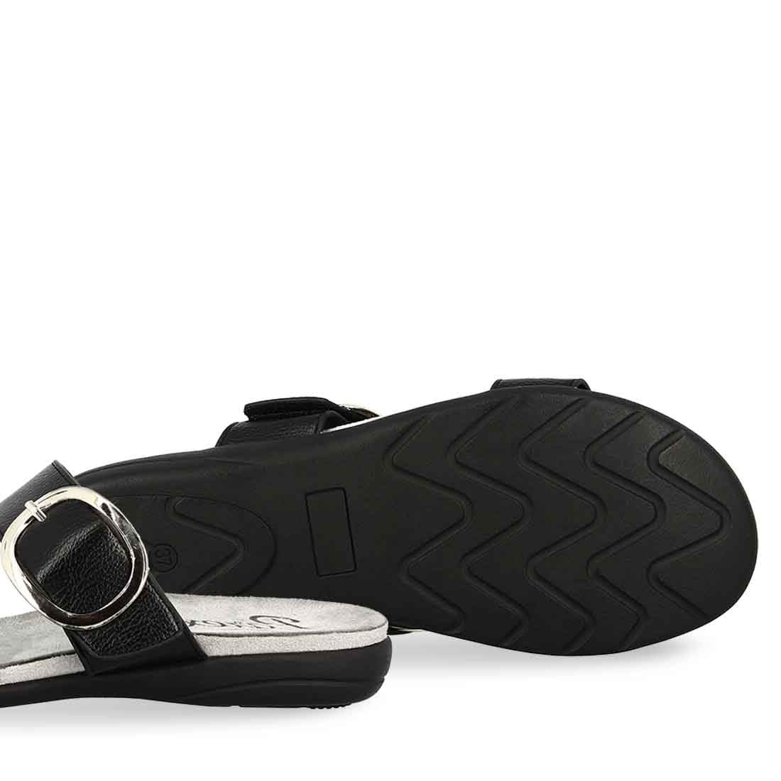 Match these casual faux leather sandals with your summer outfits and feel comfortable all day! Metallic buckle strap.