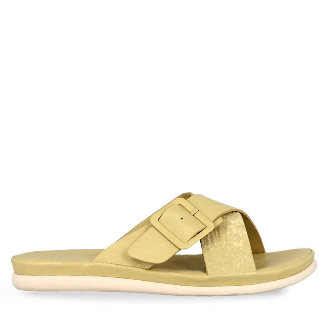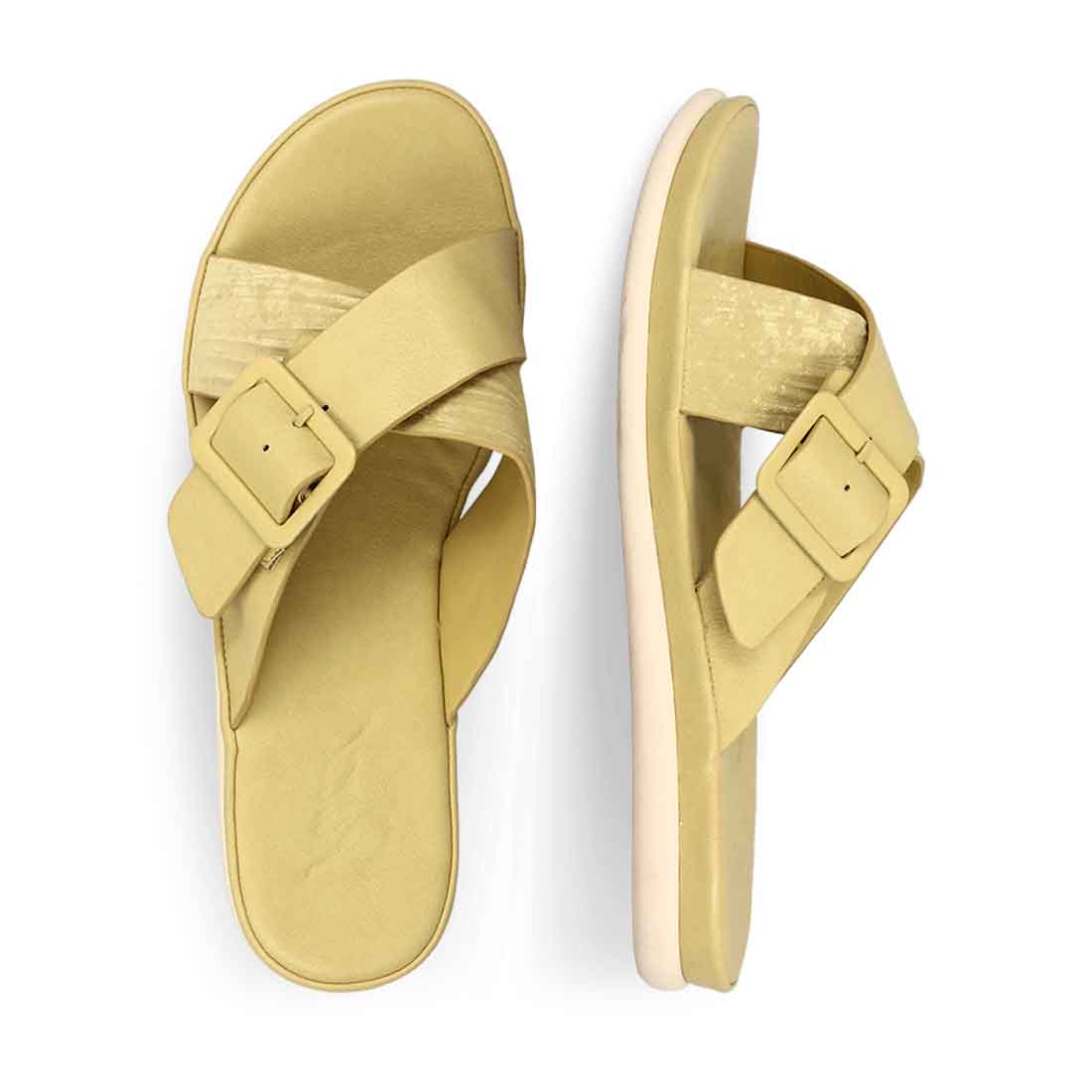 Spend summer in our comfortable sandals. This cross-strap design comes with a flexible flat sole and buckle strap detail.