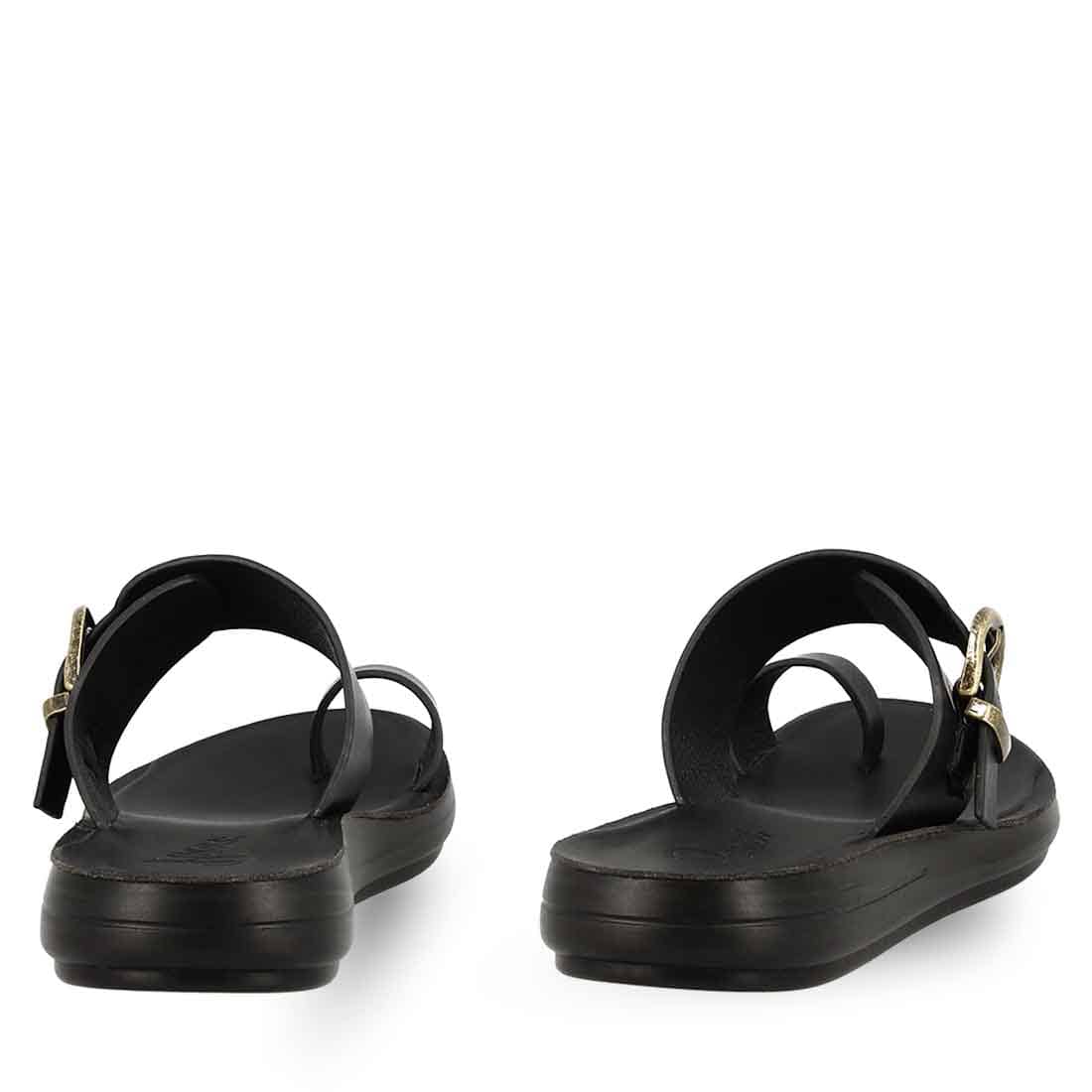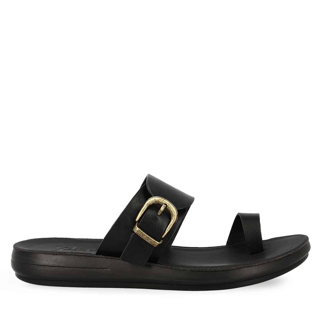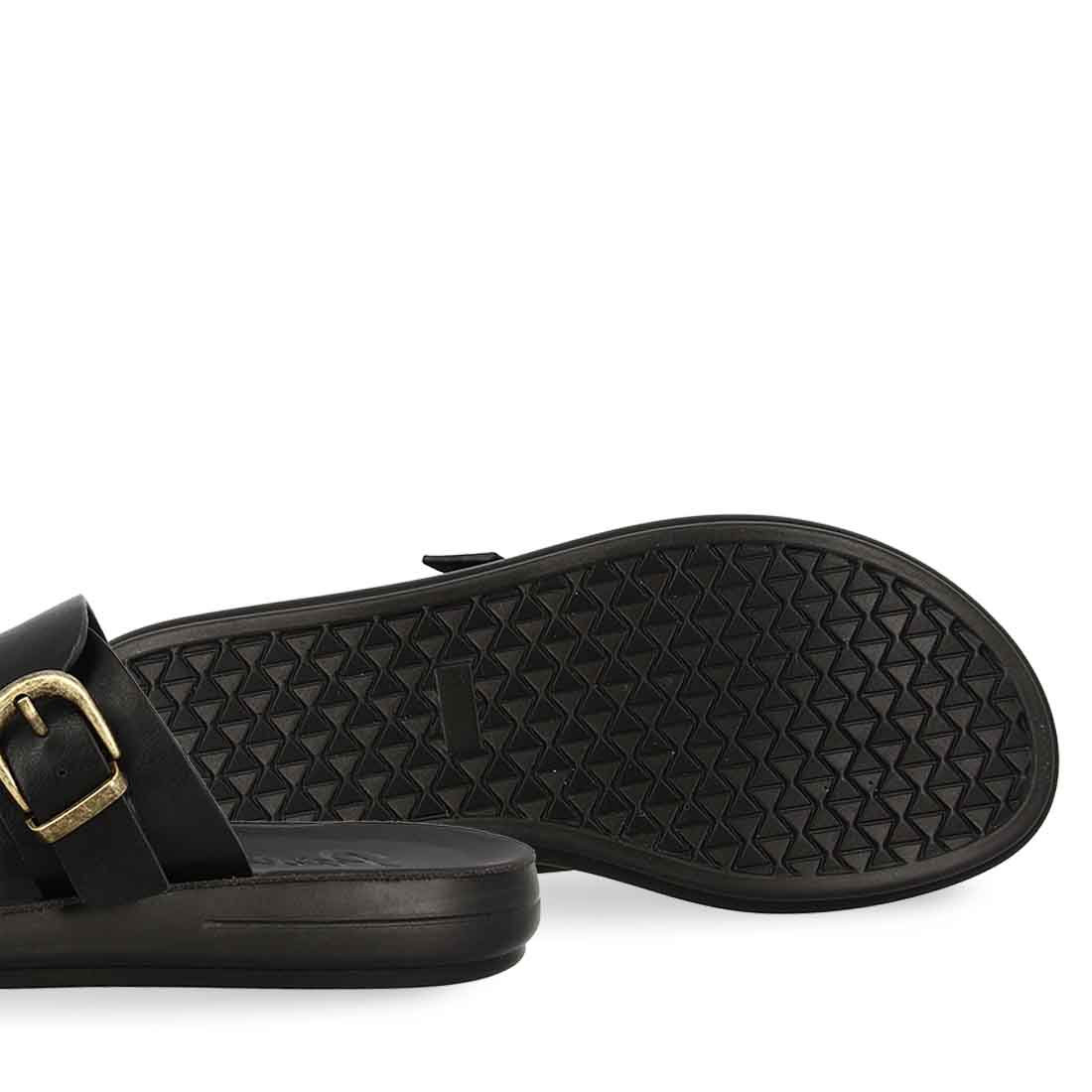 Flat sandal by Parex. Buckle strap fastening. Available in black and camel color. Timeless design for comfortable steps all summer.